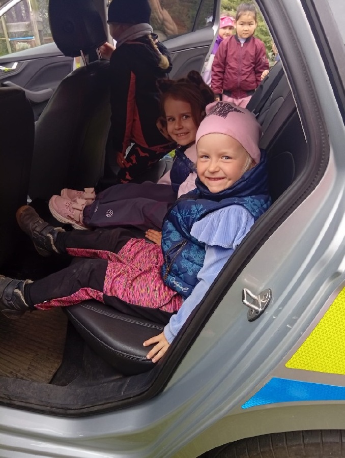 Dnešní super akce na zahradě MŠ. Děkujeme pí. Nasadošové, za úžasný zážitek z ,,Policejní stezky", kterou připravila pro celou MŠ a jednotlivé třídy. Děkujeme za ukázku výcviku psa pod vedením psovoda, děkujeme za možnost nahlédnutí do ,,policejního auta" a děkujeme prostě za všechno. ÚŽASNÉ!!!!!!