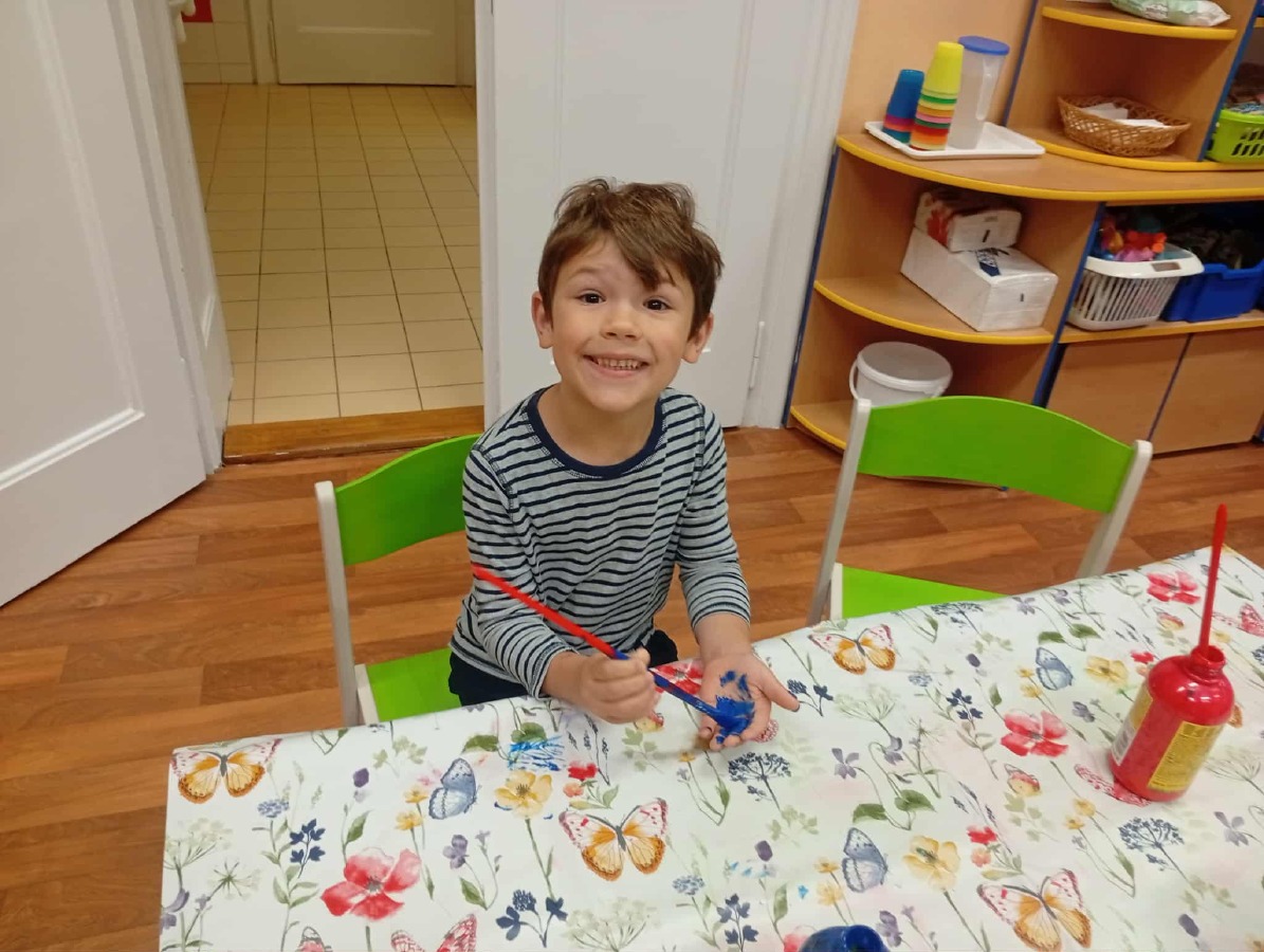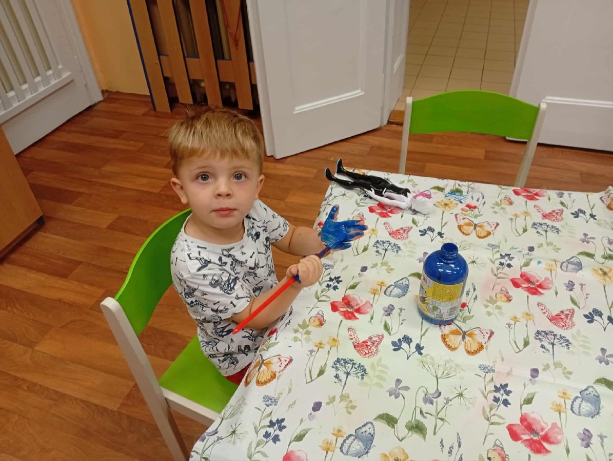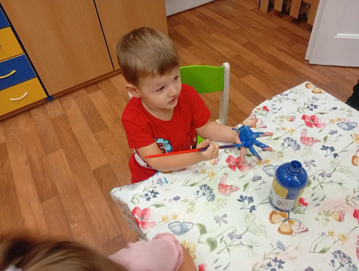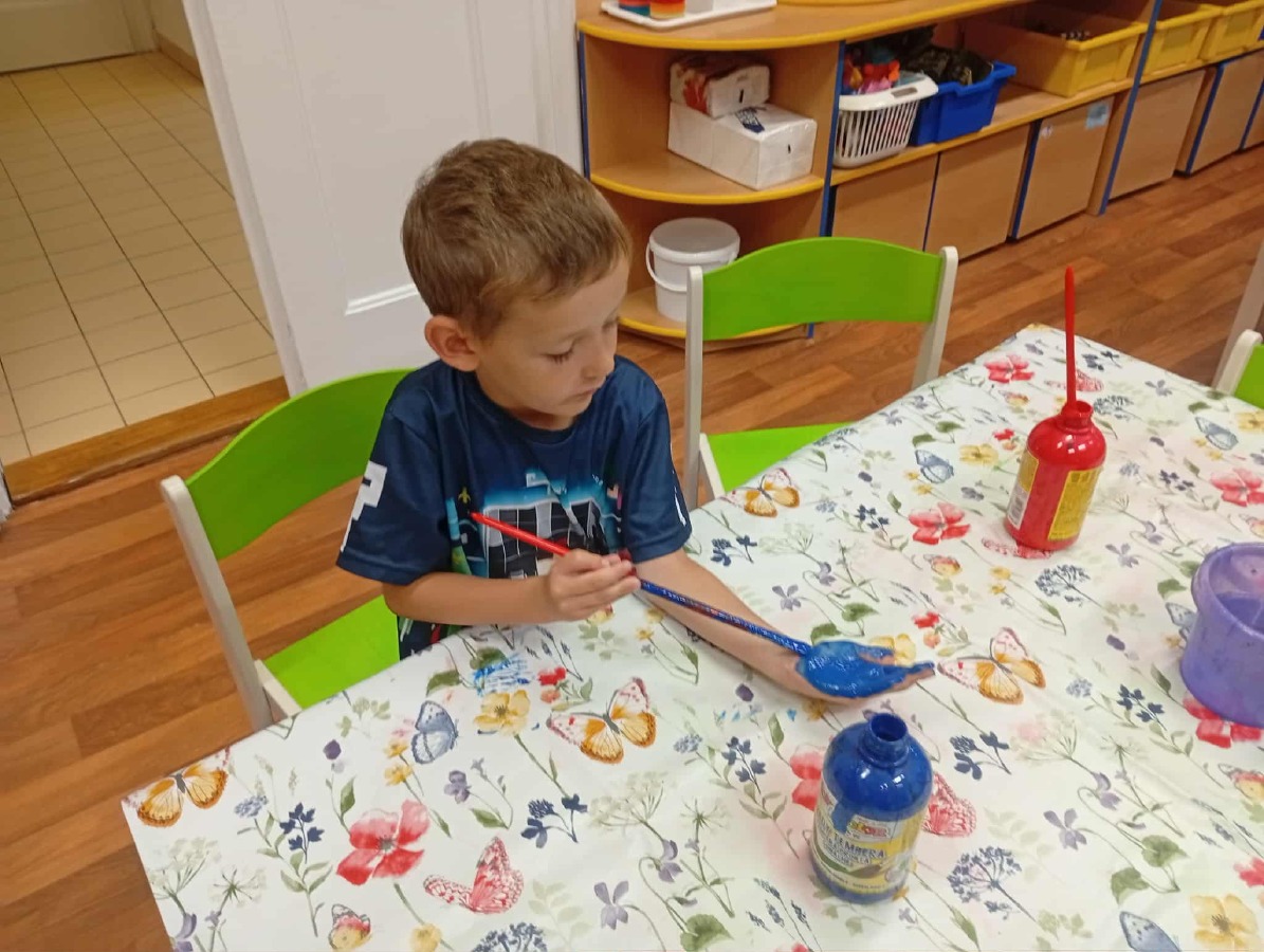 Otisk dlaně do portfolia, vykreslujeme jablíčka. Pracovní listy pro předškoláky - počítáme kamarády a vybarvujeme obrázky podle daného čísla. Sebehodnocení.