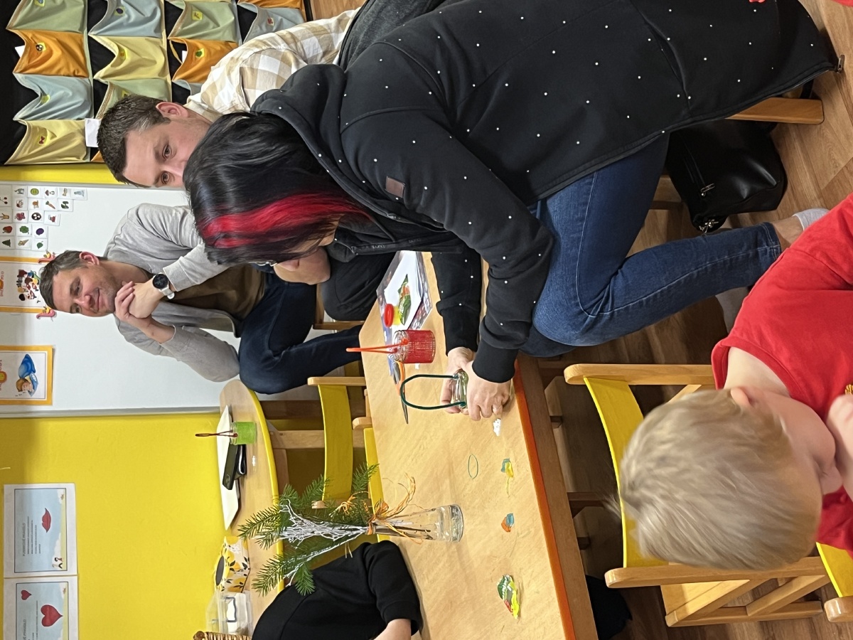 Adventní období je za dveřmi a tak jsme si pozvali rodiče na krátké setkání. Ve třídě jsme si stihli vyrobit vánoční lampičky, trochu se s nimi protáhnout s písničkou na koberci a pak už ŠUP ŠUP ven. Čekal tam na všechny děti ze školky ozdobený stromeček. Rozsvítili jsme ho společnou básničkou a koledami.