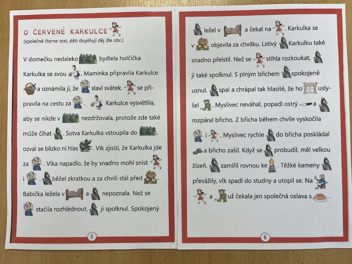 Čtvrtým dnem nás provázela pohádka O červené Karkulce. Popisky najdete pod fotografiemi.