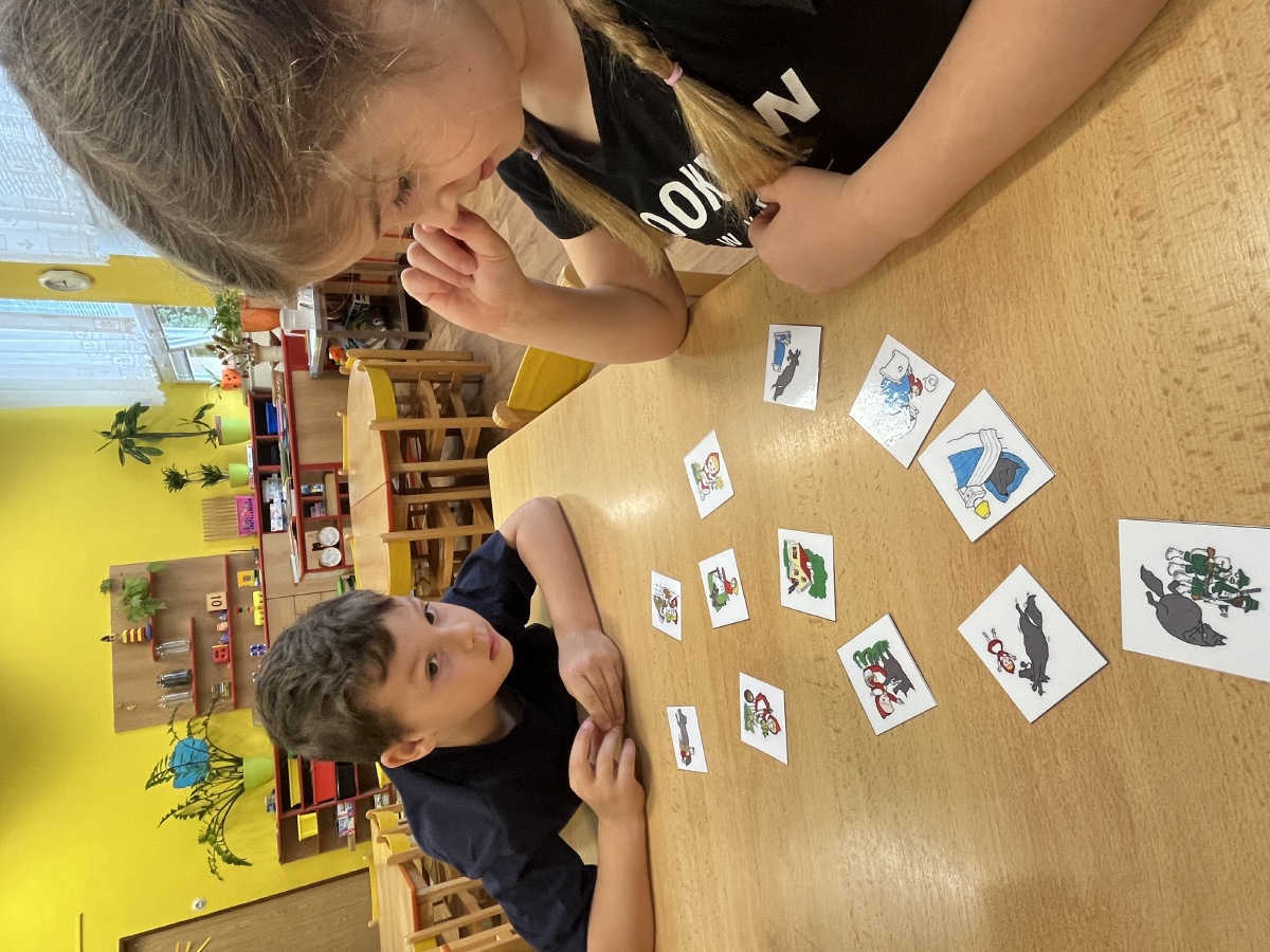 Ve třetím dnu si děti založily vlastní knihu a kreslily si do ní obrázky k pohádkám. Společně četly příběh o Máše a medvědovi.