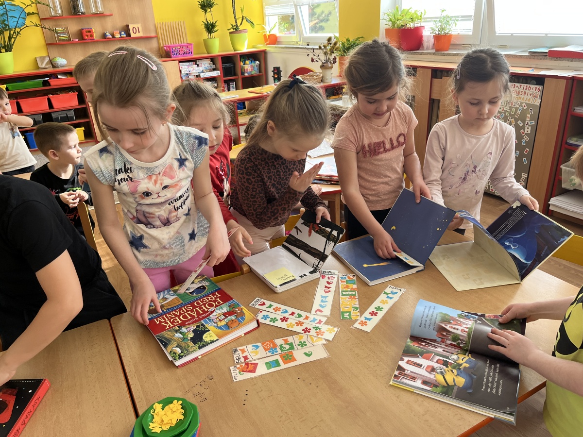 Poslední den jsme si připomněli, že přístí týden bude světový svátek knihy a proto jsme si celý týden o knížkách povídali a pracovali s nimi.