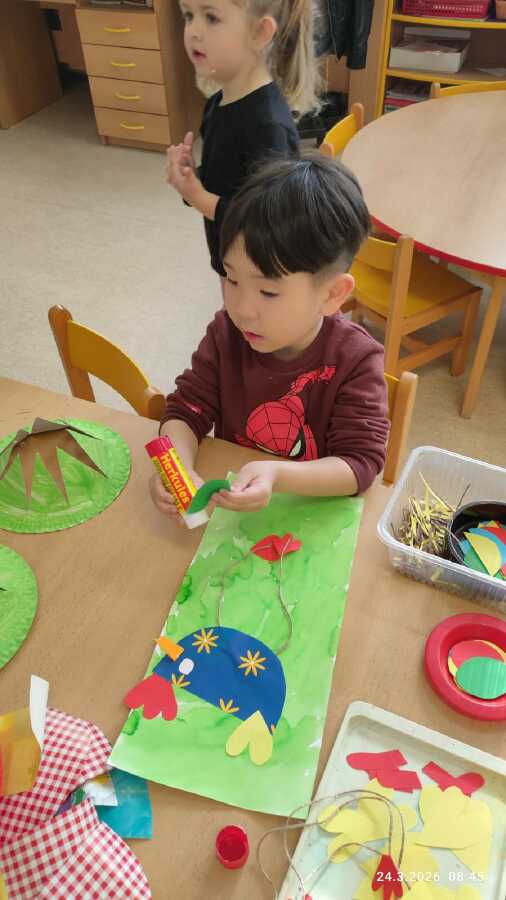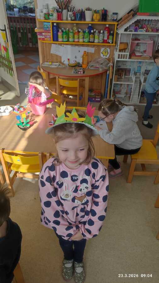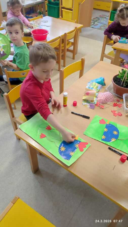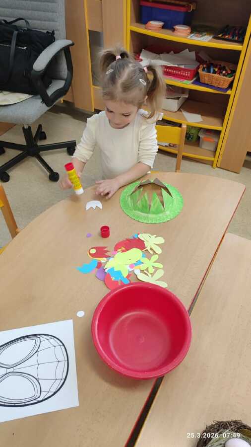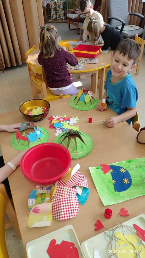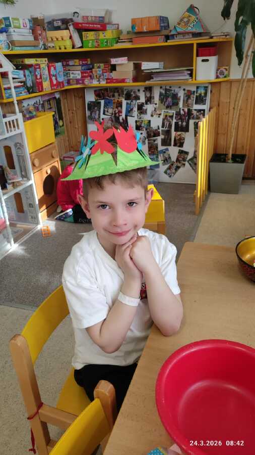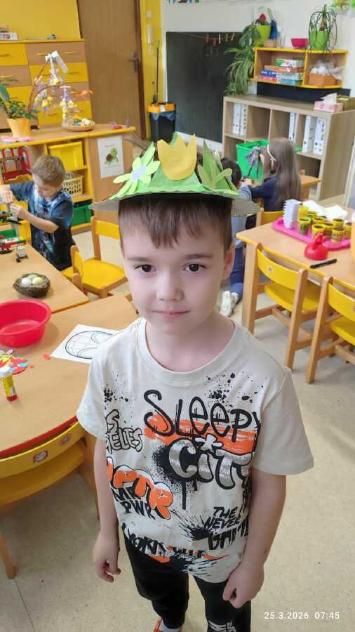DĚTI Z JABLÍČKA SI POVÍDALY O PROBOUZEJÍCÍ SE PŘÍRODĚ. O KVĚTINÁCH CO UŽ KVETOU NA ZAHRÁDKÁCH. PŘEMÝŠLELY O TOM, KDE SE BEROU VAJÍČKA A VYROBILY SI JARNÍ KLOBOUČKY.![]()