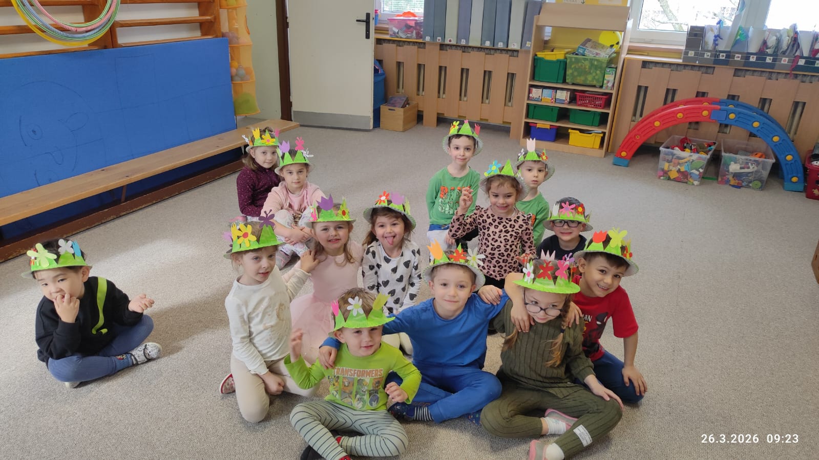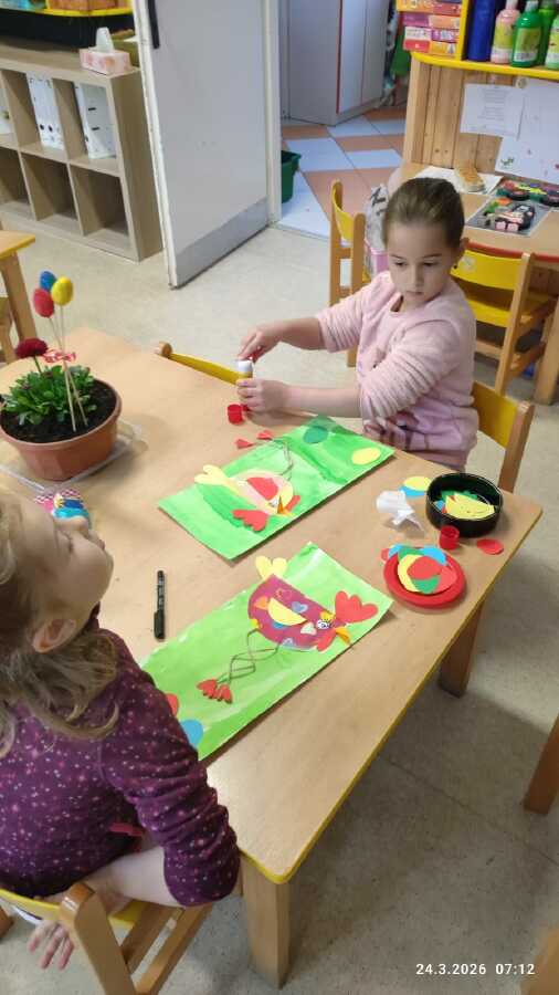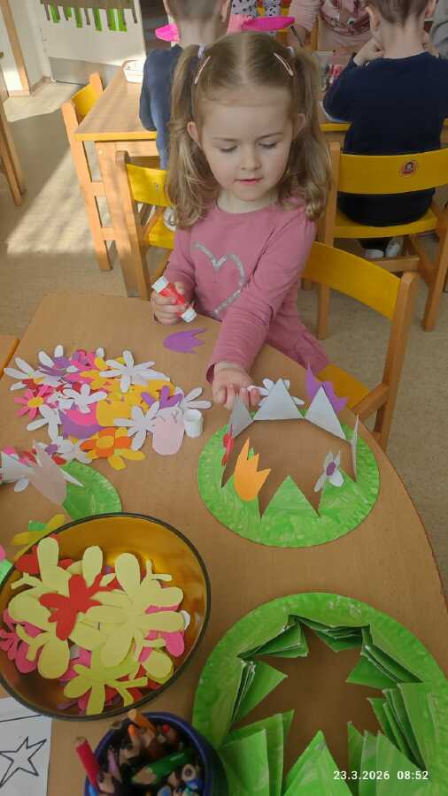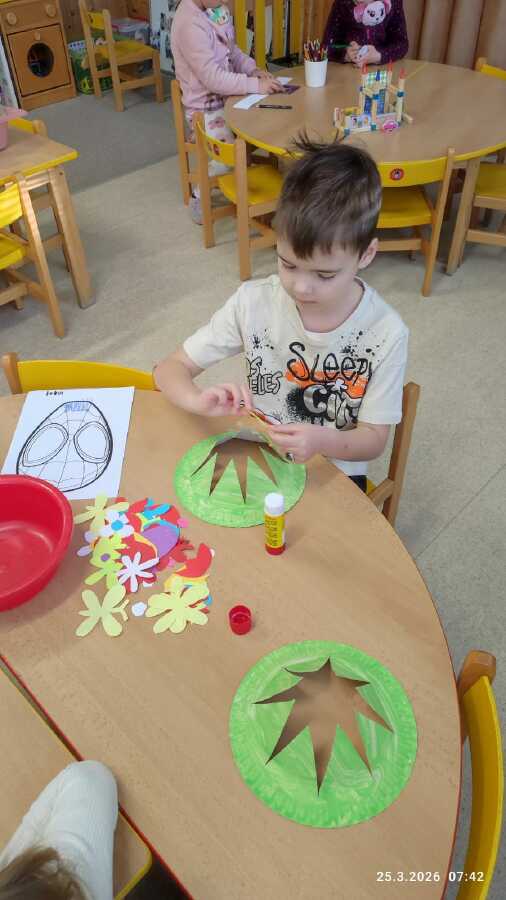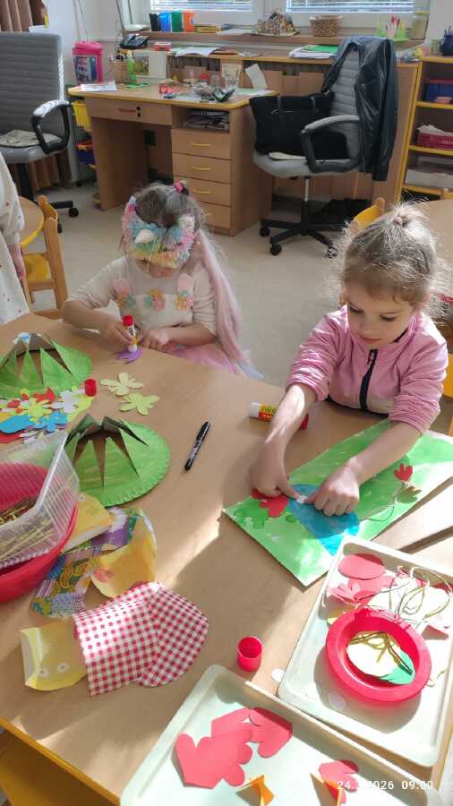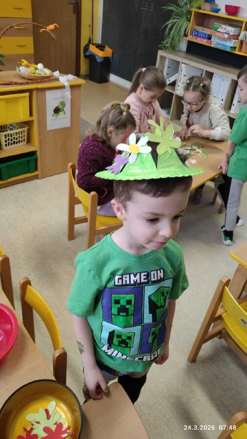 DĚTI Z JABLÍČKA SI POVÍDALY O PROBOUZEJÍCÍ SE PŘÍRODĚ. O KVĚTINÁCH CO UŽ KVETOU NA ZAHRÁDKÁCH. PŘEMÝŠLELY O TOM, KDE SE BEROU VAJÍČKA A VYROBILY SI JARNÍ KLOBOUČKY.![]()