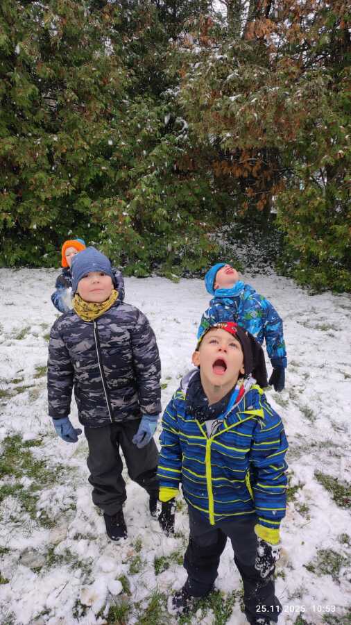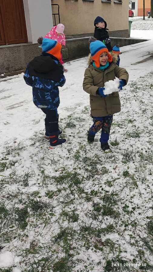 PRVNÍ SNÍH A JABLÍČKA SI NA SNĚHU UŽÍVAJÍ PRVNÍ SNĚHOVÉ VLOČKY