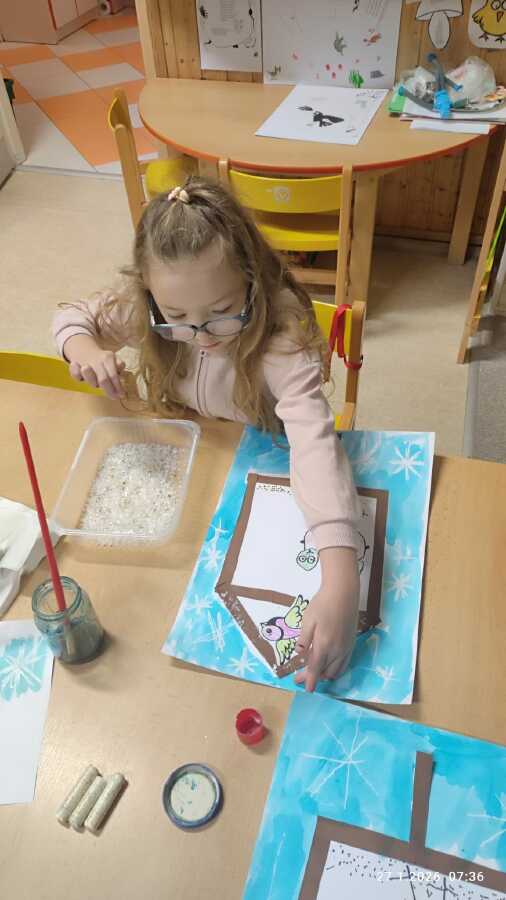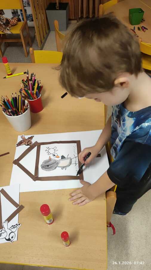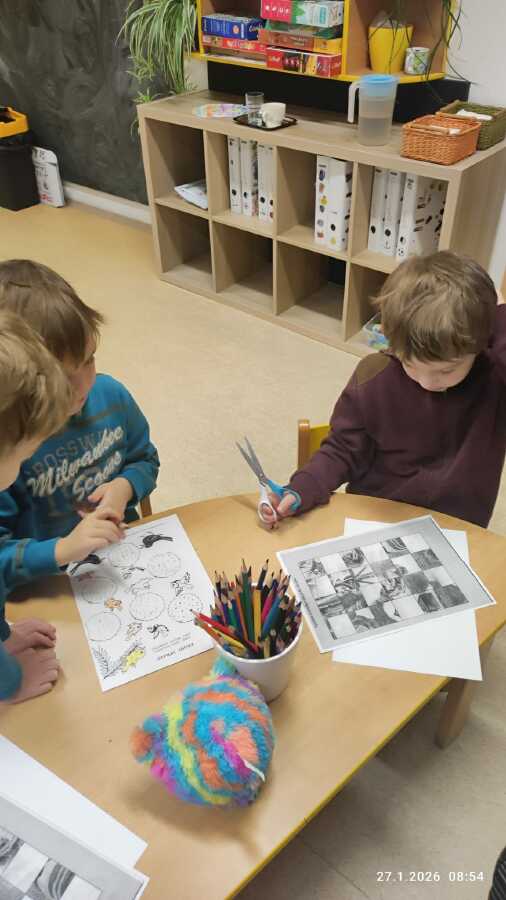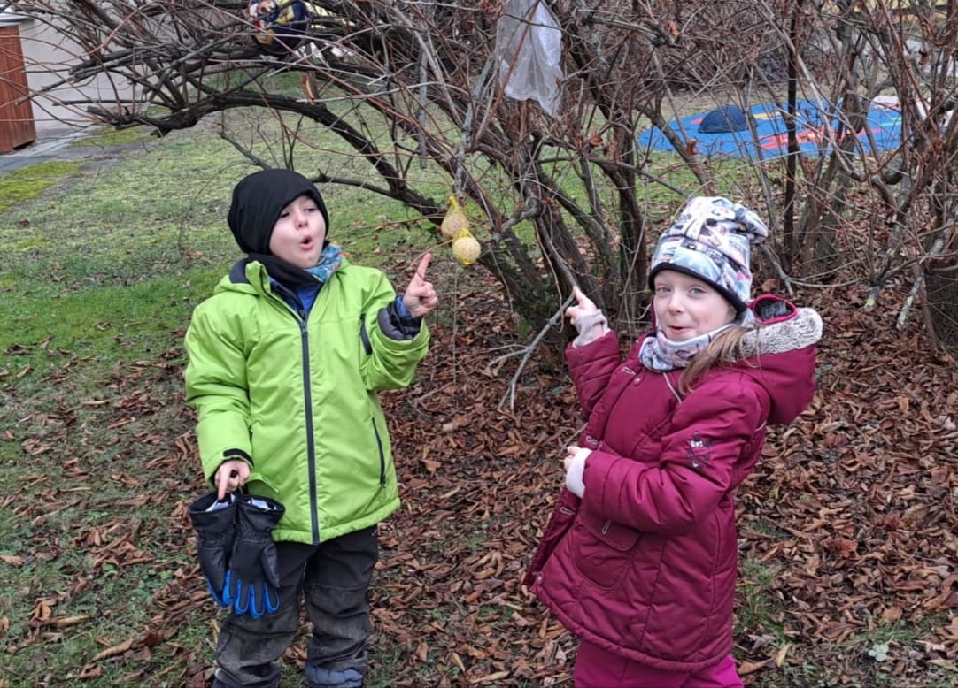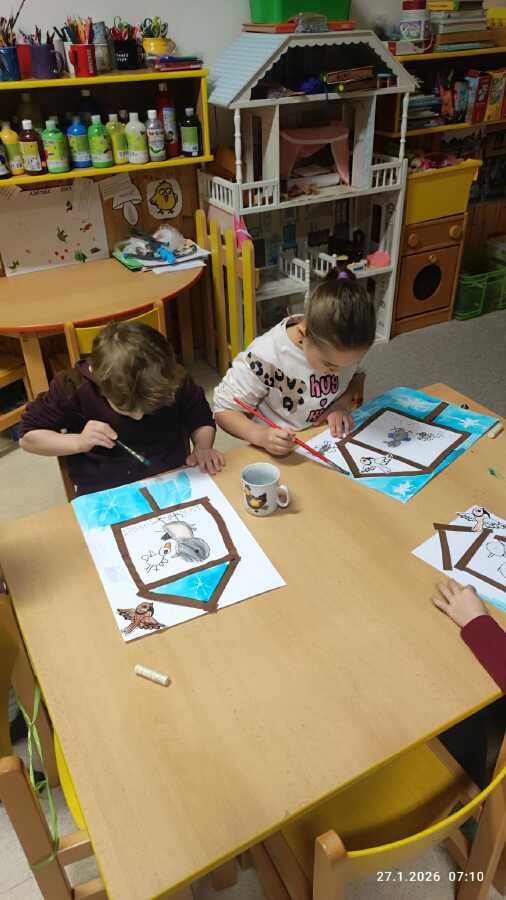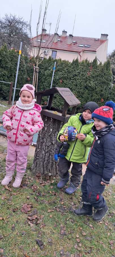 DĚTI SI POVÍDALY O TOM, CO DĚLAJÍ PTÁČCI V ZIMĚ, JAK SE JMENUJÍ TI, CO LÉTAJÍ NA KRMÍTKO NA ZAHRADU MŠ A JAK JIM MŮŽEME POMÁHAT, ABY NEMĚLI HLAD...