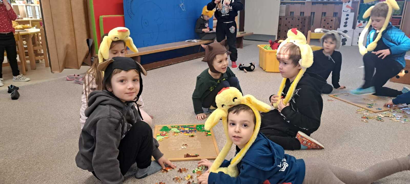 ZVÍŘÁTKA V ZIMĚ,DĚTI SI NOSILY KNÍŽKY O ZVÍŘÁTKÁCH, PLYŠÁKY NA CVIČENÍ. ČETLI JSME Z DONESENÝCH KNÍŽEK. HRÁLI JSME "ZVÍŘÁTKOVÉ" POHÁDKY A VYPRÁVĚLI SI,KTERÁ ZVÍŘÁTKA V ZIMĚ SPÍ , A KTERÁ POTŘEBUJÍ POMOC OD LIDÍ.