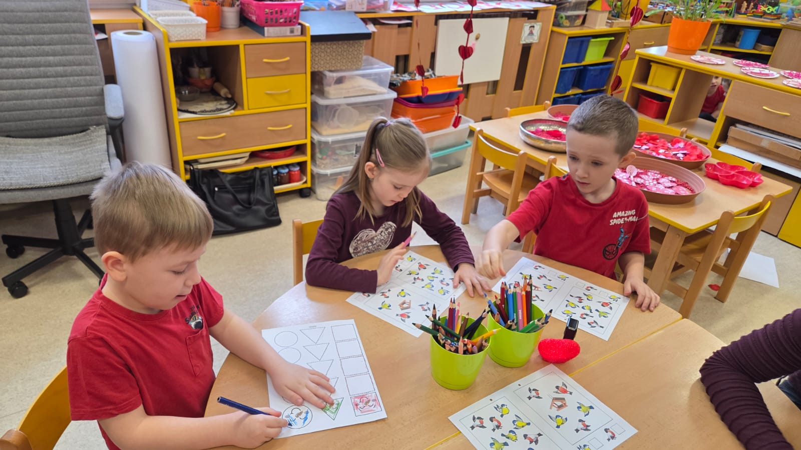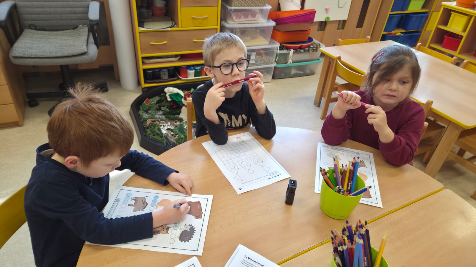 NAŠI PŘEDŠKOLÁČCI SE CHYSTAJÍ K ZÁPISU POSTUPNĚ JIŽ OD ZÁŘÍ,PROCVIČUJÍ NEJEN ZRAKOVÉ A SLUCHOVÉ VNÍMÁNÍ,ALE TAKÉ CVIČÍ,ZPÍVAJÍ,NĚKTEŘÍ SE UŽ UMÍ I PODEPSAT.