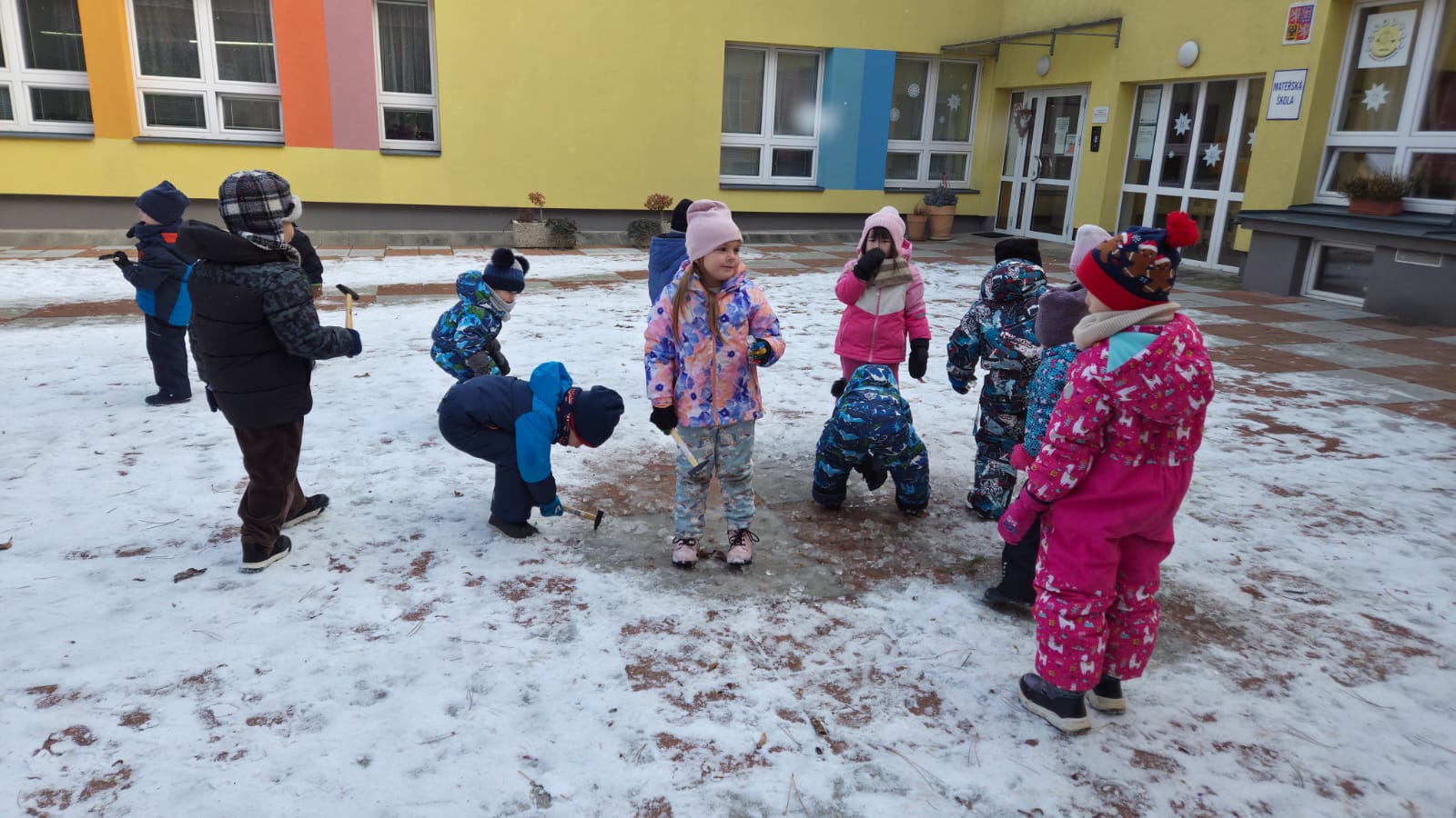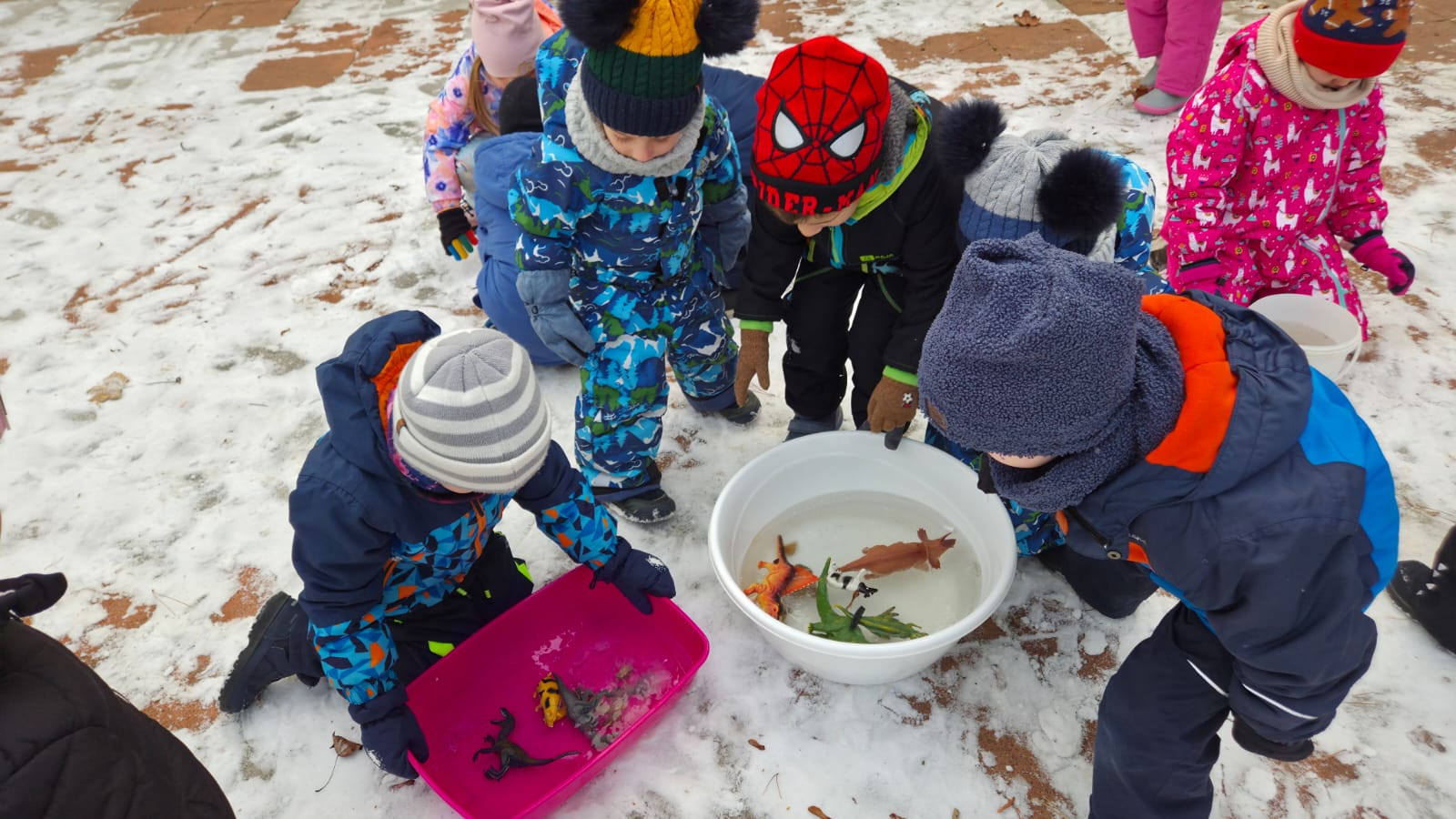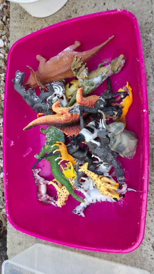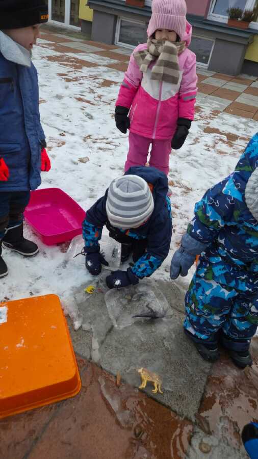 DĚTI SI CHTĚLY VYZKOUŠET ZÁCHRANU ZVÍŘAT Z DOBY LEDOVÉ. NEJDŘÍVE JSME ZVÍŘATKA NECHALY ZAMRZNOUT VE VODĚ A MRAZIVÉ NOCI BYLY SUPER. POTOM DĚTI S RODIČI CHODILY KONTROLOVAT JAK SE VODA MĚNÍ V LED. A KDYŽ NÁM VŠE POŘÁDNĚ ZAMRZLO,DOŠLO NA KLADÍVKA A VYSVOBOZOVÁNÍ ZVÍŘÁTEK ... A POVEDLO SE.PAK UŽ NÁSLEDOVALA SUPER HRA NA SNĚHU![]()