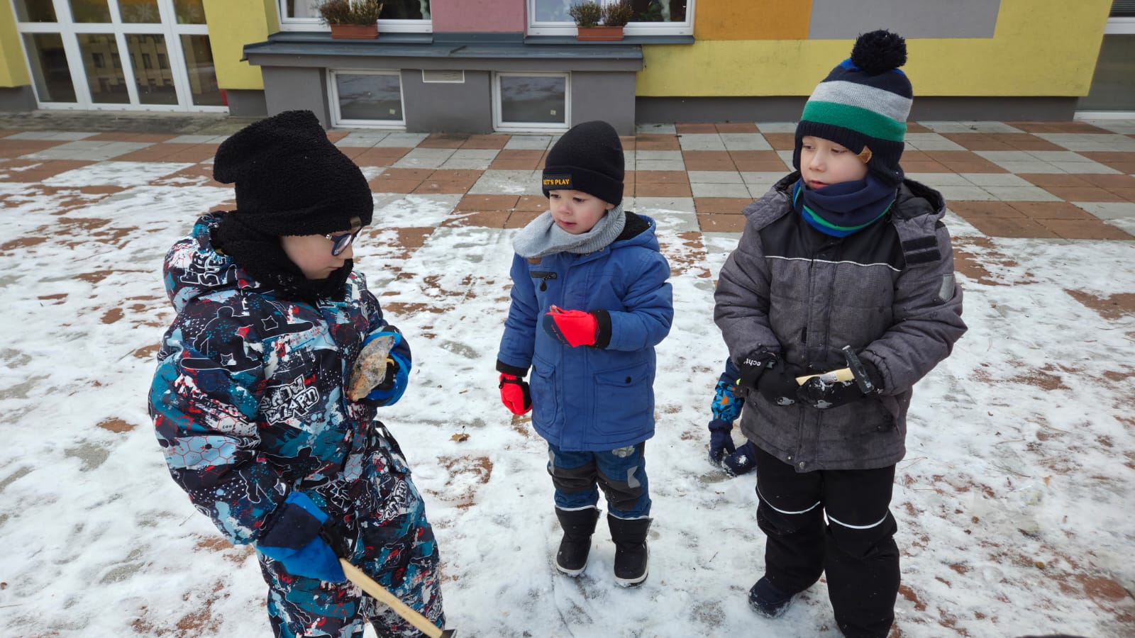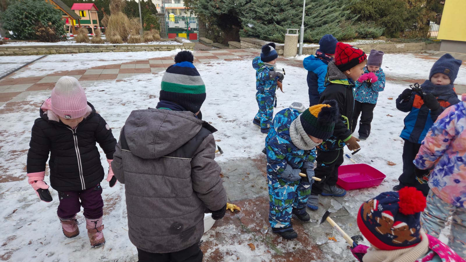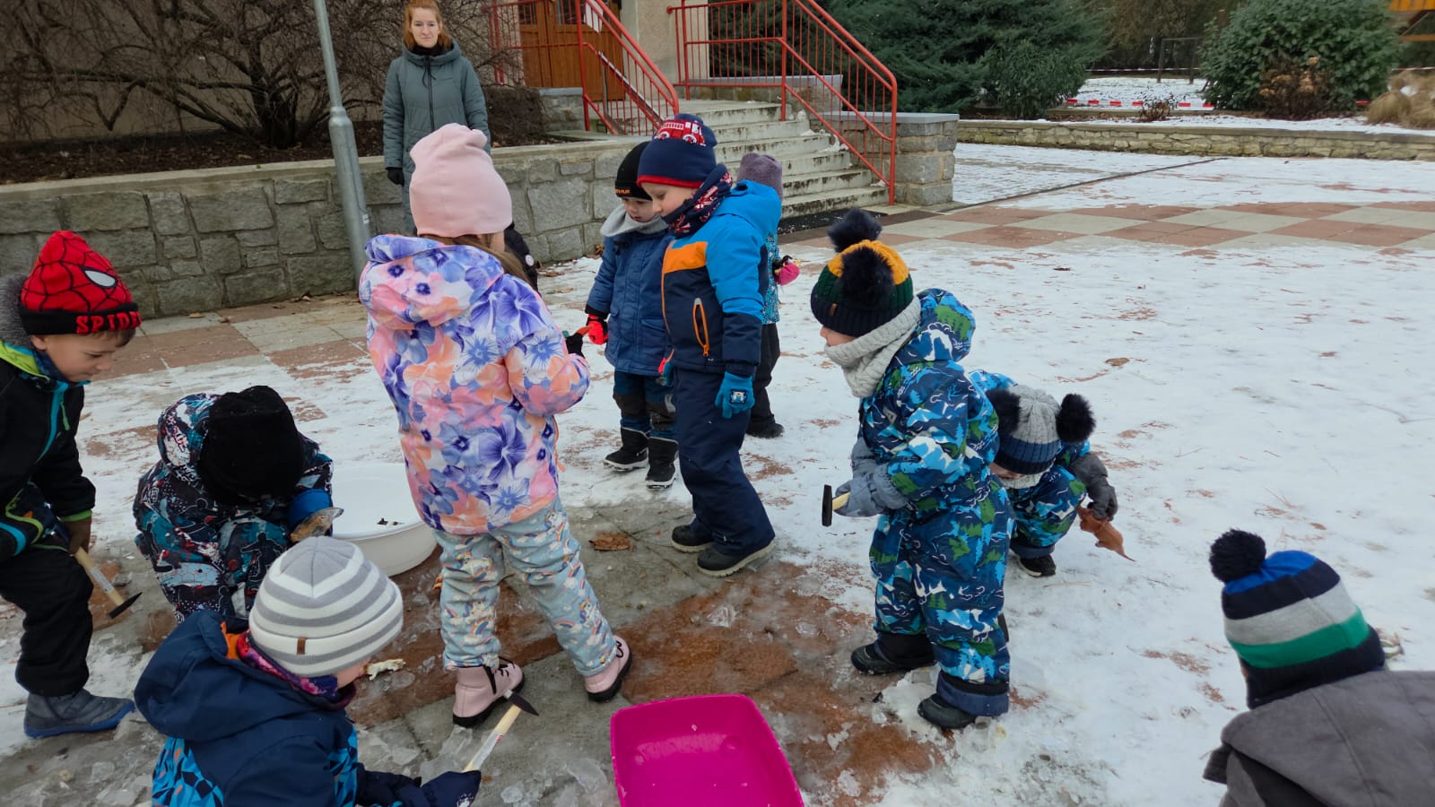 DĚTI SI CHTĚLY VYZKOUŠET ZÁCHRANU ZVÍŘAT Z DOBY LEDOVÉ. NEJDŘÍVE JSME ZVÍŘATKA NECHALY ZAMRZNOUT VE VODĚ A MRAZIVÉ NOCI BYLY SUPER. POTOM DĚTI S RODIČI CHODILY KONTROLOVAT JAK SE VODA MĚNÍ V LED. A KDYŽ NÁM VŠE POŘÁDNĚ ZAMRZLO,DOŠLO NA KLADÍVKA A VYSVOBOZOVÁNÍ ZVÍŘÁTEK ... A POVEDLO SE.PAK UŽ NÁSLEDOVALA SUPER HRA NA SNĚHU![]()
