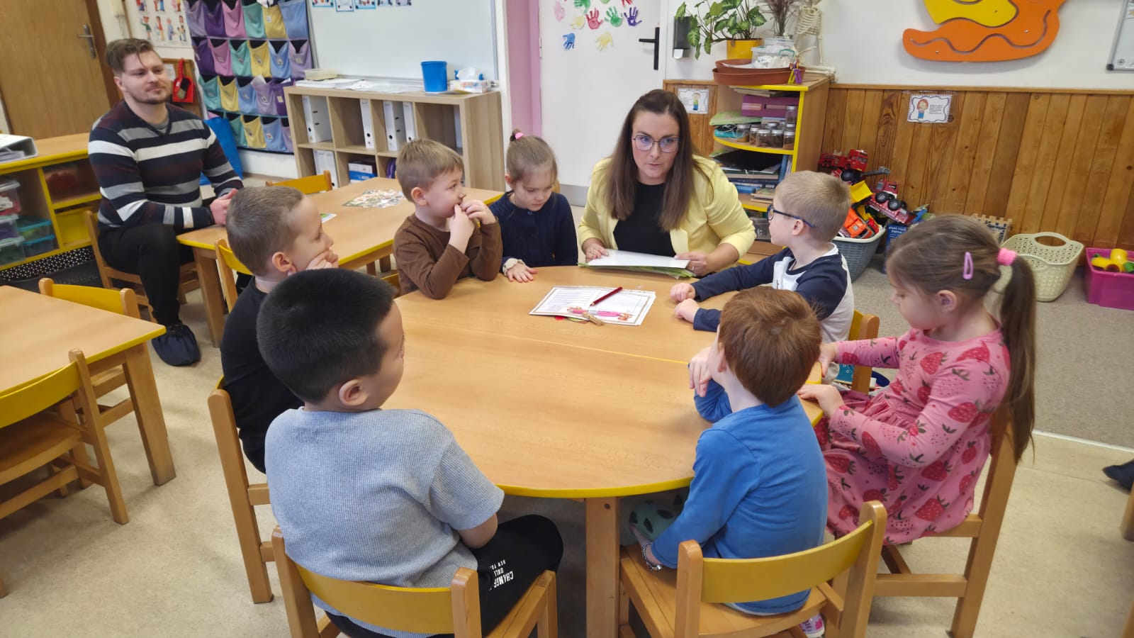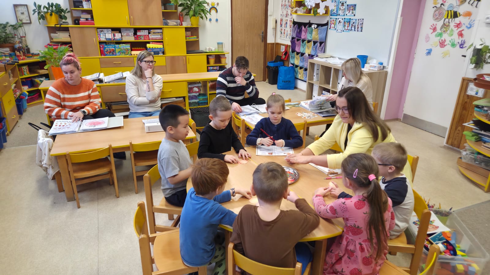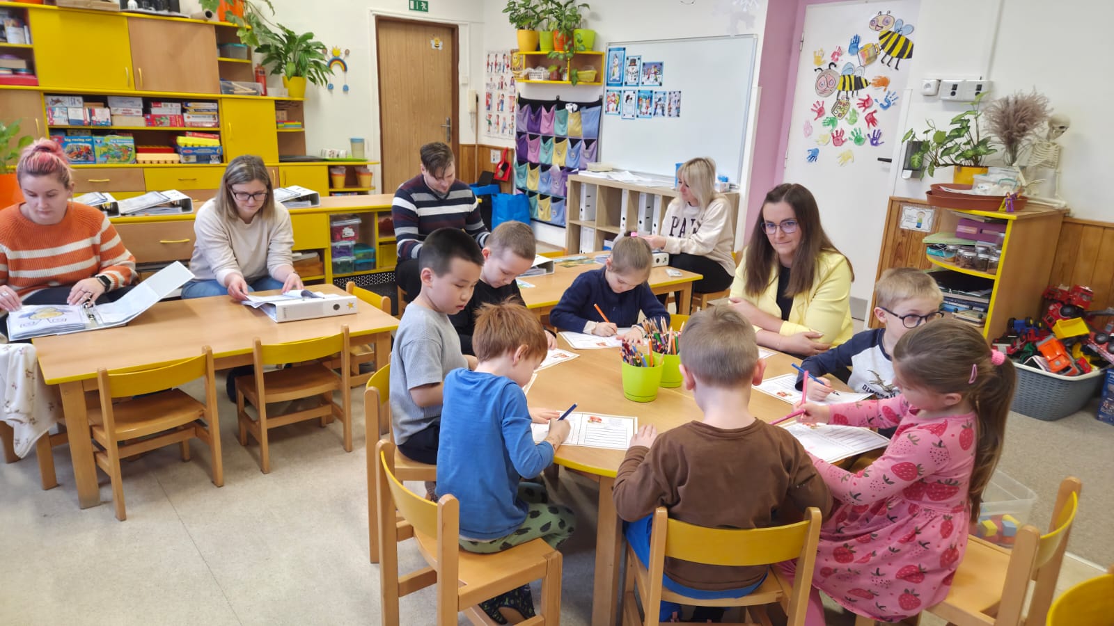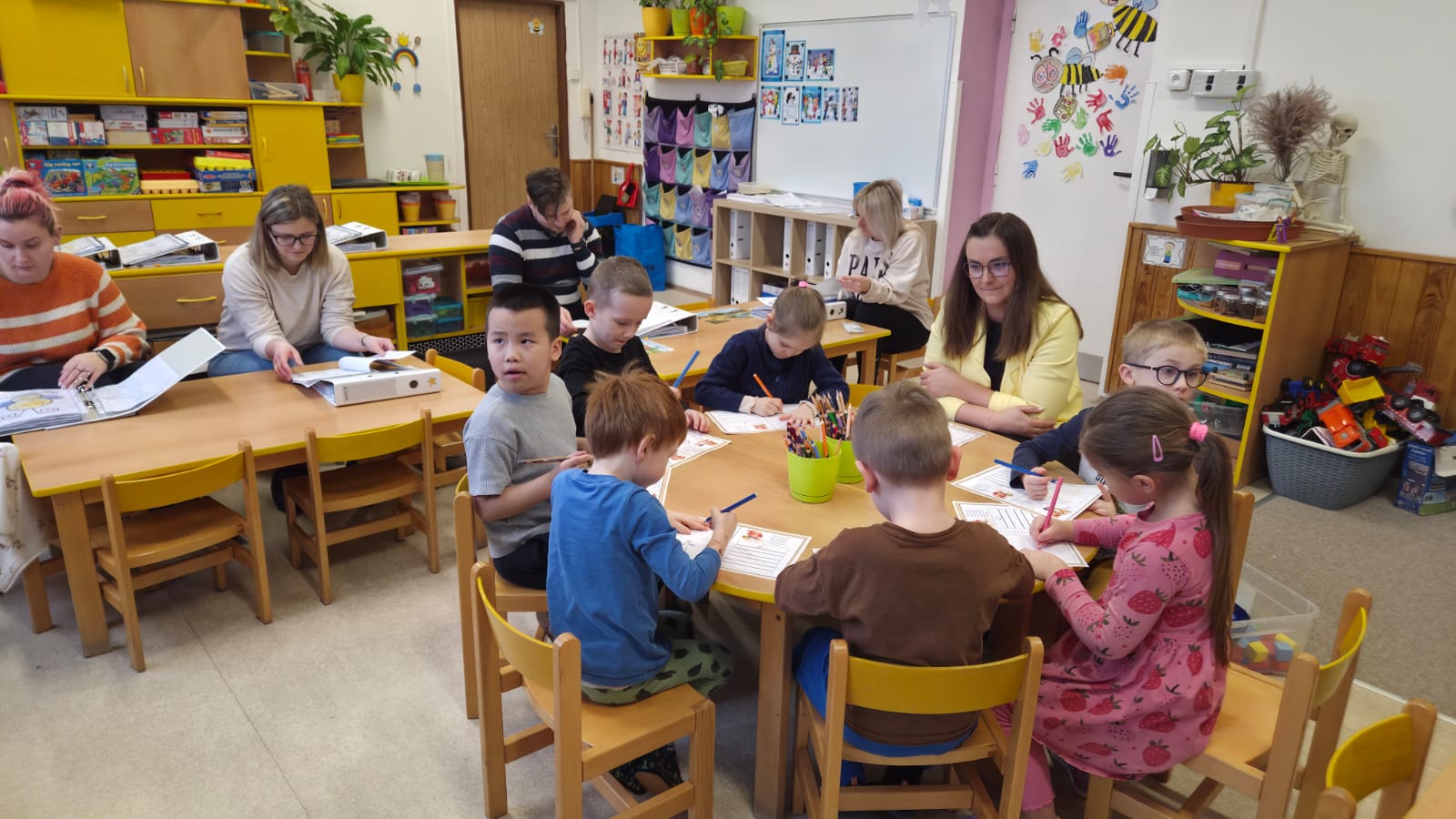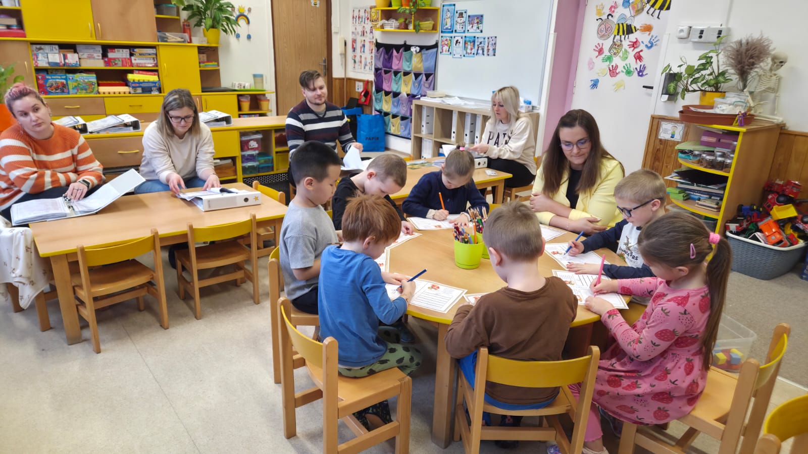 PŘEDŠKOLNÍ DĚTI ZE VČELIČEK SI DNES SPOLEČNĚ VYZKOUŠELY JAK TO BUDE ZA TÝDEN U ZÁPISU DO PRVNÍ TŘÍDY.