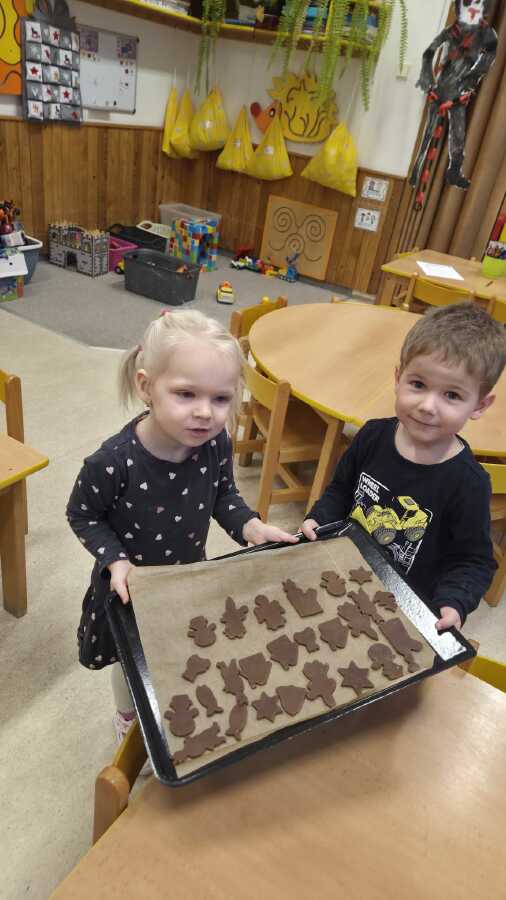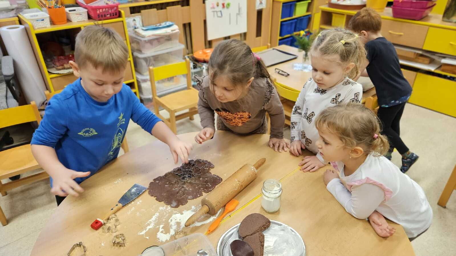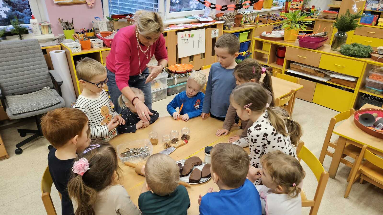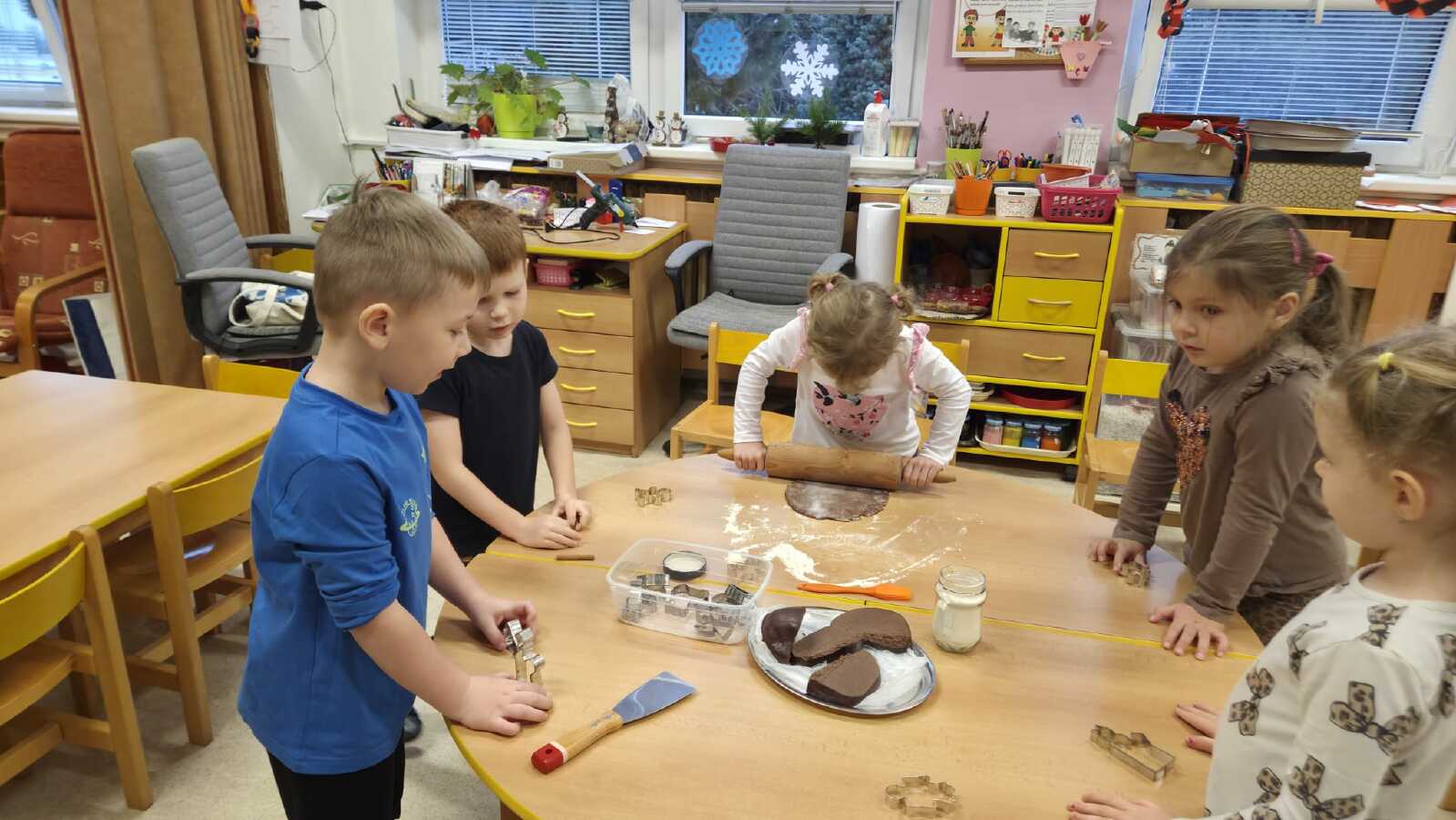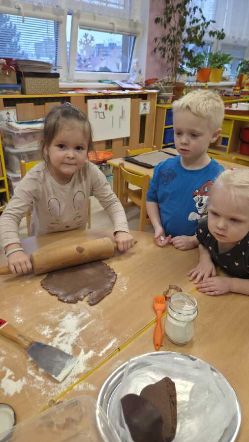 POZNÁVALY VOŇAVÉ KOŘENÍ,VYVALOVALY TĚSTO O VYKRAJOVALY SI PERNÍČKY.TO BYLO NAJEDNOU POMOCNÍČKŮ