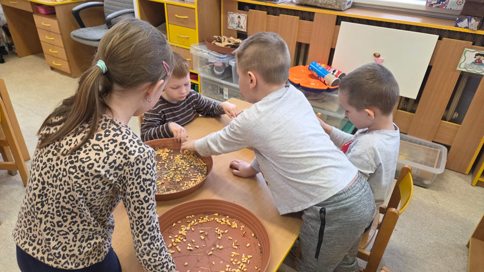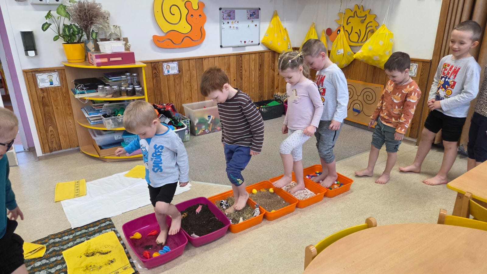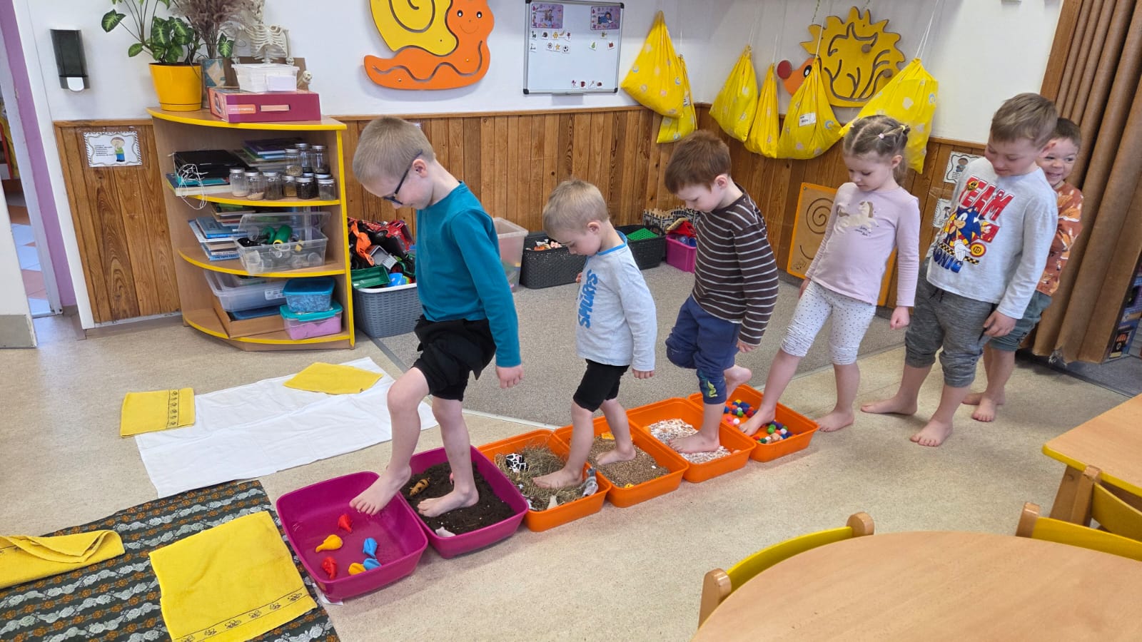 DĚTI KRÁSNÉ VNÍMALY SVÝM TĚLEM RŮZNÉ MATERIÁLY, NĚKTERÉ BYLY PŘÍJEMNÉ, NĚKTERÉ MÉNĚ, ALE VŠICHNI CHTĚLI JEŠTĚ A JEŠTĚ![]()