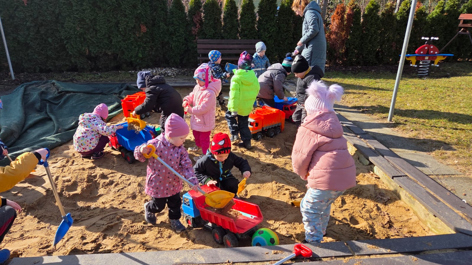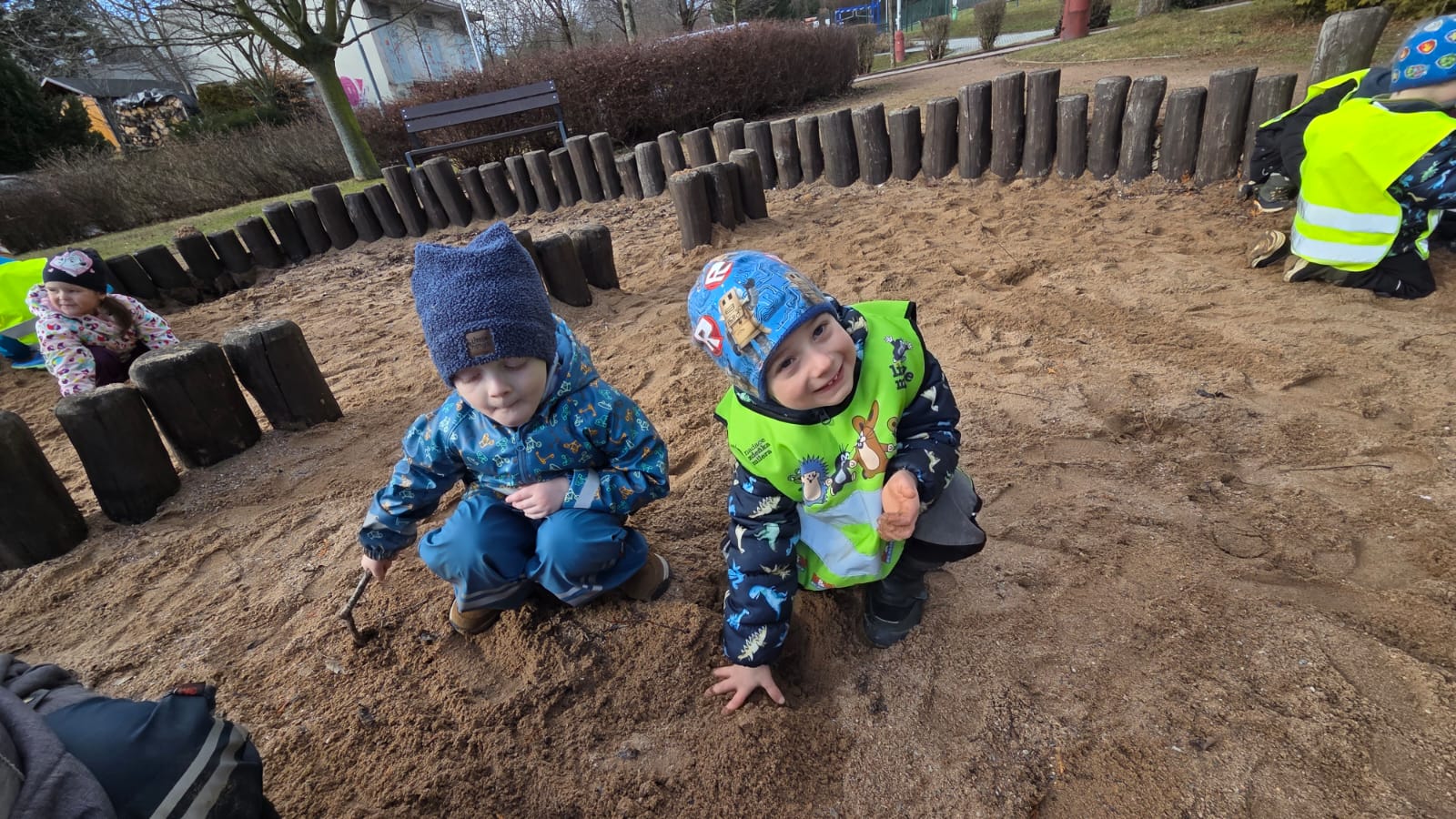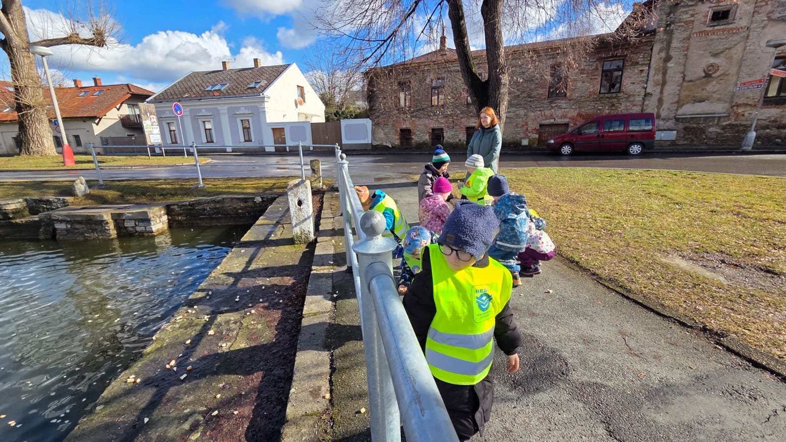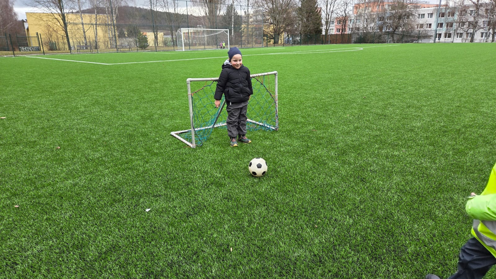 DĚTI HRÁLY FOTBAL,HÁZELY SI MÍČEM NA VELIKÉM HŘIŠTI.TAKÉ JSME NAKRMILI KAČENKY NA RYBNÍCE. A VYZKOUŠELI JSME JAKÉ JE TO PO ZIMĚ NA PÍSKOVIŠTI