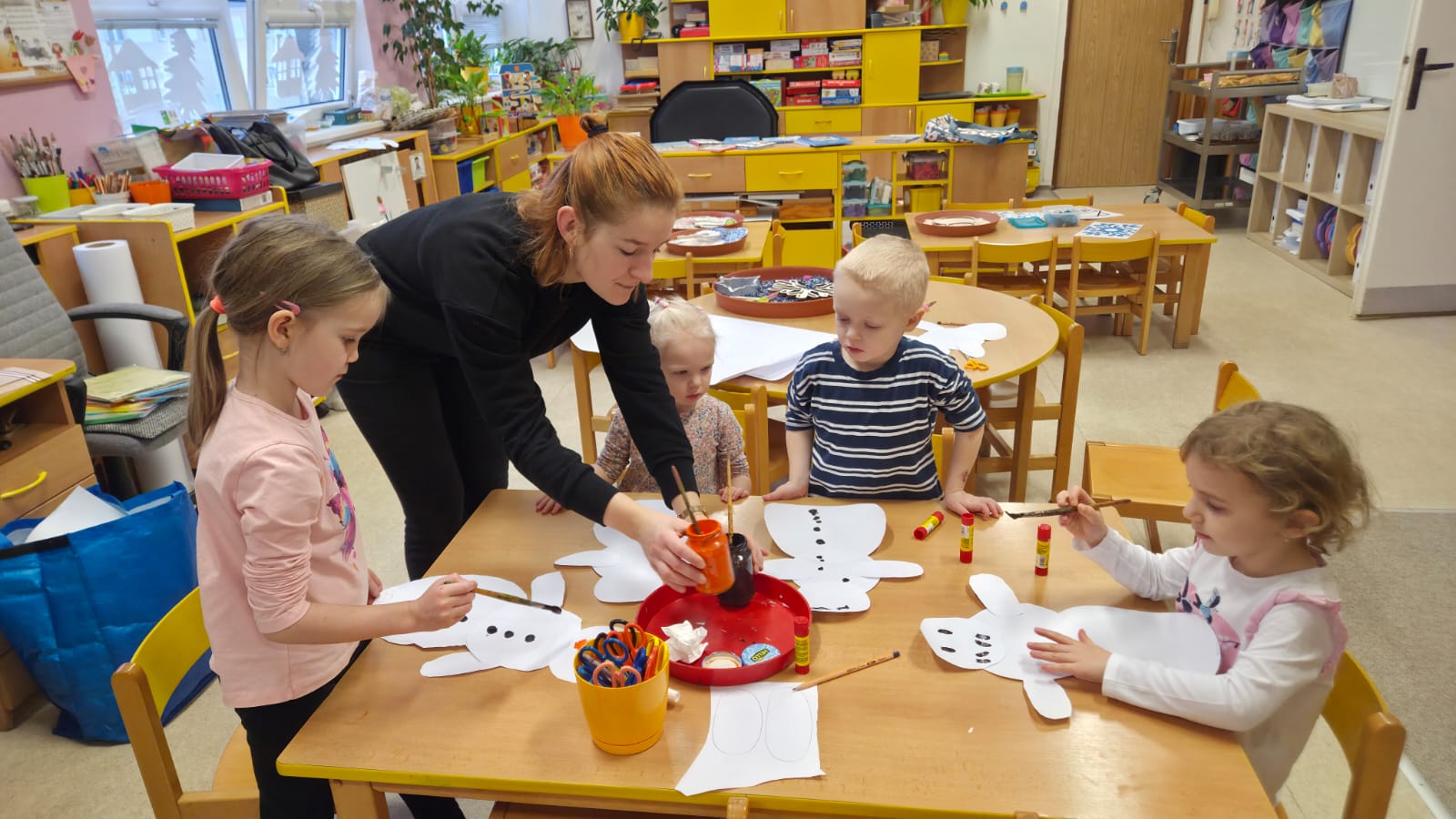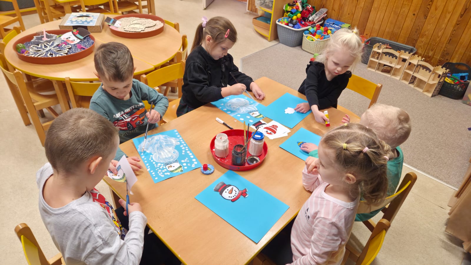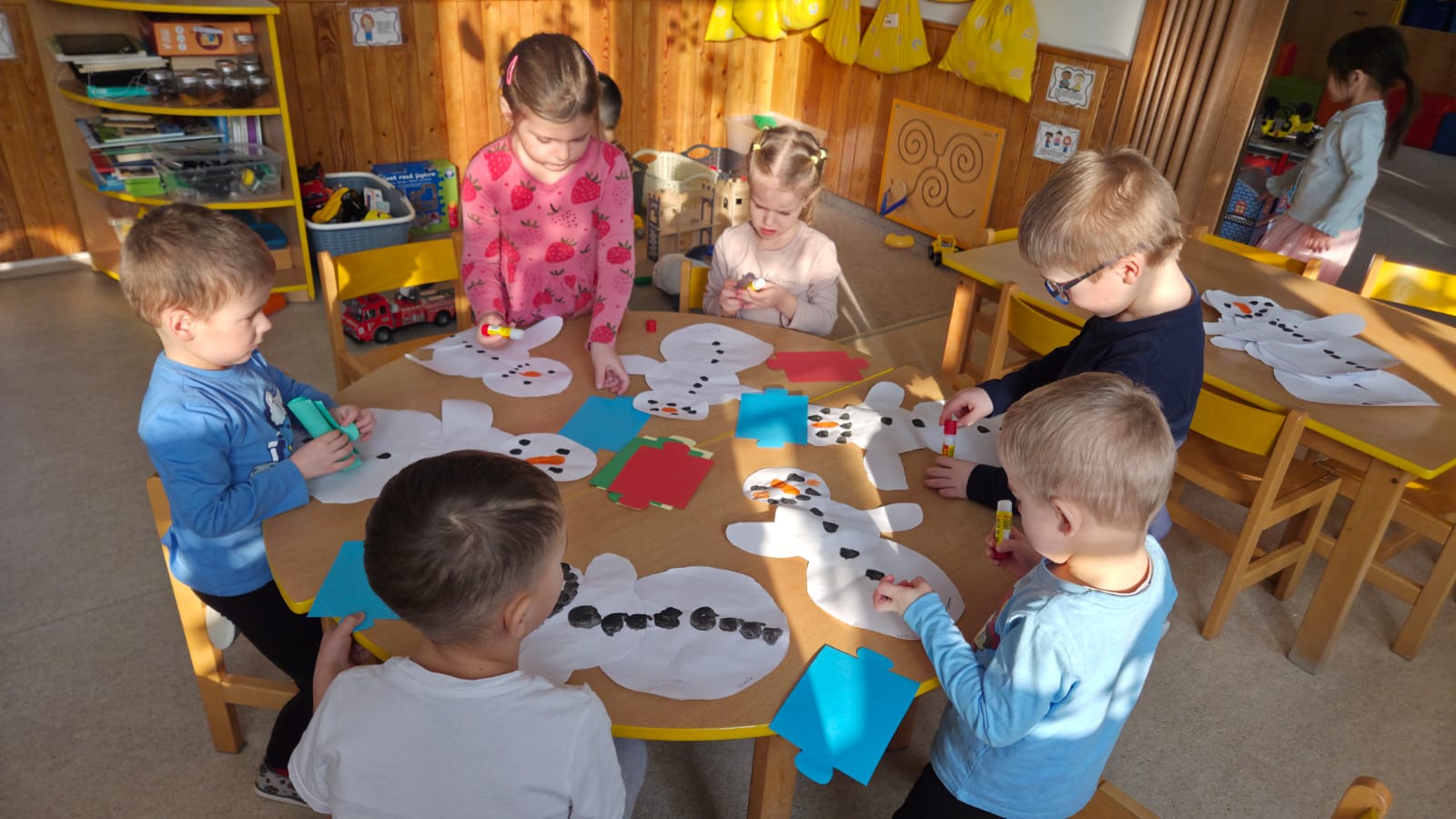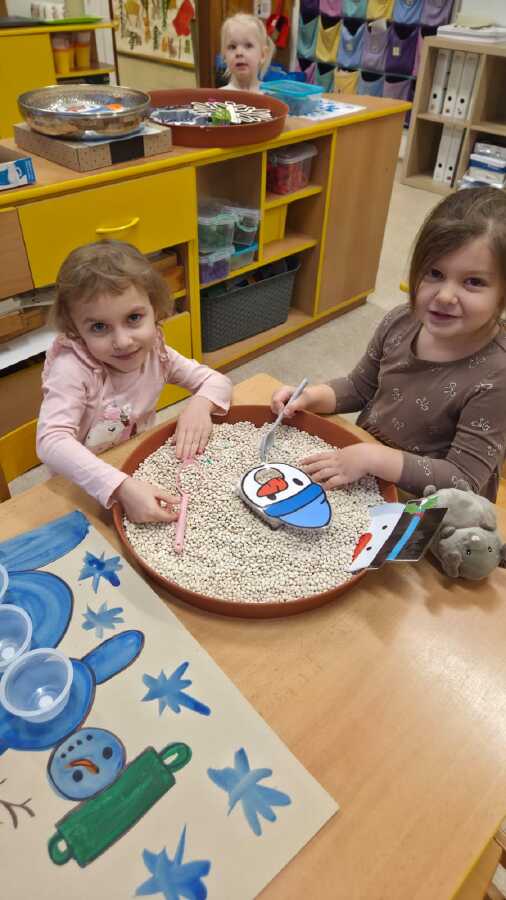 CELÝ TÝDEN VE VČELIKÁCH "MRZLO" A TŘÍDA BYLA PLNÁ SNĚHULÁČKŮ, DĚTI MODELOVALY, MALOVALY,POČÍTALY KNOFLÍKY,PROHLÍŽELY SI OBRÁZKOVÉ KNÍŽKY, NEBO SI JEN HRÁLY A KRMILY SNĚHULÁKY.