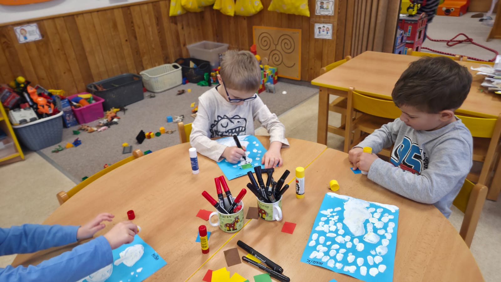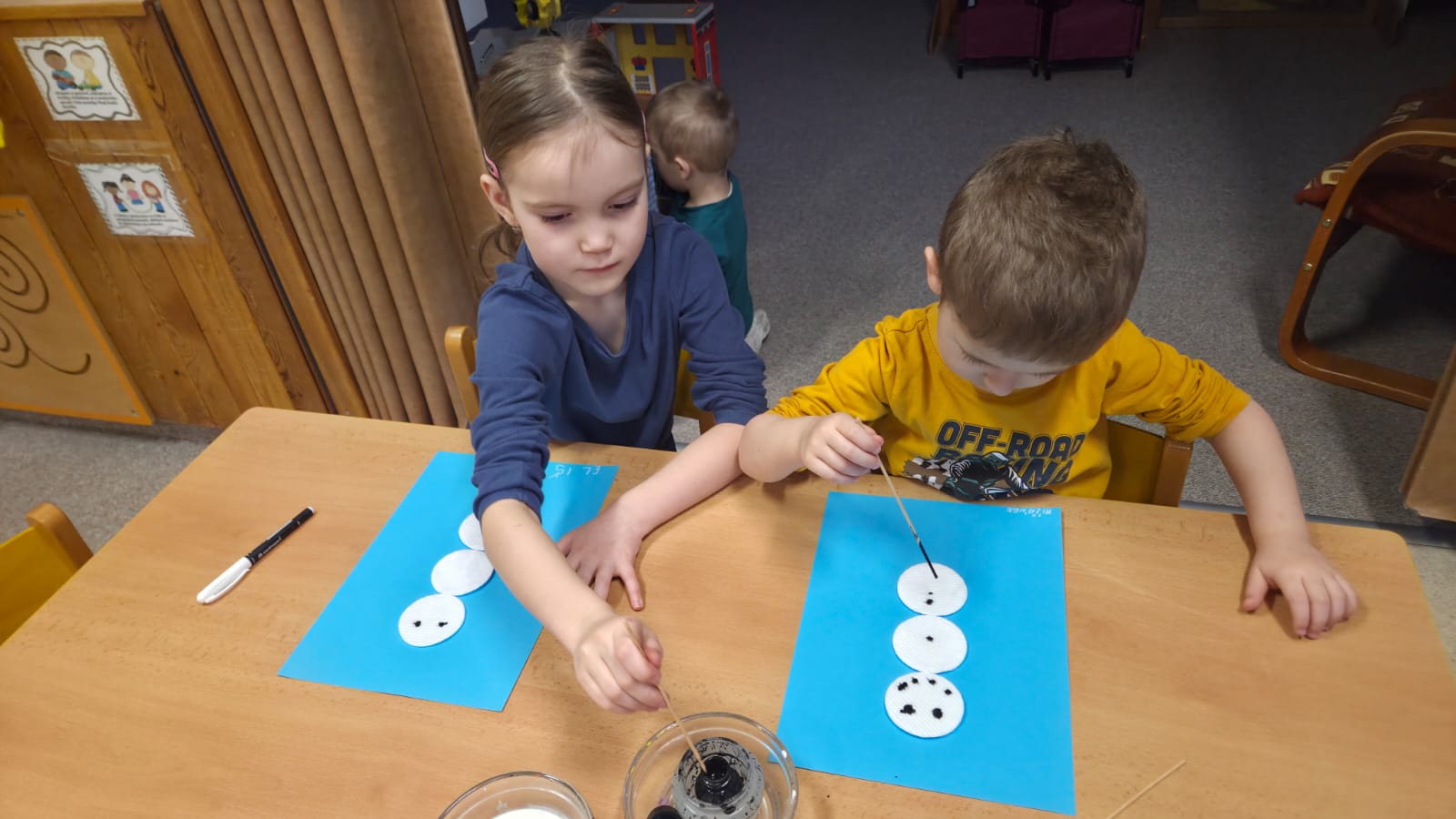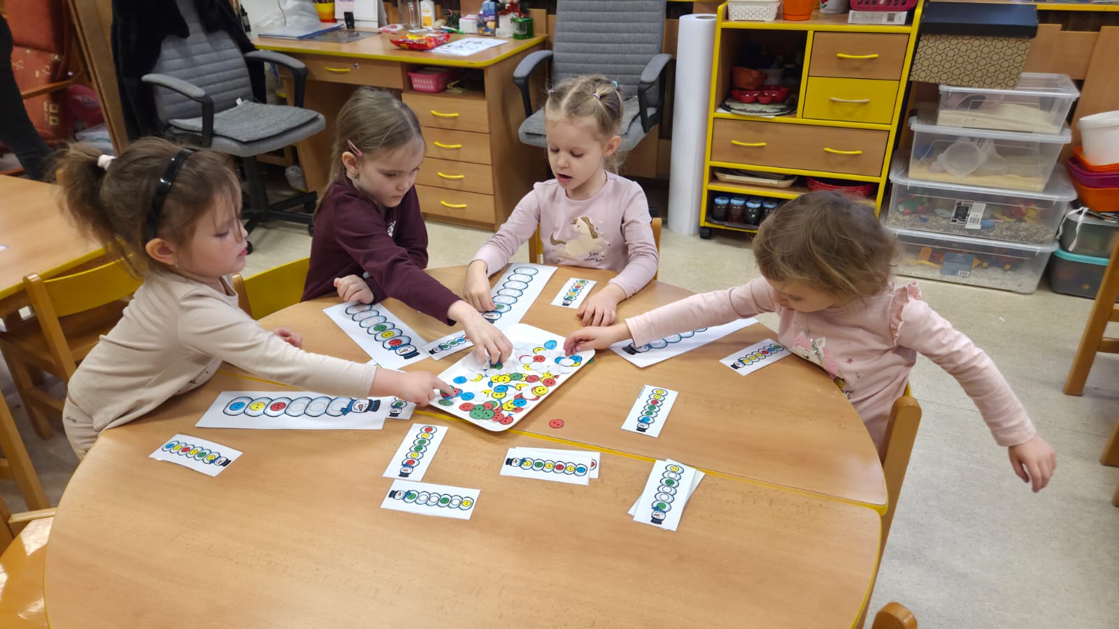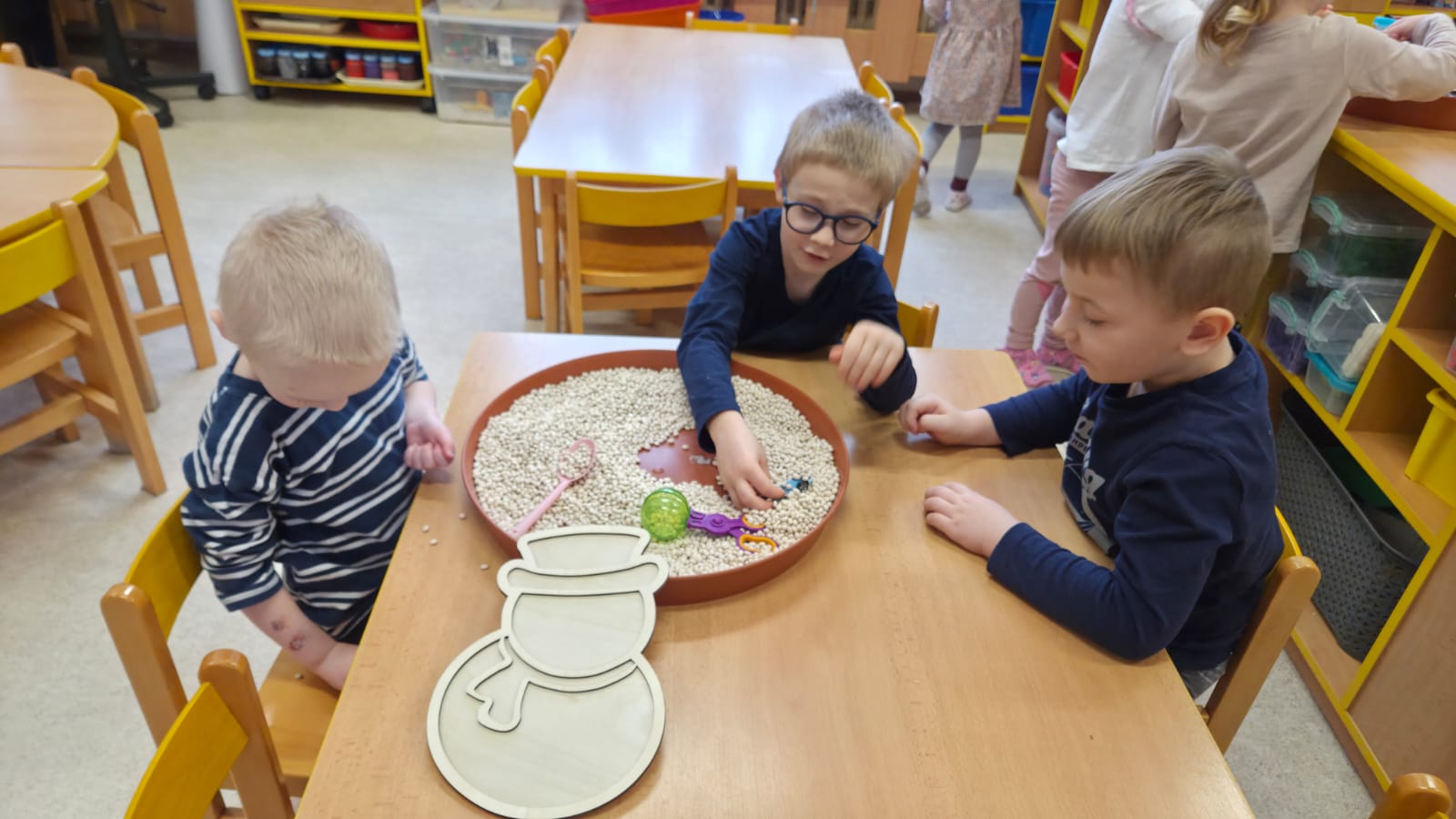 CELÝ TÝDEN VE VČELIKÁCH "MRZLO" A TŘÍDA BYLA PLNÁ SNĚHULÁČKŮ, DĚTI MODELOVALY, MALOVALY,POČÍTALY KNOFLÍKY,PROHLÍŽELY SI OBRÁZKOVÉ KNÍŽKY, NEBO SI JEN HRÁLY A KRMILY SNĚHULÁKY.