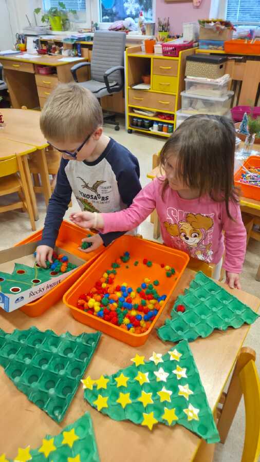 TENTO TÝDEN SE NESL JAKO ČEKÁNÍ NA JEŽÍŠKA. BYLI JSME SE PODÍVAT NA ŽIVÉ VÁNOČNÍ STROMEČKY, UŽ VÍME KTERÝ JE NEJVÍCE PICHLAVÝ. DĚTI SI VE TŘÍDĚ ZDOBILY VÁNOČNÍ PARK PLNÝ SVĚTÝLEK A STROMEČKŮ. KRMILY KAPŘÍKA,NEBO ZDOBILY STROMEČKY BAMBULKAMI A OZDOBIČKAMI.