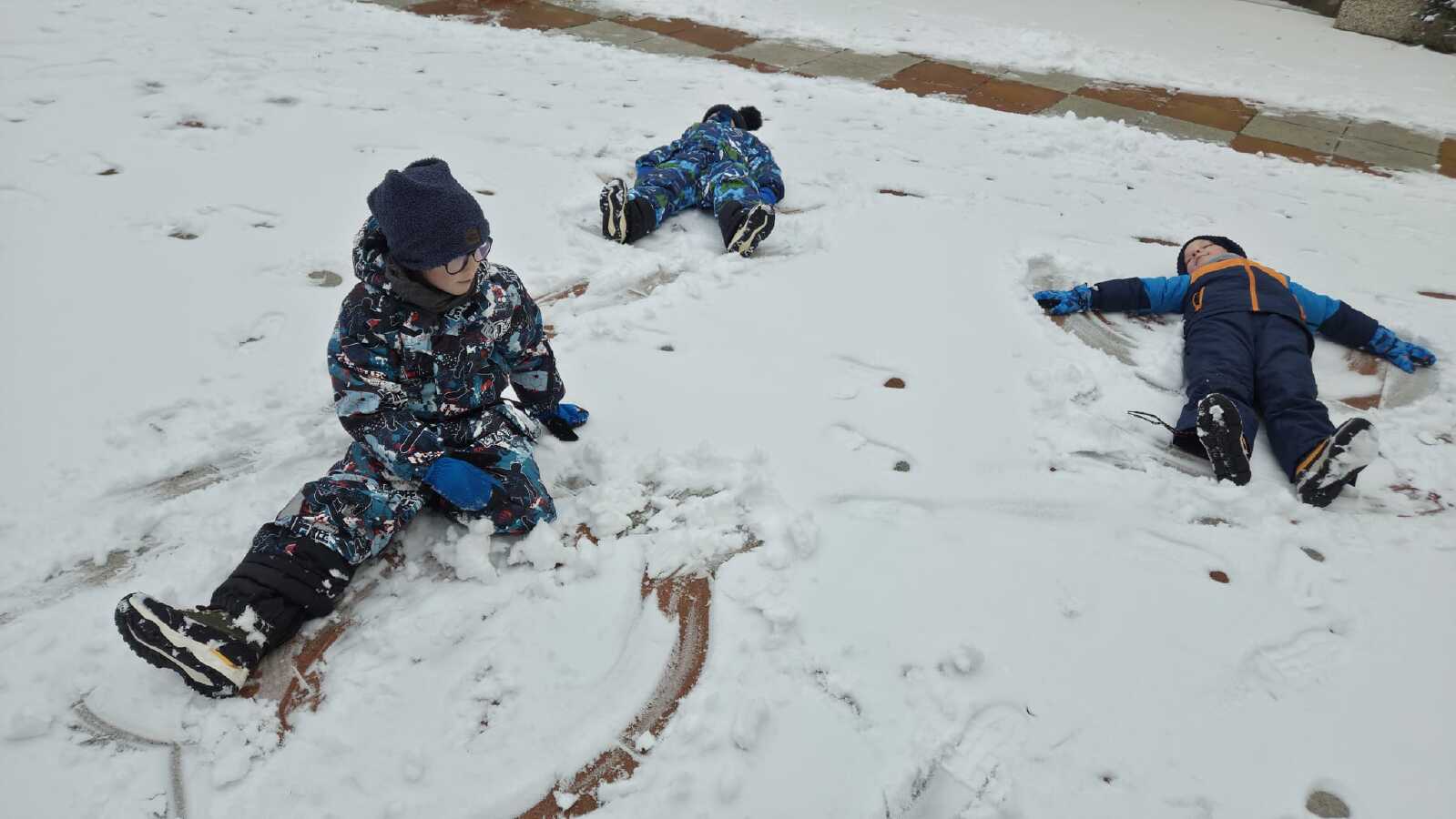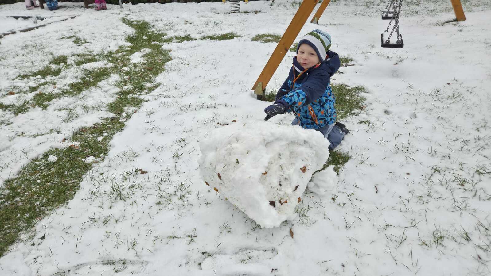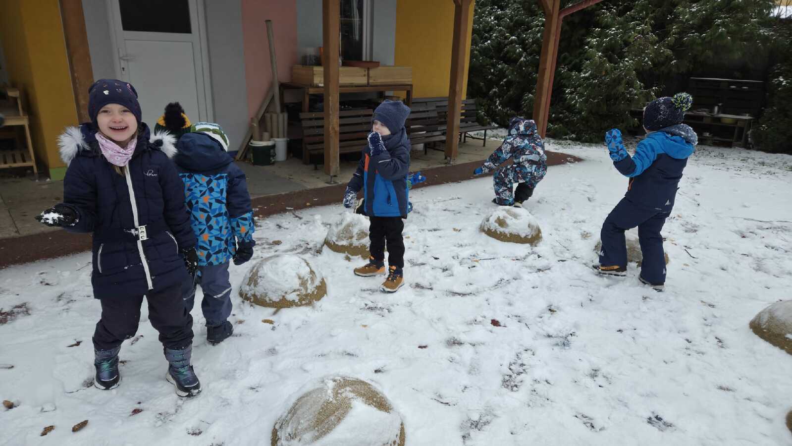 DĚTI ZE VČELIČEK SI UŽ DRUHÝ DEN UŽÍVAJÍ SNĚHOVOU NADÍLKU.