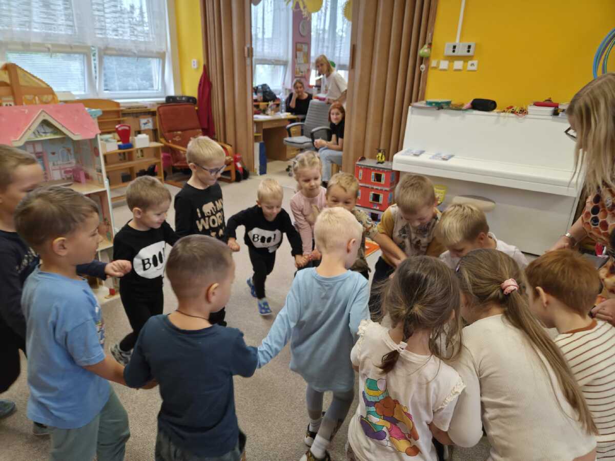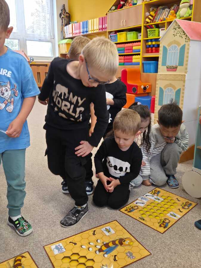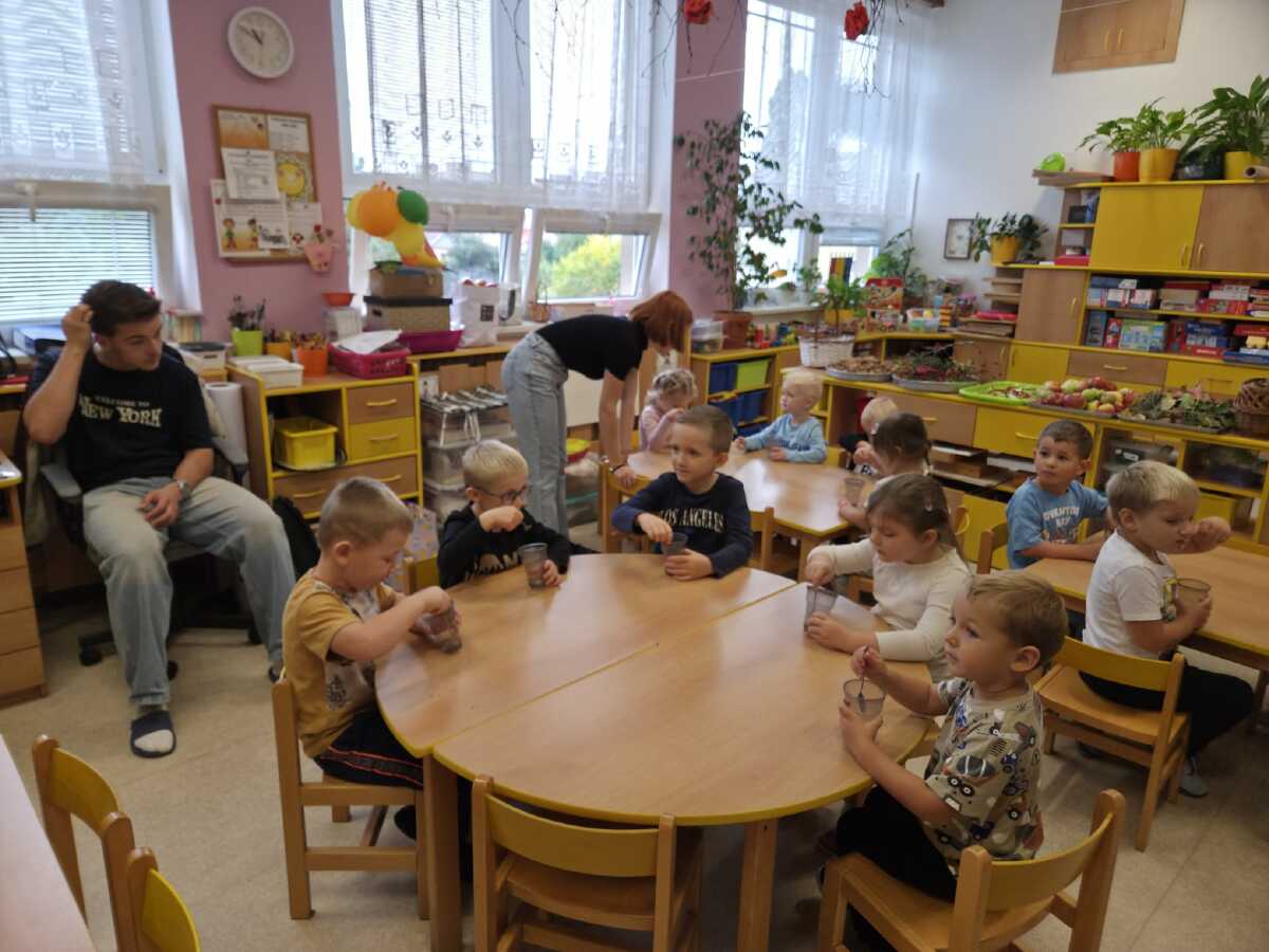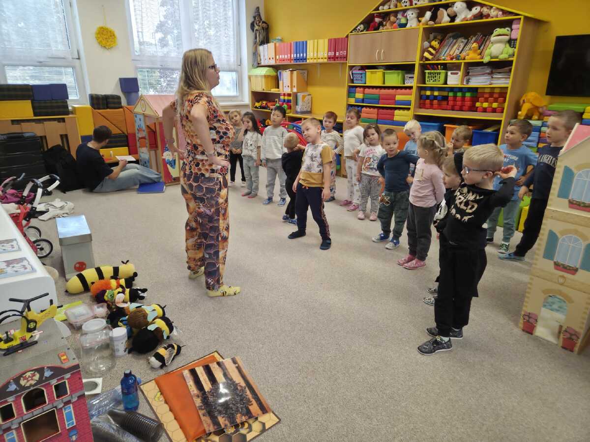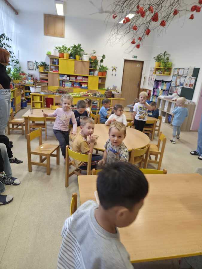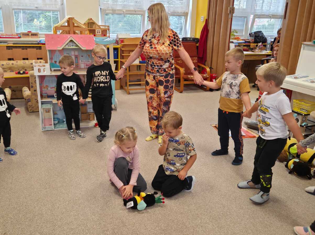 PANÍ VČELAŘKA VELMI PĚKNĚ VYPRÁVĚLA DĚTEM JAK TO CHODÍ V ÚLE,JAK SE VČELIČKY CHYSTAJÍ NA ZIMU.OHŘÍVAJÍ SI KRÁLOVNU A TULÍ SE K SOBĚ.PŘES ZIMU JE VČELAŘI PŘIKRMUJÍ SLADKOU VODOU A TU SI DĚTI SPOLEČNĚ VYROBILY A OCHUTNALY.TAKÉ SE DOZVĚDĚLY KDO VČELIČKÁM ŠKODÍ.A VYZKOUŠELY SI VYROBIT LÉK PRO NEMOCNÉ VČELKY