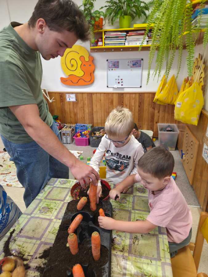 DĚTI MRKEV SÁZELY I SKLÍZELY,A BYLA TO VELKÁ ZÁBAVA.V OBCHODĚ JSME SI JEŠTĚ PROHLÉDLI SPOUTU DALŠÍCH DRUHŮ ZELENINY, ALE I OVOCE