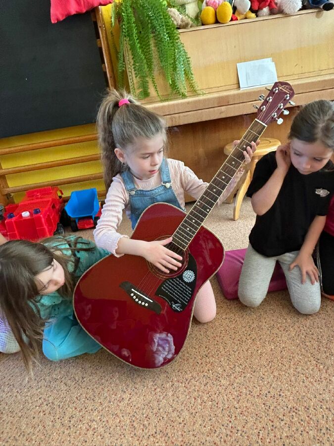 Písničku Travička zelená jsme si ozvláštnili doprovodem na ukulele a kytaru. ![]()