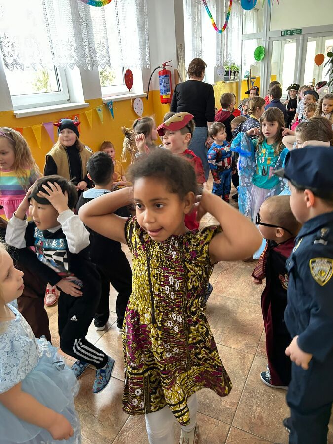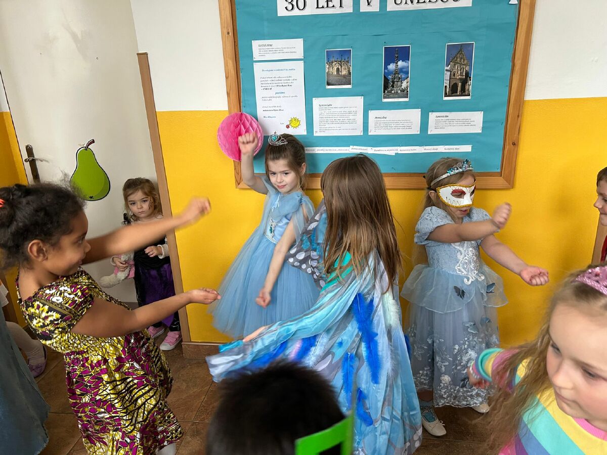 Na závěr Karnevalu se děti ze všech tříd přesunuly do vstupní haly. Zde na ně čekalo karnevalové DISCO.