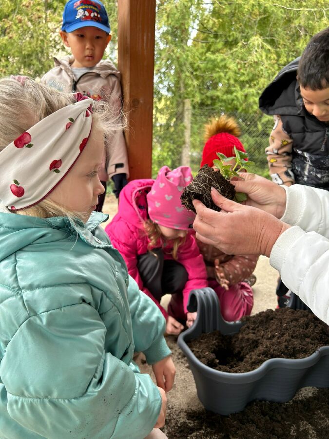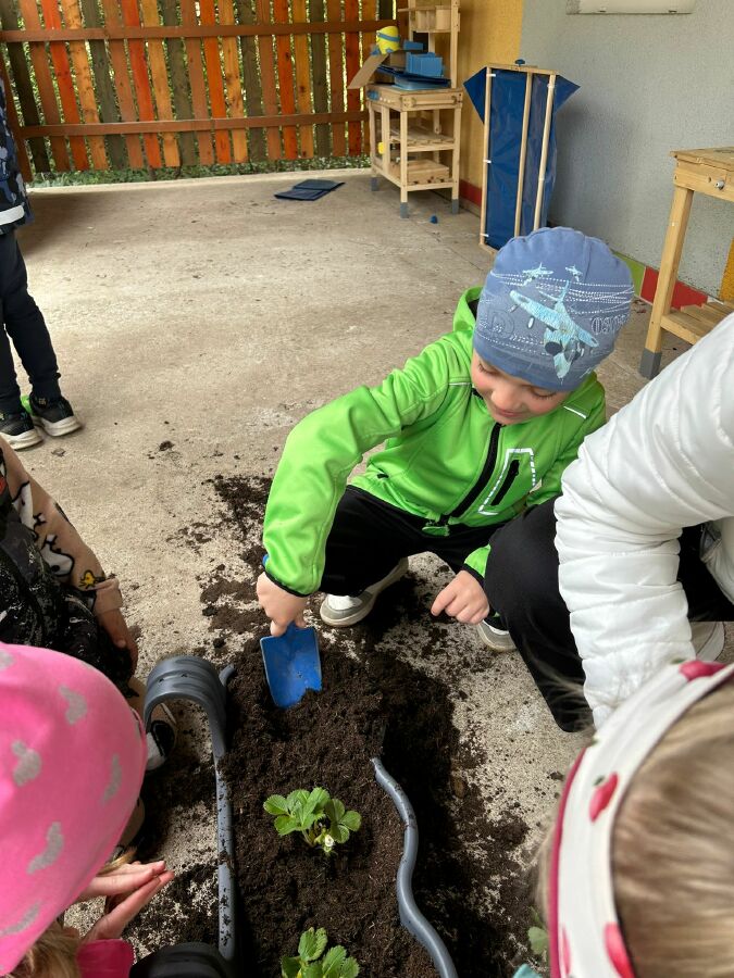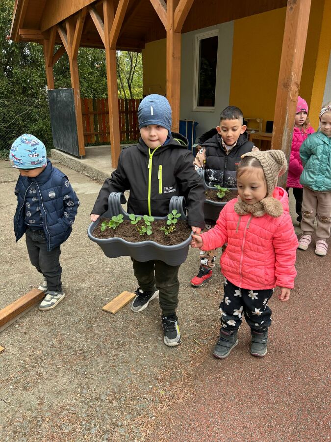 Ty jsme na školkové zahradě nejprve řádně prozkoumali- už víme jak vypadají kořínky i ostatní části rostlin a dokonce jsme objevili první kvítky.