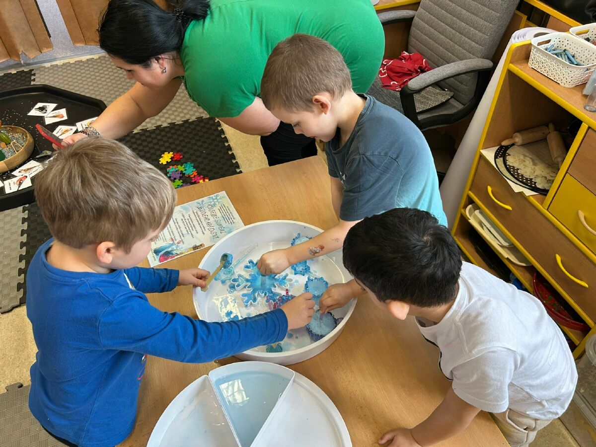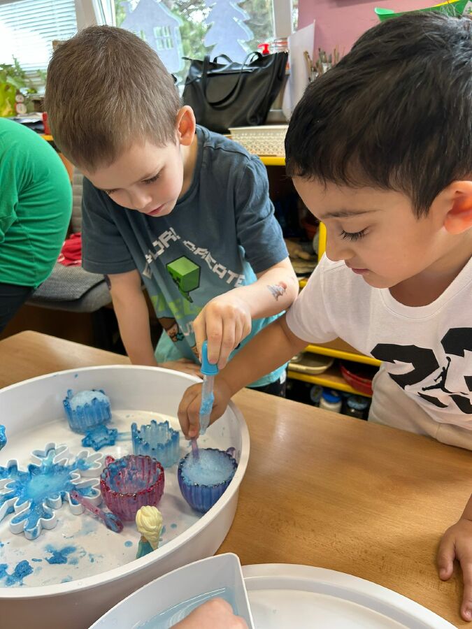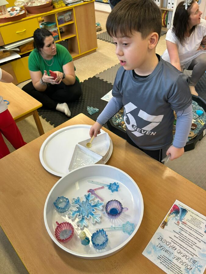 Dnes se děti ocitly v LEDOVÉM KRÁLOVSTVÍ plném senzorických her.
