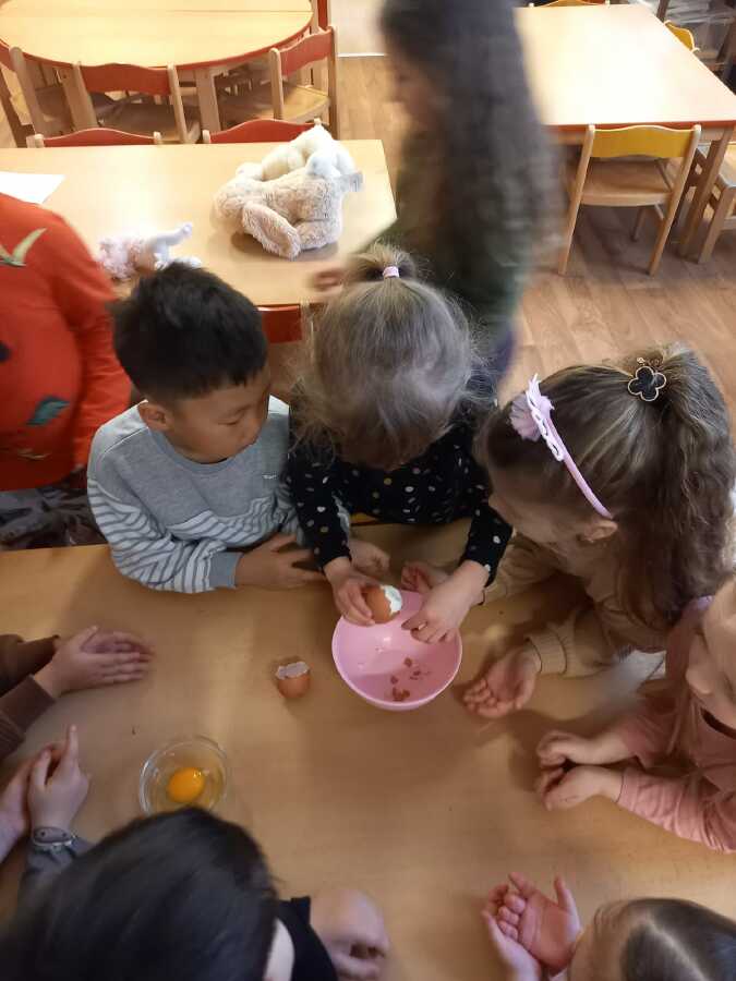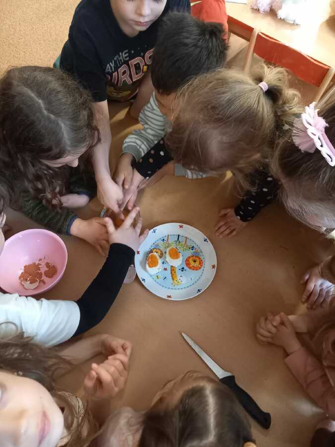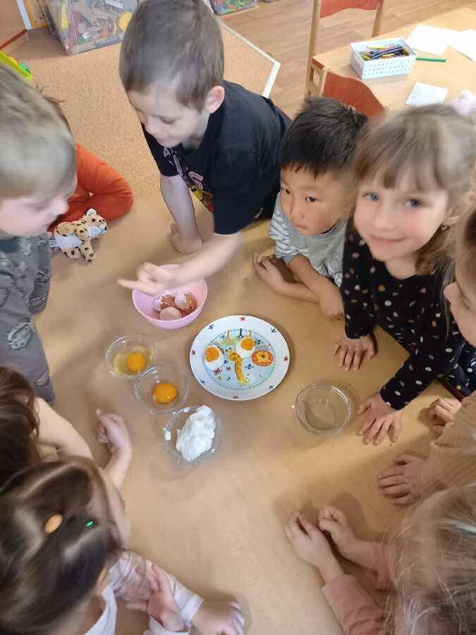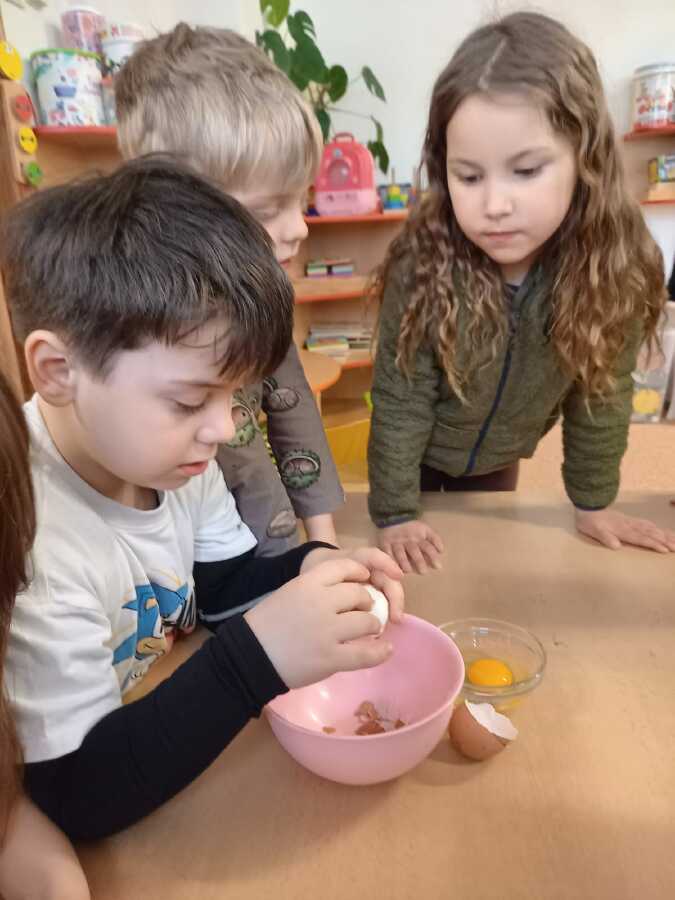 Víme, že slepičky bydlí v kurníku, že spinkají na bidýlku a snášejí vajíčka. Víme jak vypadá vajíčko syrové a uvařené, co je bílek a žloutek a představte si, že z bílků jsme udělali SNÍH!![]()