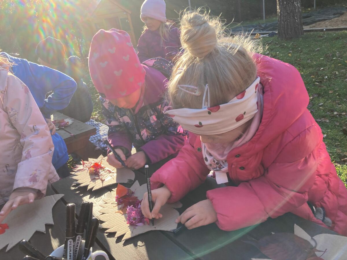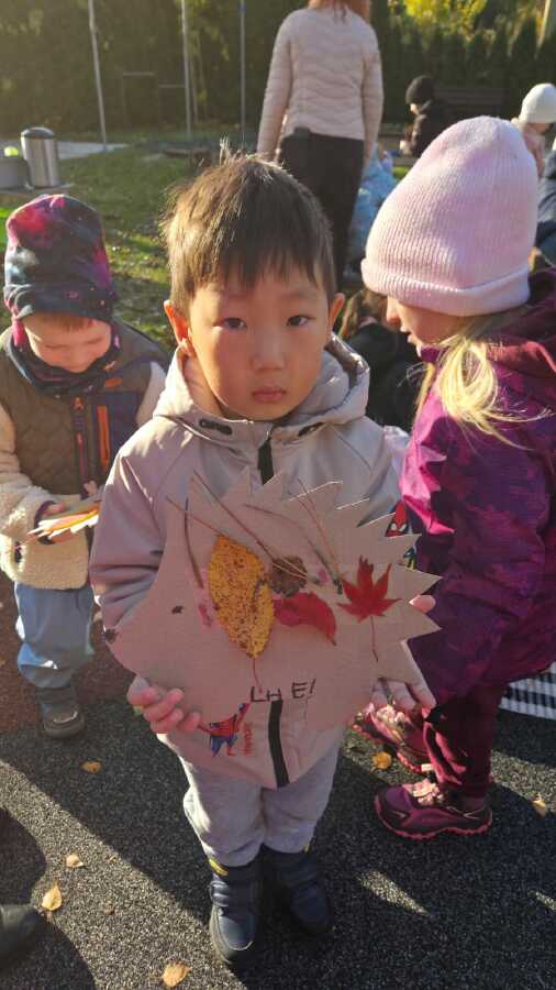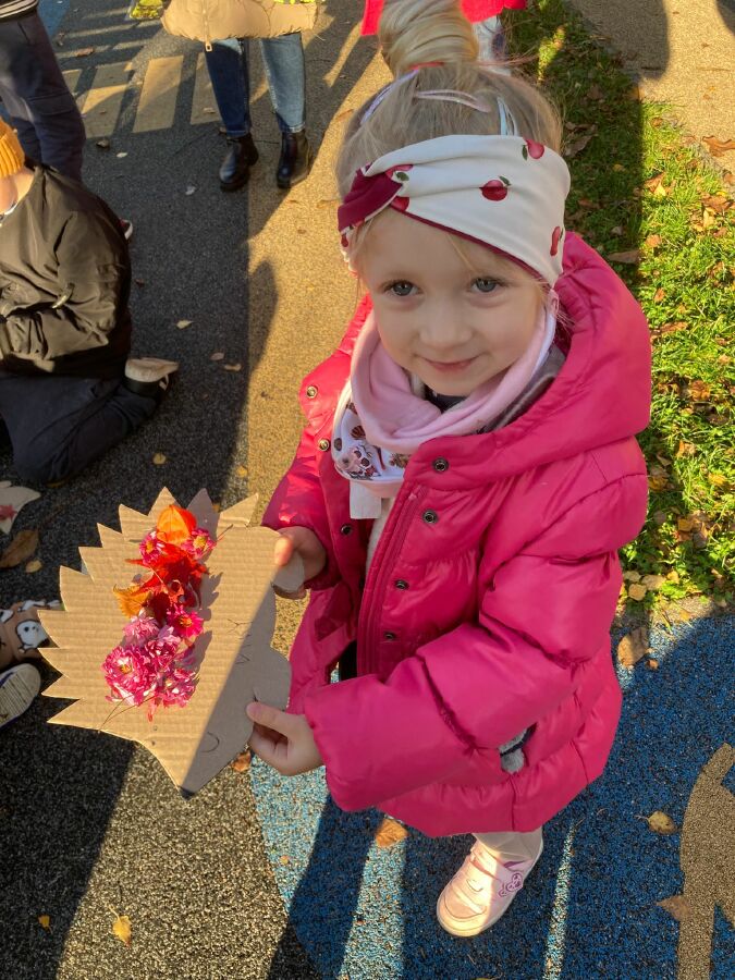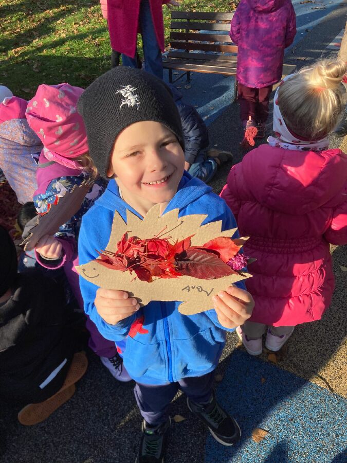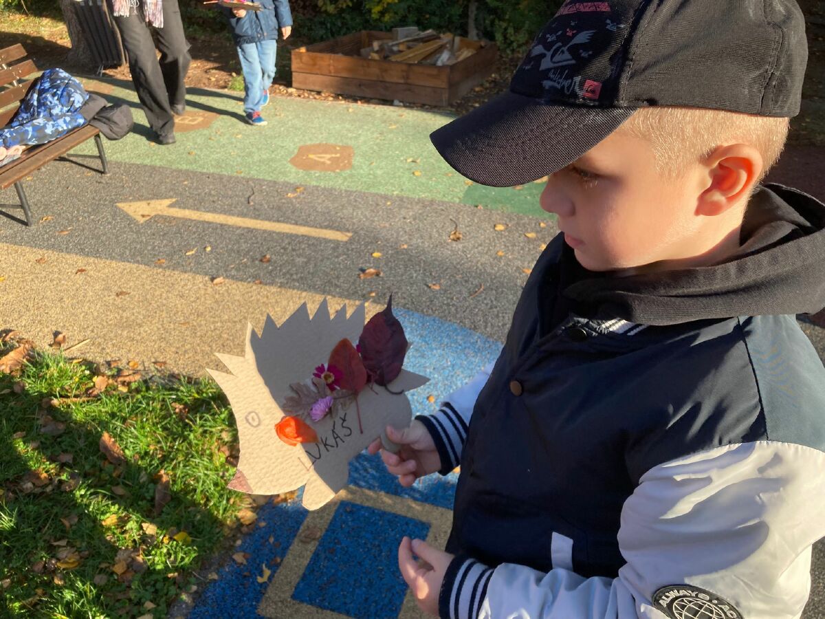 Tentokrát navštívili školáci nás- na školkové zahradě si každý ozdobil svého ježečka a vytvořil korunu z přírodnin. ![]()
