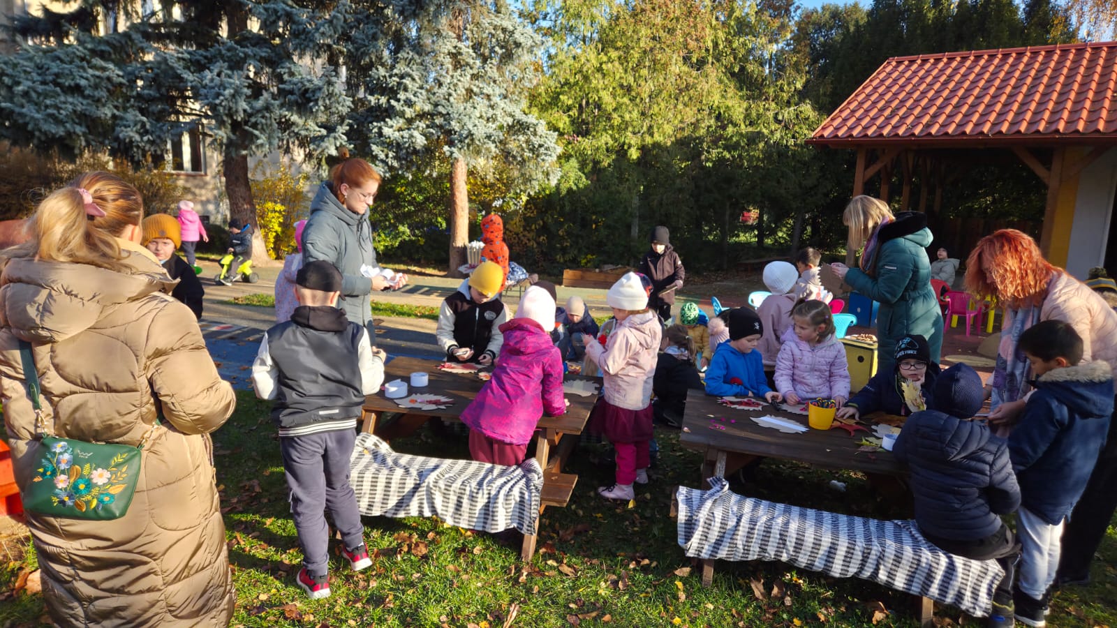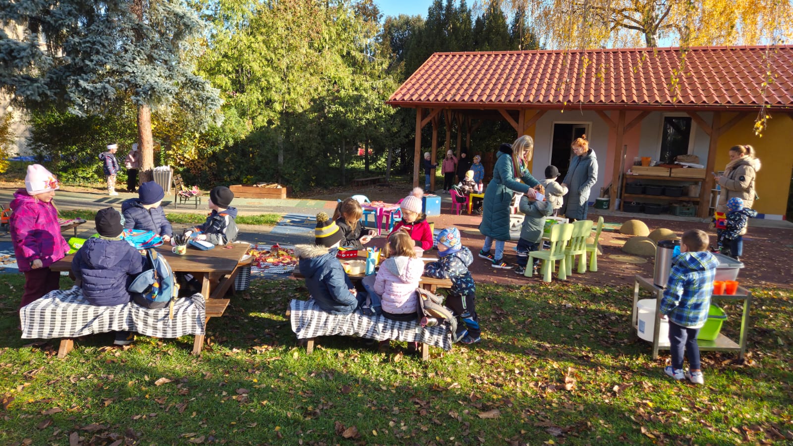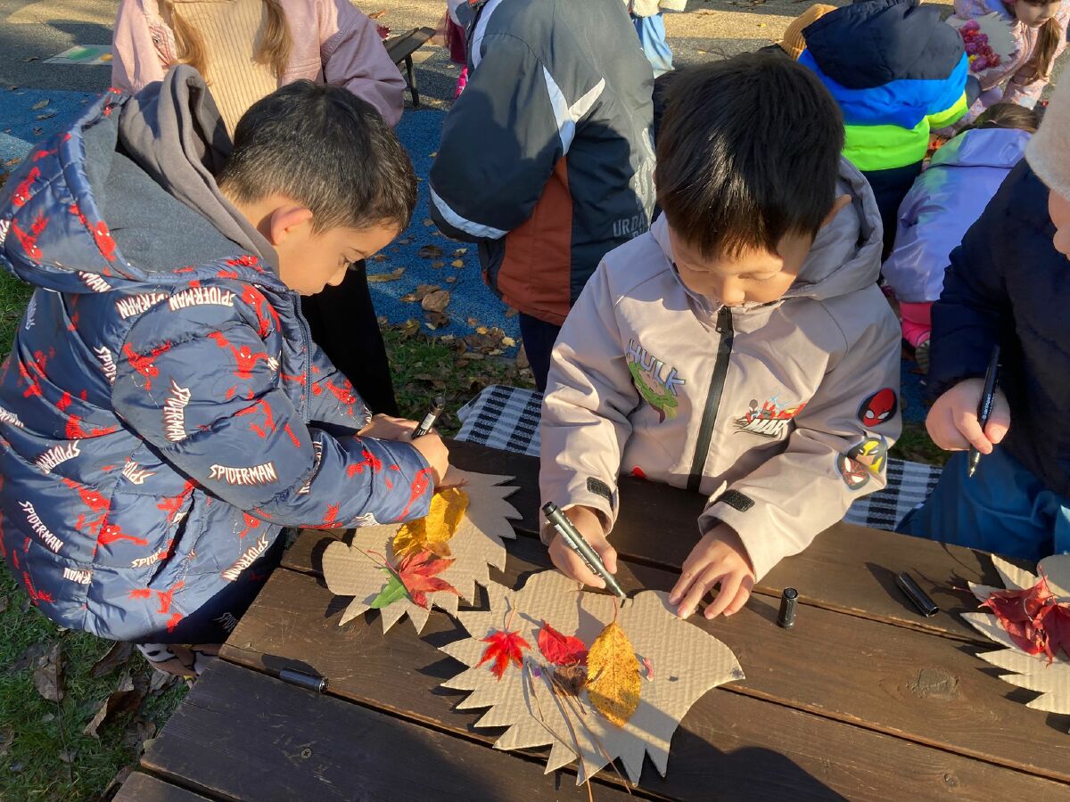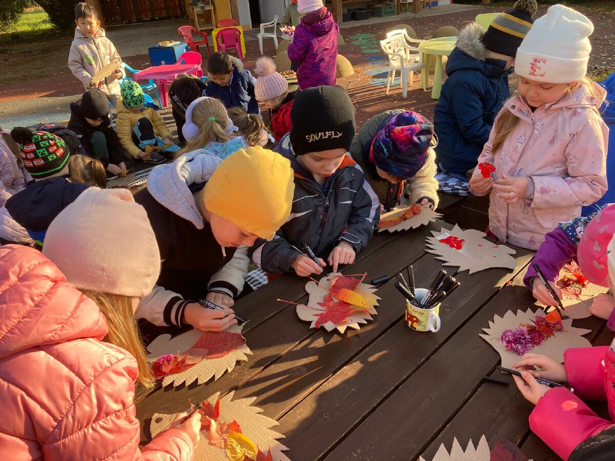 Tentokrát navštívili školáci nás- na školkové zahradě si každý ozdobil svého ježečka a vytvořil korunu z přírodnin. ![]()