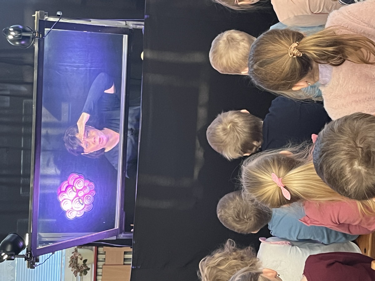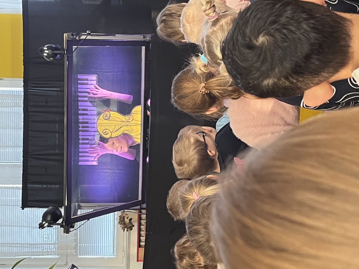 Děti viděly neobvyklé zpracování příběhu na základě magnetického divadla, které se odráží pomocí světla zrcadlovou technikou. Vyjímečný vizuální zážitek děti ocenily potleskem a na oplátku jim paní Ivanka vysvětlila princip divadla a pozvala je k prohlídce scény.