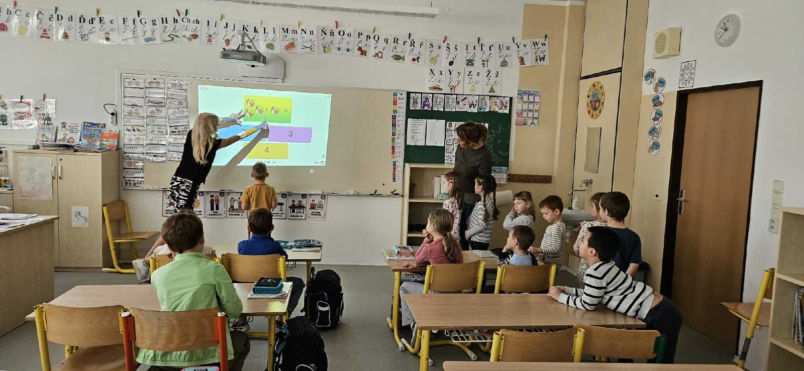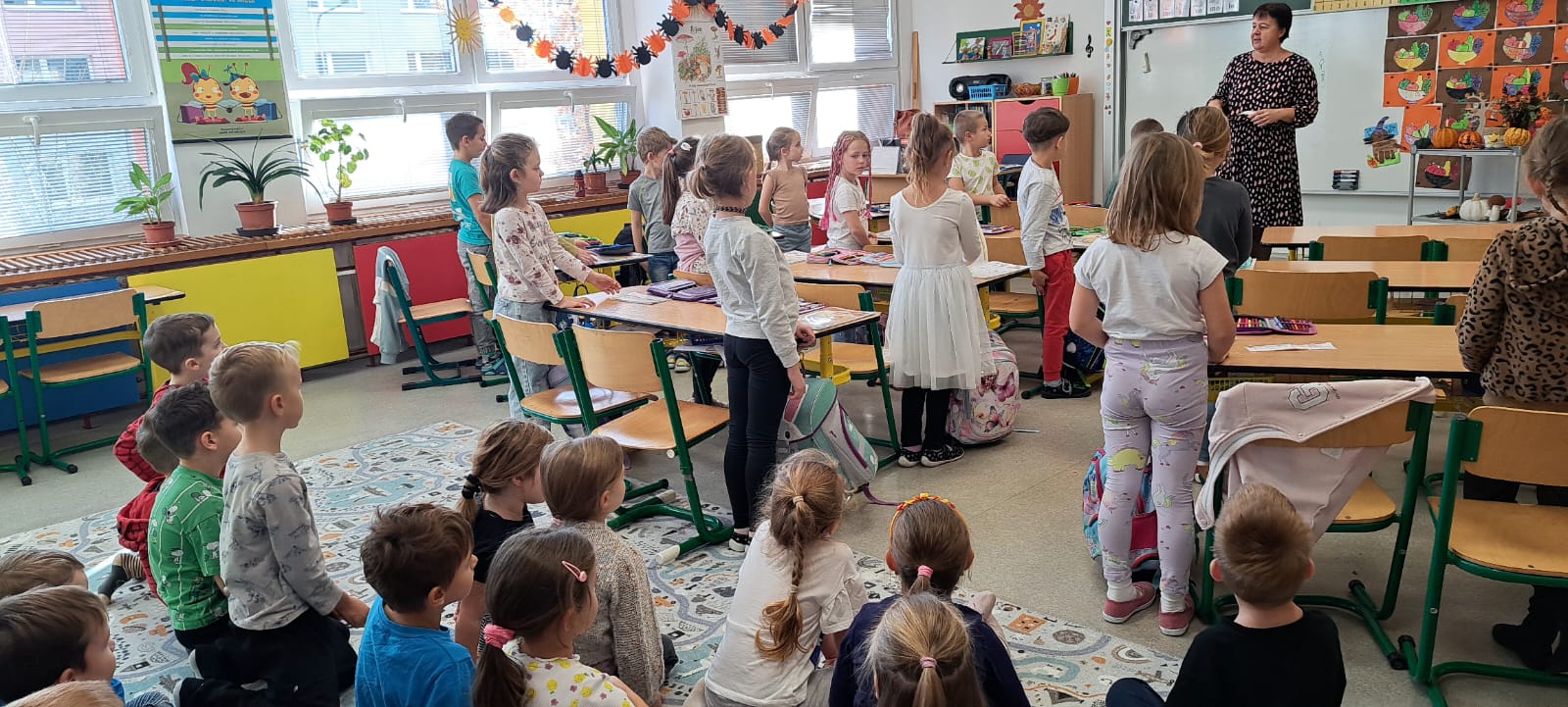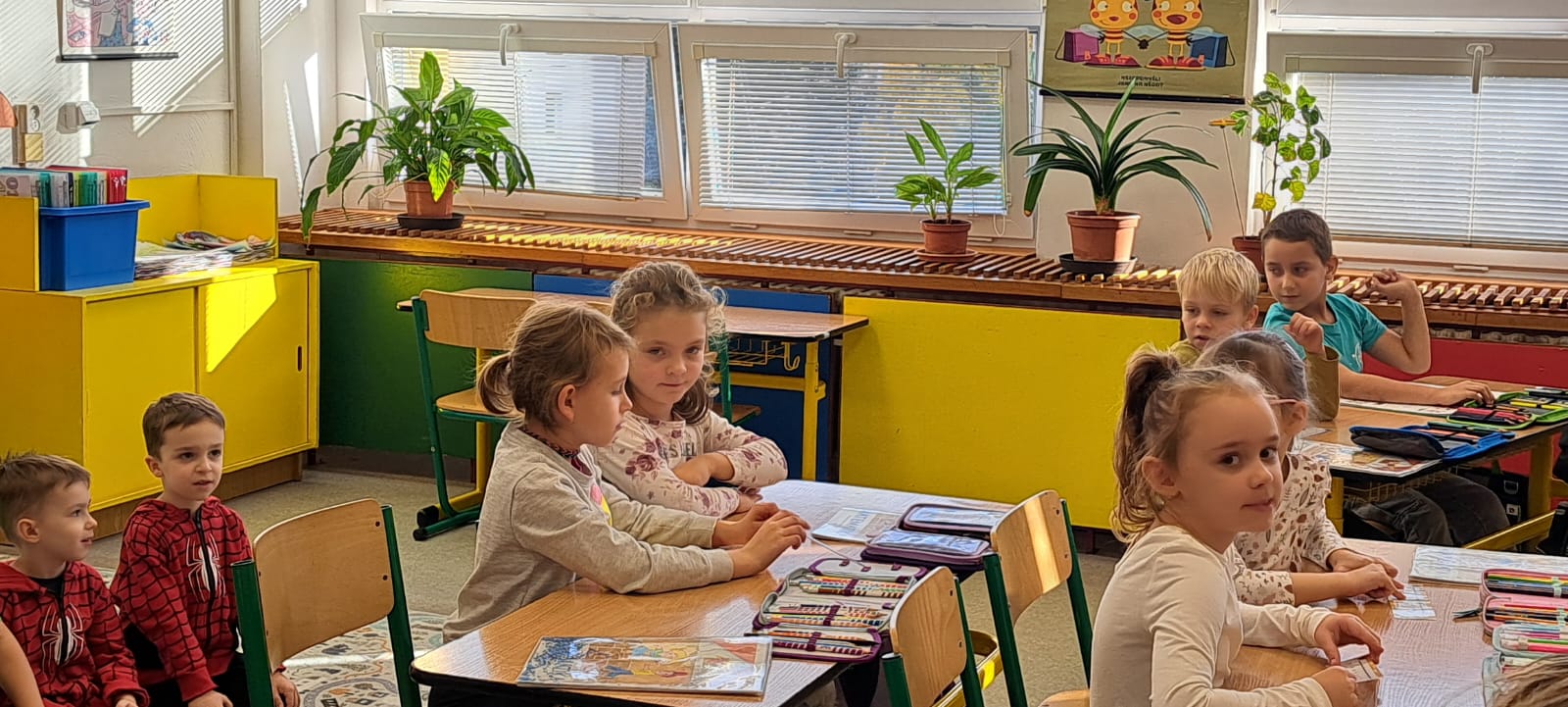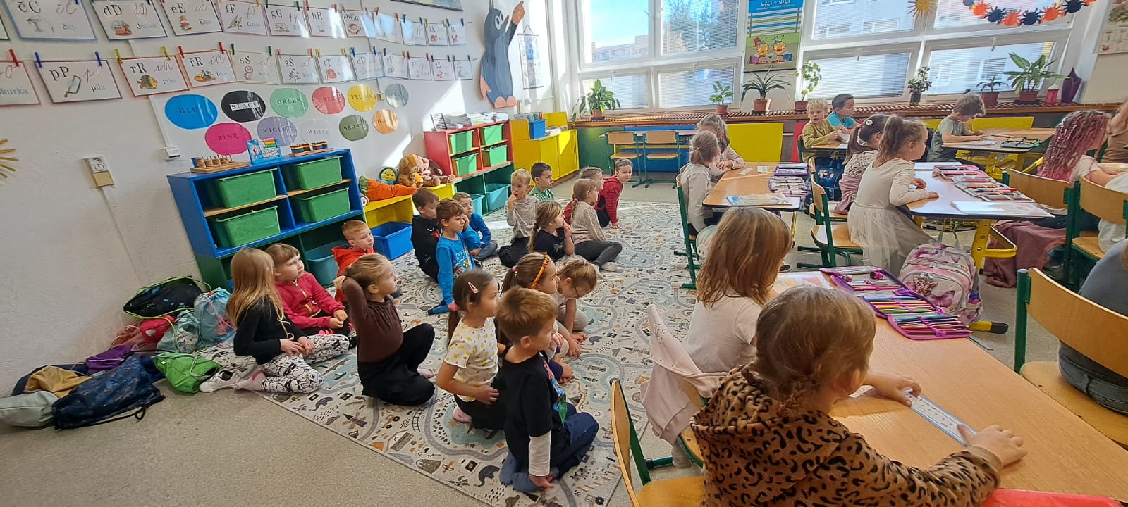V PROSTORÁCH ZŠ JANA PALACHA NÁS PŘIVÍTALA PANÍ ŘEDITELKA , ZAVEDLA NÁS DO PRVNÍCH TŘÍD. DĚTI SE PODÍVALY, JAK TO V TAKOVÉ ŠKOLE VYPADÁ. PODÍVALY SE JAK SE DĚTI VE ŠKOLE UČÍ A CVIČÍ.TAKÉ SE DĚTEM MOC LÍBÍLY ŠATNY A ZÁMEČKY NA DVEŘÍCH. DĚTI SI VYZKOUŠELY STAROBYLÉ ŠKOLNÍ LAVICE A NAVŠTÍVILY ŠKOLNÍ ZAHRADU.