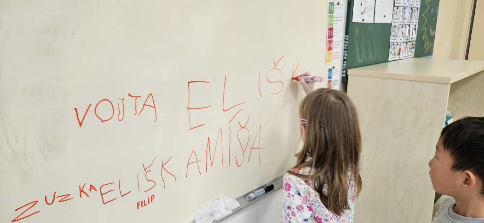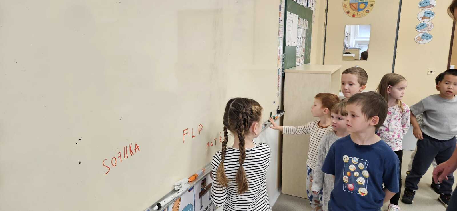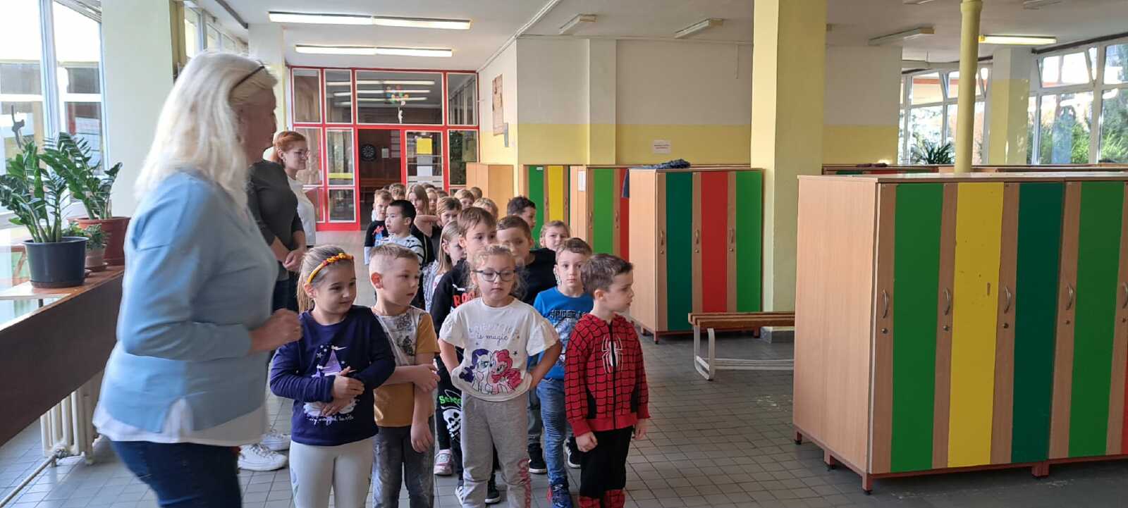 V PROSTORÁCH ZŠ JANA PALACHA NÁS PŘIVÍTALA PANÍ ŘEDITELKA , ZAVEDLA NÁS DO PRVNÍCH TŘÍD. DĚTI SE PODÍVALY, JAK TO V TAKOVÉ ŠKOLE VYPADÁ. PODÍVALY SE JAK SE DĚTI VE ŠKOLE UČÍ A CVIČÍ.TAKÉ SE DĚTEM MOC LÍBÍLY ŠATNY A ZÁMEČKY NA DVEŘÍCH. DĚTI SI VYZKOUŠELY STAROBYLÉ ŠKOLNÍ LAVICE A NAVŠTÍVILY ŠKOLNÍ ZAHRADU.