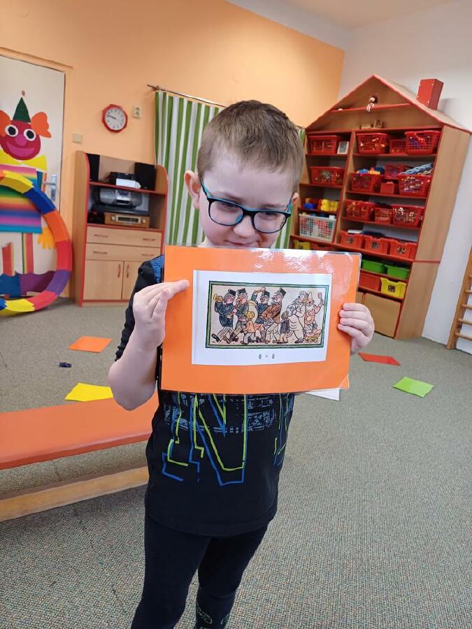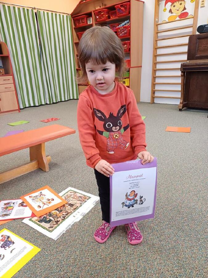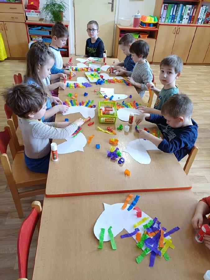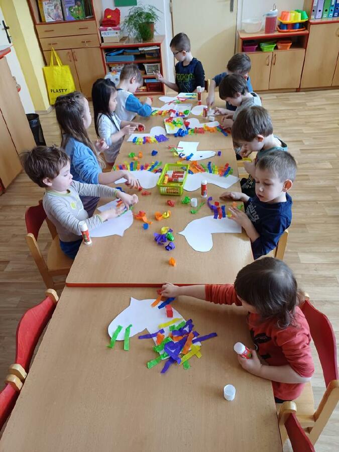 Masopust v ČERVENÉ KYTIČCE.Masopustní koník,výběr barev krepového papíru,lepení a dokreslení.Hledání masopustních masek,jejich popis.