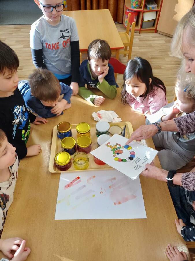 Příprava do ZŠ-barvy základní a doplňkové-pokus-jak si je můžeme vyrobit-využití barev,kolorovaná kresba.Téma-jak jdu do školy. ČERVENÁ KYTIČKA.