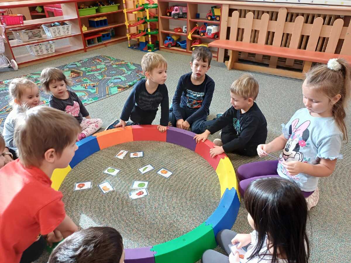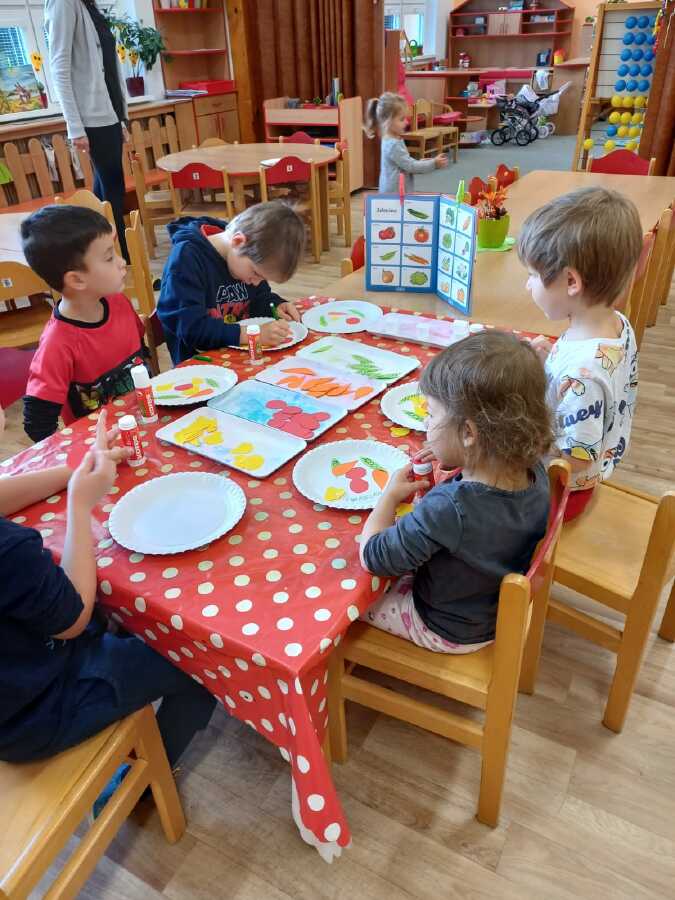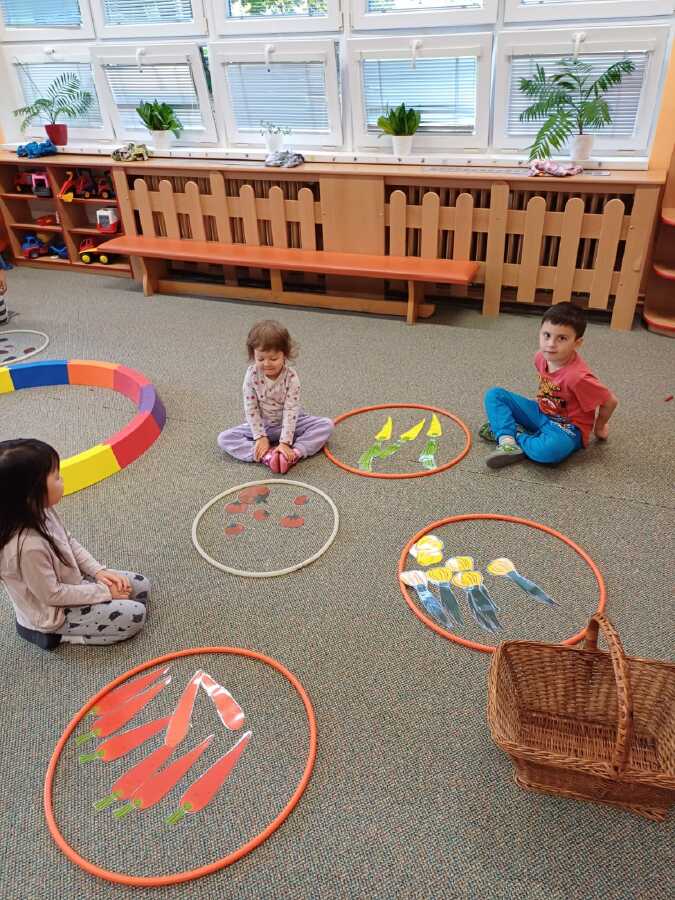 Třídění obrázků zeleniny,jmenování.Návštěva oddělení zeleniny v marketu BILLA.Poznávání a jmenování zeleniny a ovoce.Pracovní listy:Grafomotorika-horní,spodní oblouk.Hra na Orfovy nástrojky-rytmizace-