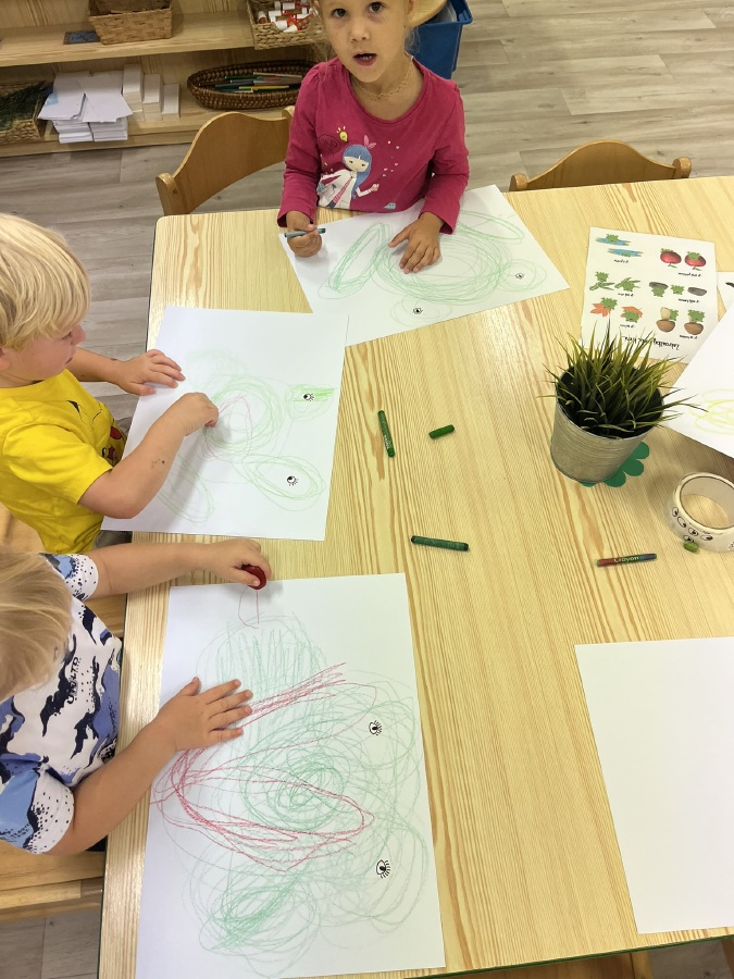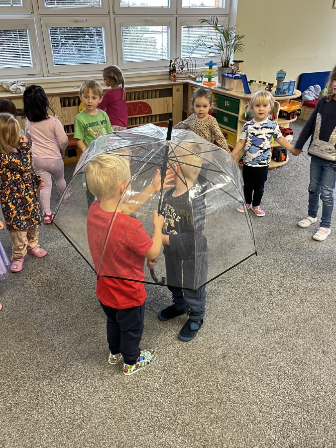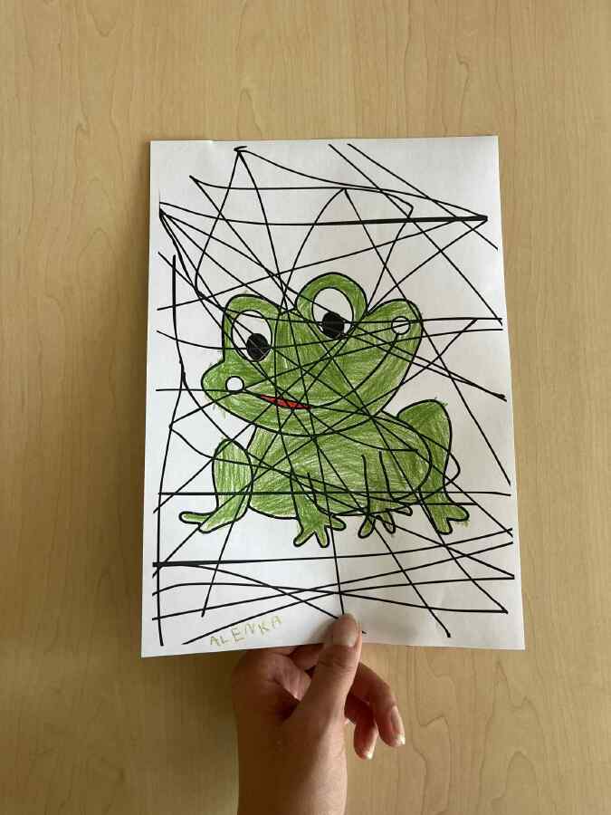 Aktivity celého společného týdne, kdy nám Medovníček představil knížku Úsměv pro žabku. Po přečtení knížky, jsme zjistili, co samotnou žabku rozveselí. Žabky jsme vytvořili z papíru, předškoláci úplně celou samostatně a menším dětem se taky velmi dařilo, trhaly a lepily papír a podařilo se i díky pozorování žabek, (obrázky :-)) nalepit oči na správné místo. Sluchem jsme poznávali, které kamínky, se kterými se žabka hraje, patří k sobě (sluchové pexeso) a zahráli jsme si hudební hru s dešťovou písničkou. Cvičili jsme s lekníny, vybarvovali a přiřazovali zvířátka ve dne a jejich stíny v noci. Předškoláci si vyzkoušeli vybarvování podle bodů nebo zrakem najít žabku schovanou v čarách a taky předložkový diktát s žabkami. Všechny bavila grafomotorika, kdy jsme z velkých kruhů vytvořili žábu. A co že žabku rozveselilo? Zeptejte se dětí, schválně, jestli si to zapamatovaly.