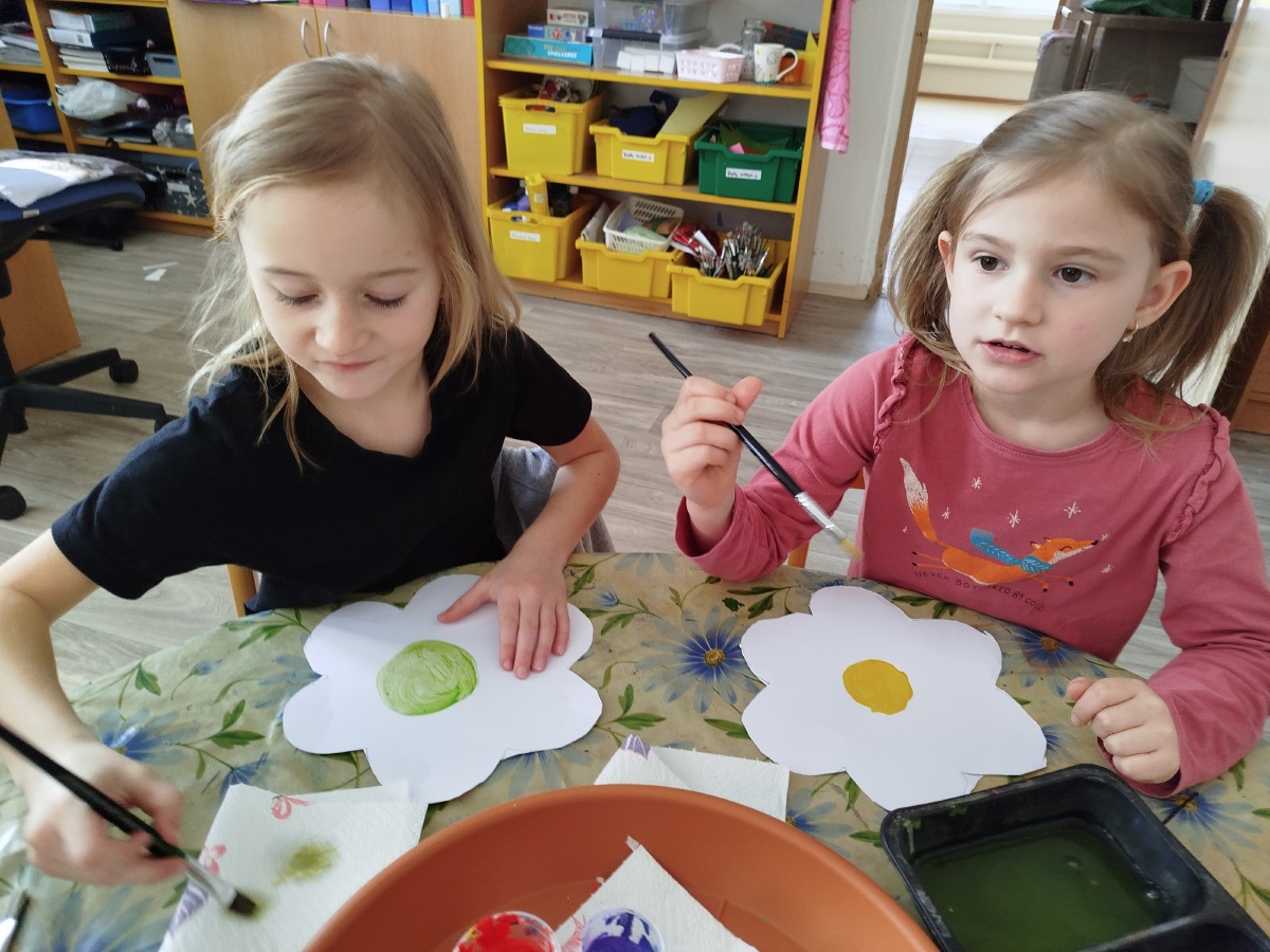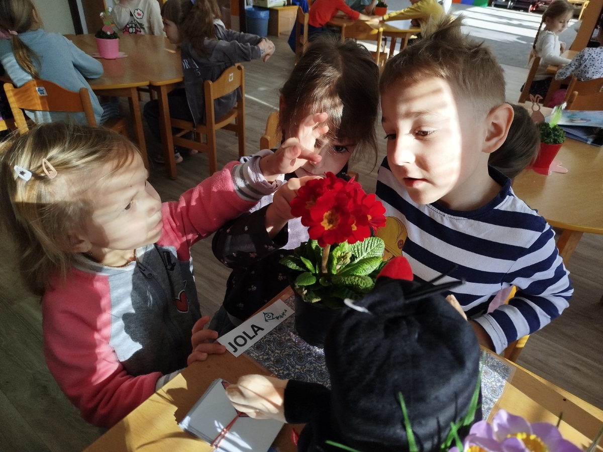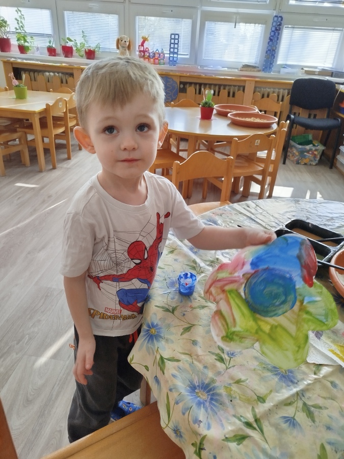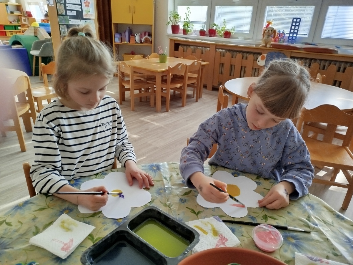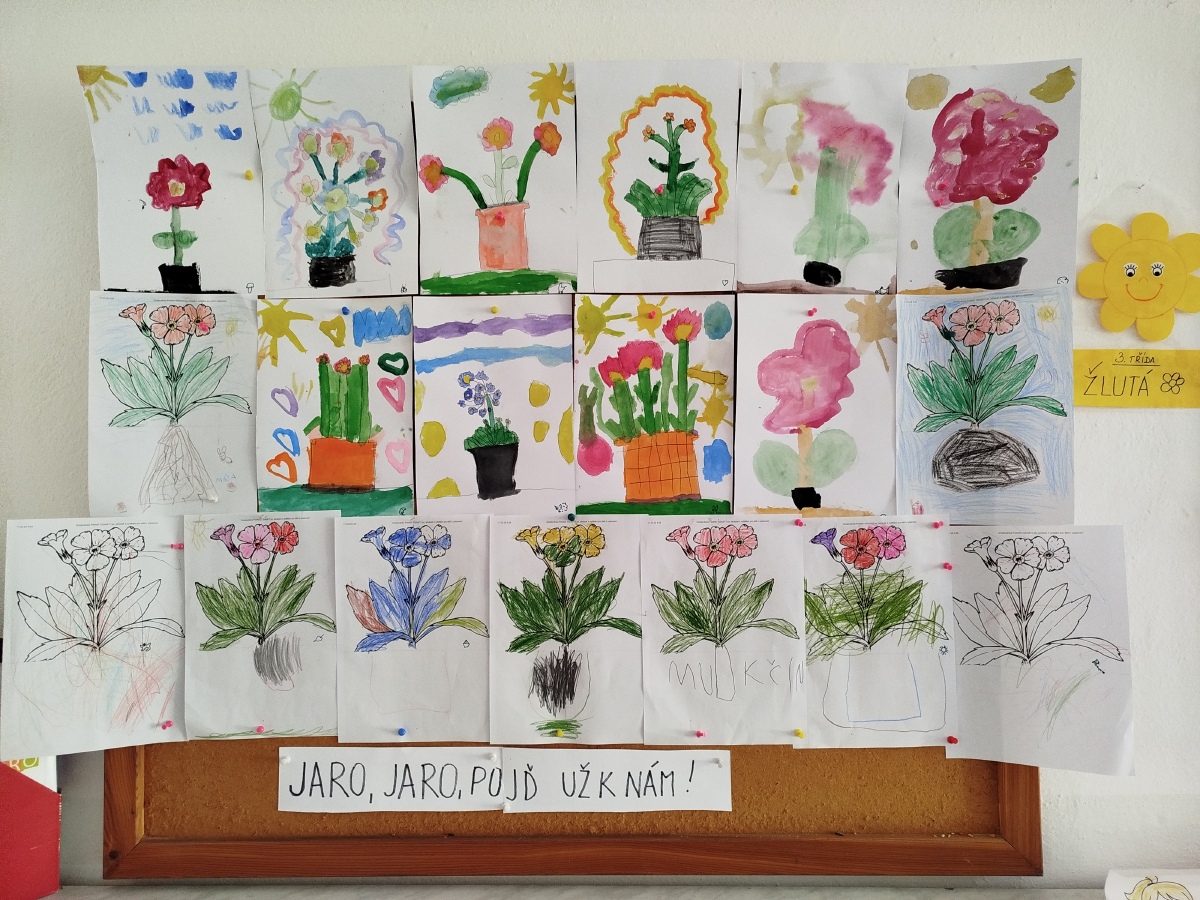 My, Žluťásci, jsme přivolávali jaro říkankami a malováním petrklíčů a barevných kytiček. Barevné kytičky jsme využili na výzdobu. JARO, JARO, POJĎ UŽ K NÁM!