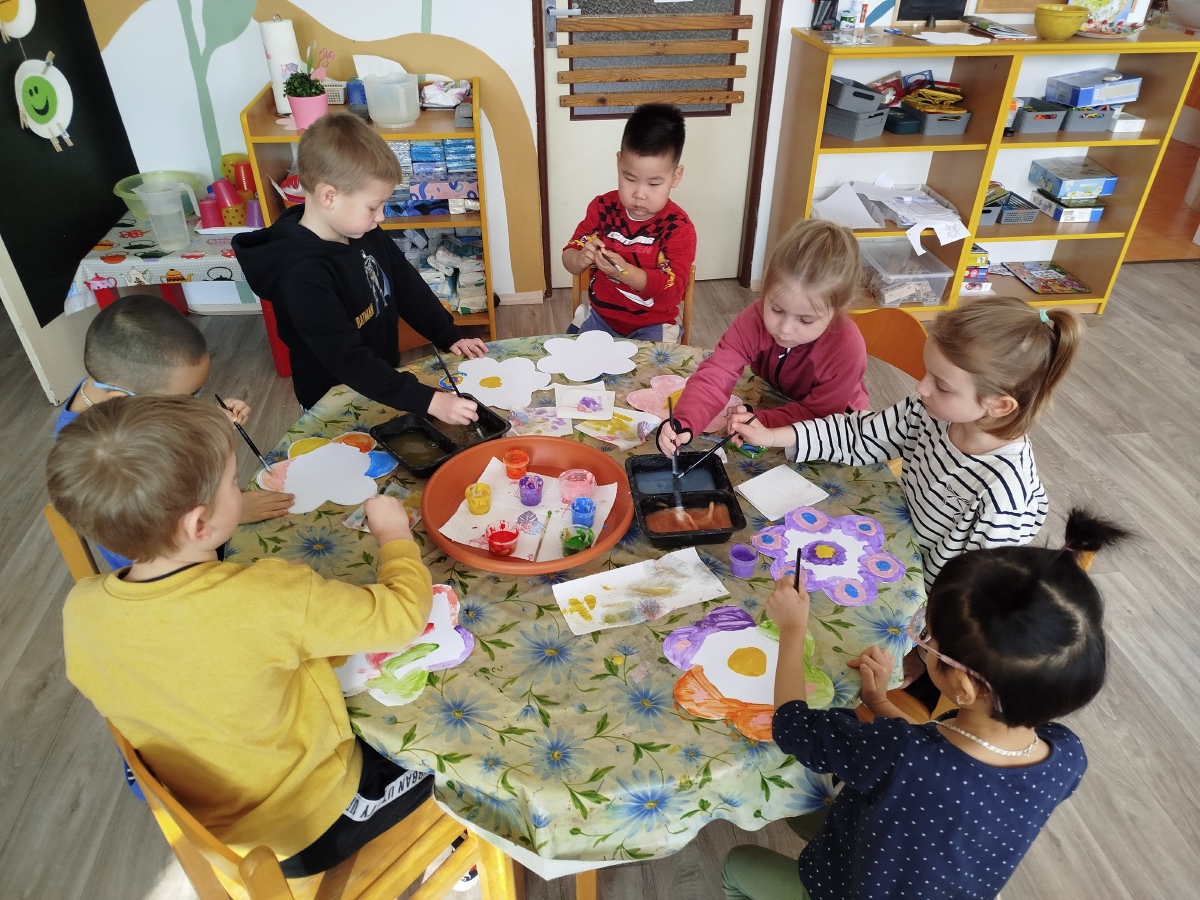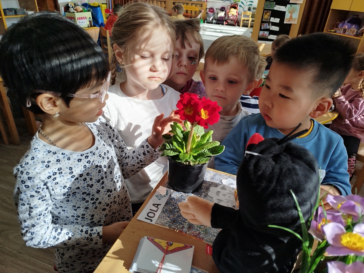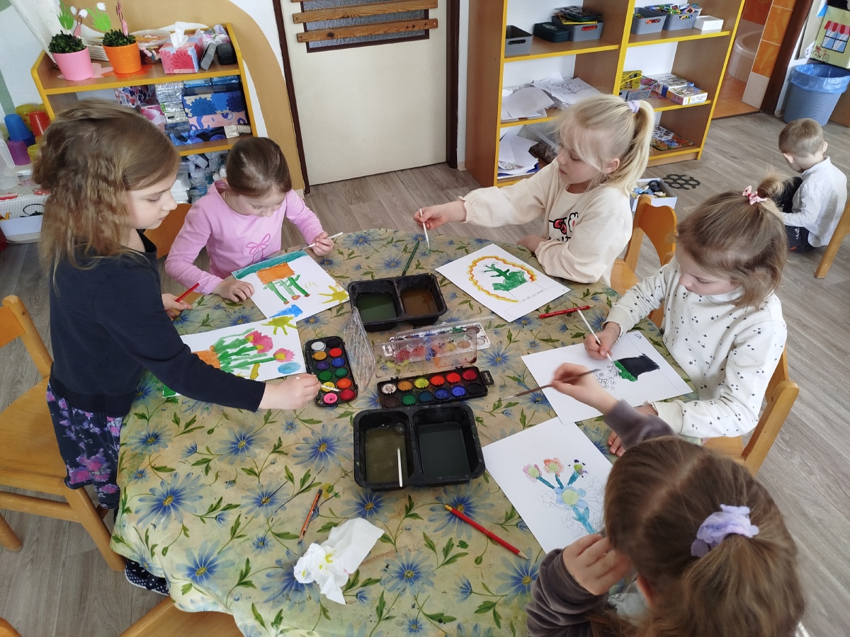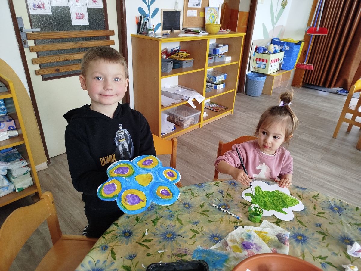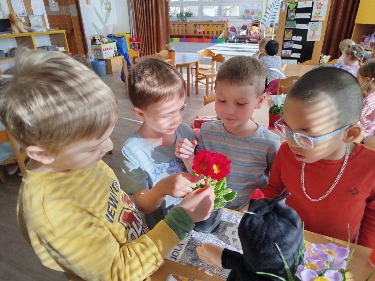 My, Žluťásci, jsme přivolávali jaro říkankami a malováním petrklíčů a barevných kytiček. Barevné kytičky jsme využili na výzdobu. JARO, JARO, POJĎ UŽ K NÁM!