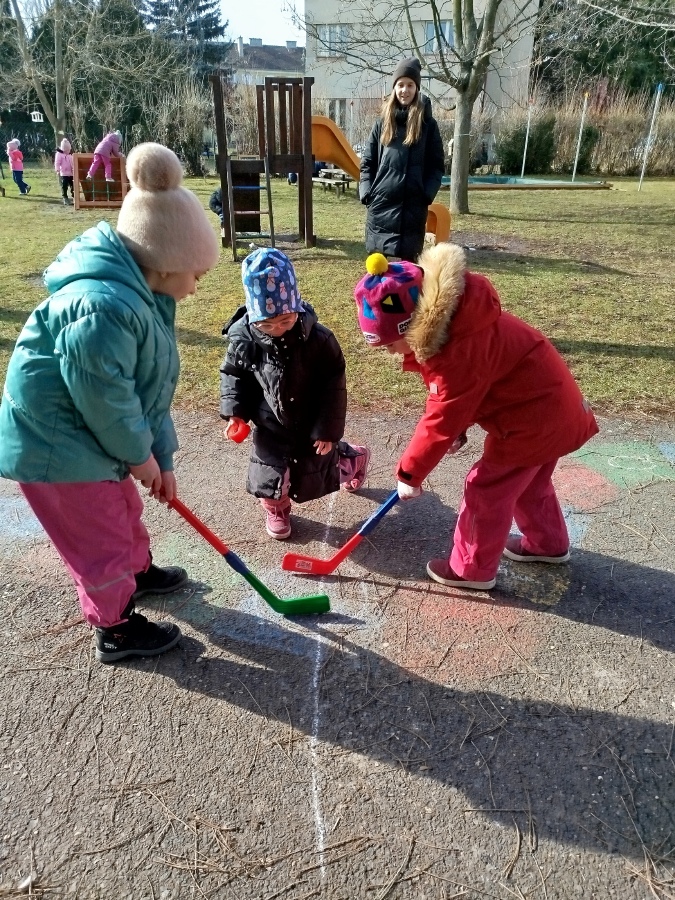 My, Žluťásci, rádi sportujeme. Moc se nám líbí hokej. Zahráli jsme si ho ve třídě i na zahradě a fandili jsme našim hokejistům na olympiádě. Také jsme tvořili hokejistu - procvičili jsme si pečlivé vybarvování, vystřihování, nalepování i grafomotoriku. Moc jsme si to společně užili. Ať žije hokéééééj! :))