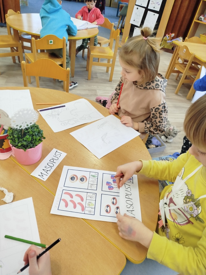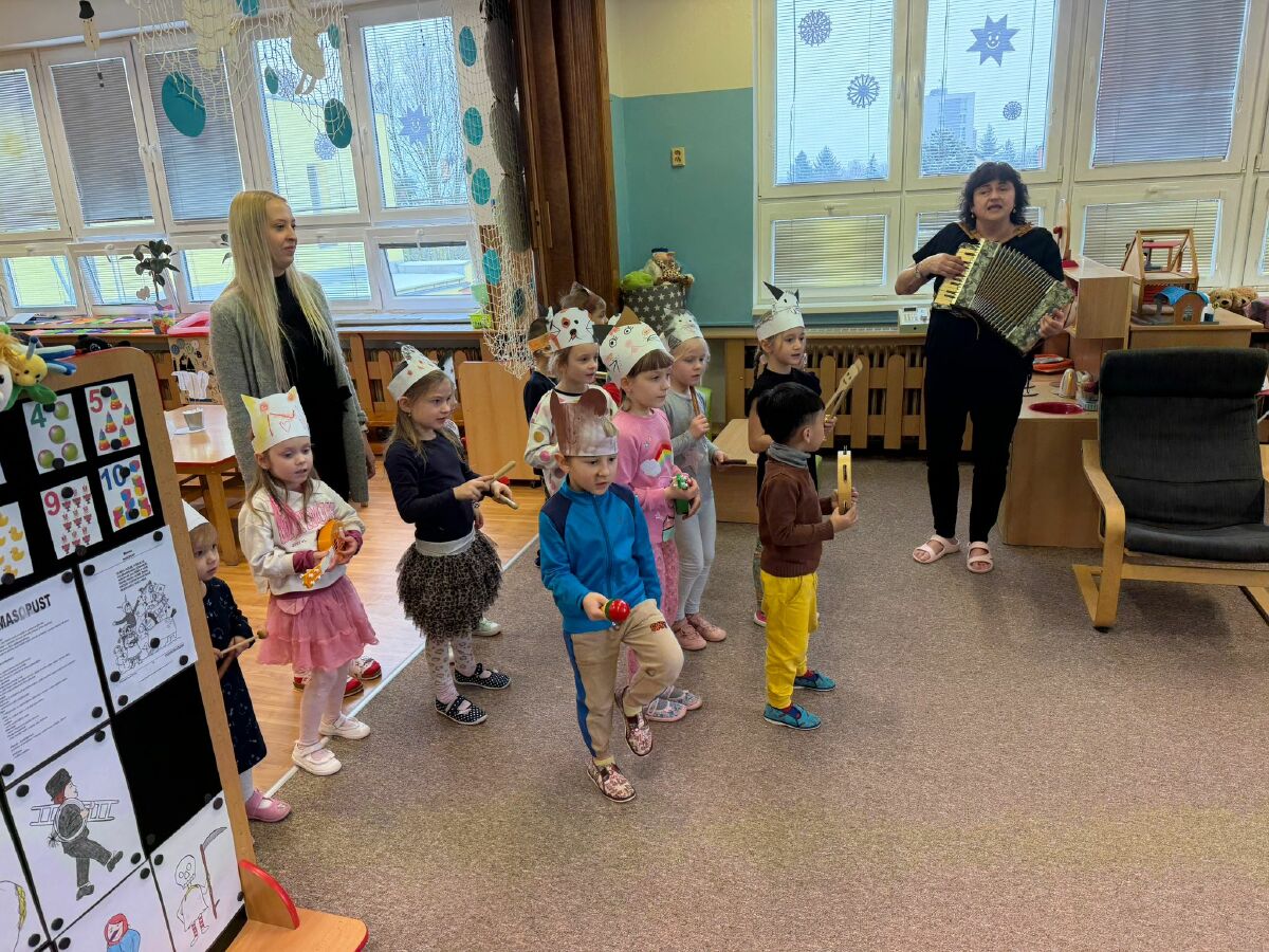 Žluťáskové se moc těšili na svůj masopustní průvod po školce. Kreslily, omalovávali a tvořili masky. Poté se vydali se zpěvem, za doprovodu harmoniky a dětských nástrojků, do jednotlivých tříd. Zazpívali, zahráli a všem popřáli vše nejlepší :))