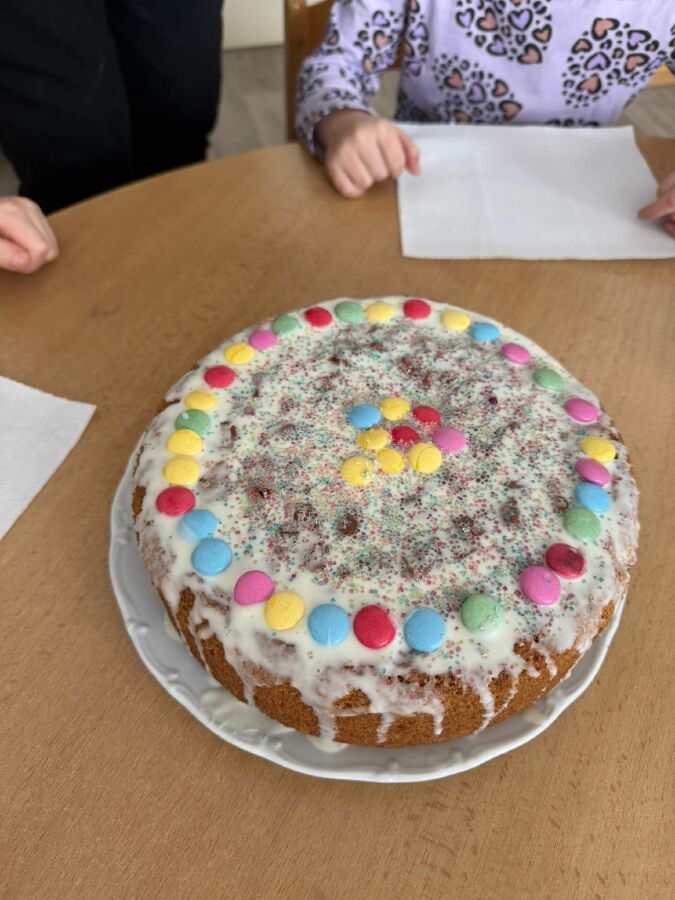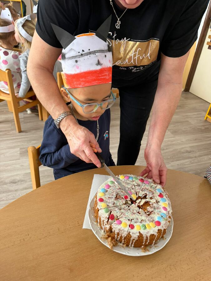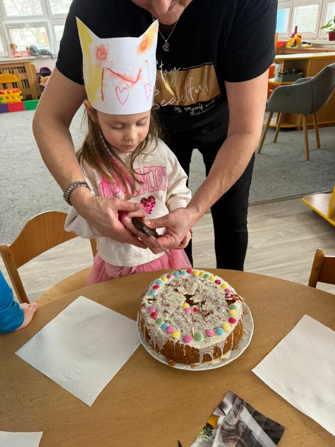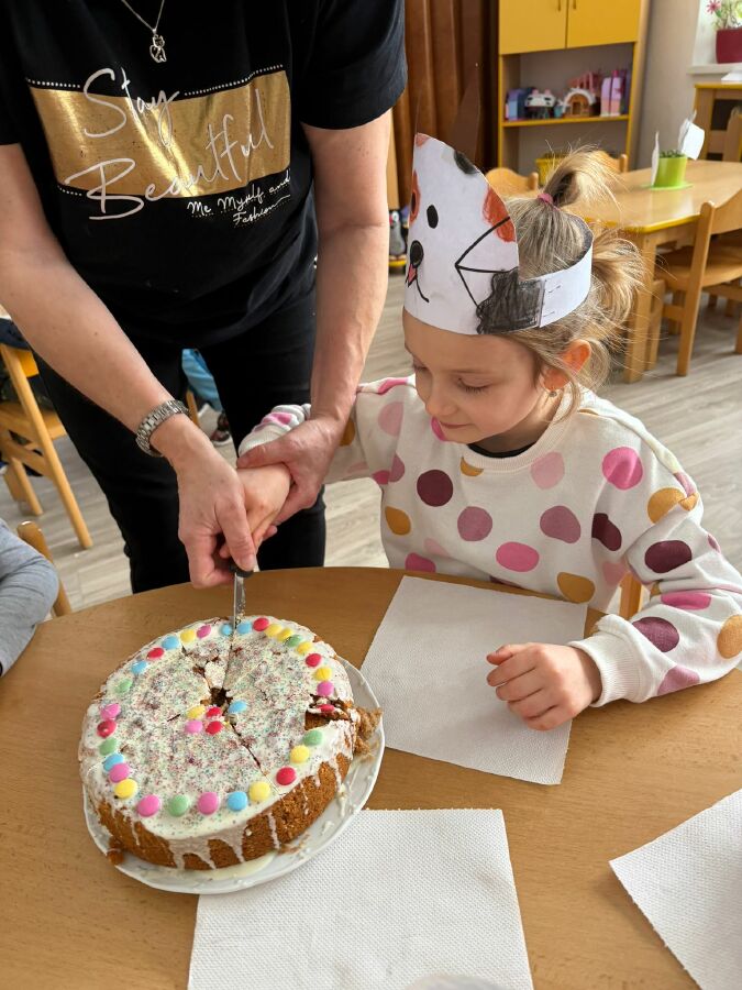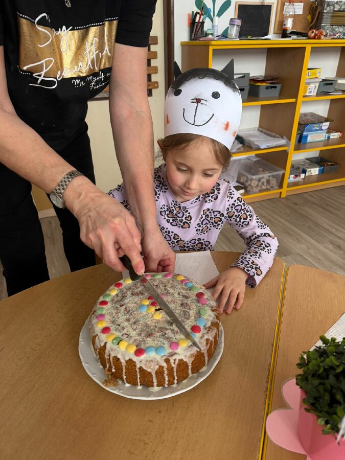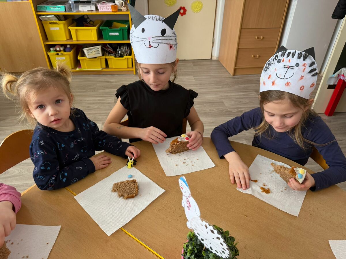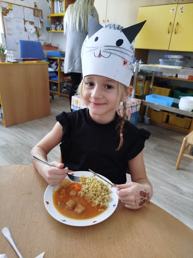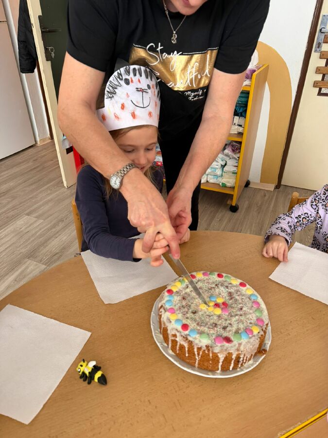 Masopustní úterý začalo u nás ve Žluté kytičce pečením masopustního dortu z perníkového těsta. Všichni jsme se podíleli na jeho výrobě. Poznávali jsme suroviny nejen podle zraku, ale i podle vůně. Jsme moc šikovní, paní učitelka nám skoro vůbec nemusela pomáhat. Dort se mám povedl, voněl na celý pavilon. Polili jsme ho bílou čokoládou a ozdobili lentilkami a sypáním. Snědli jsme ho celý, nezbyl ani drobeček. Se stejnou chutí jsme nakonec snědli i oběd. MŇAM!