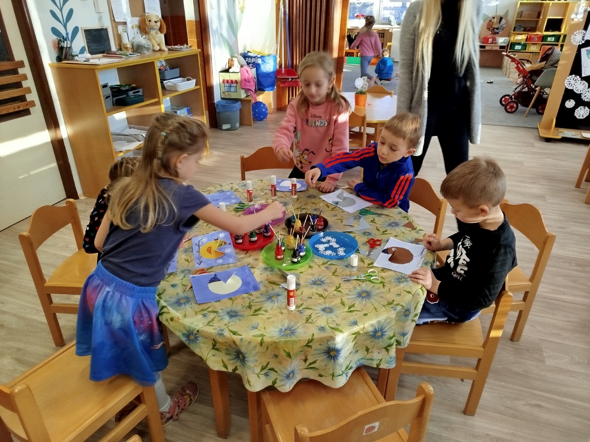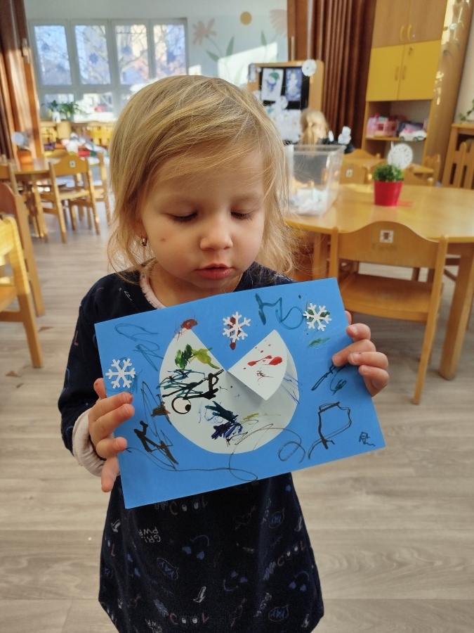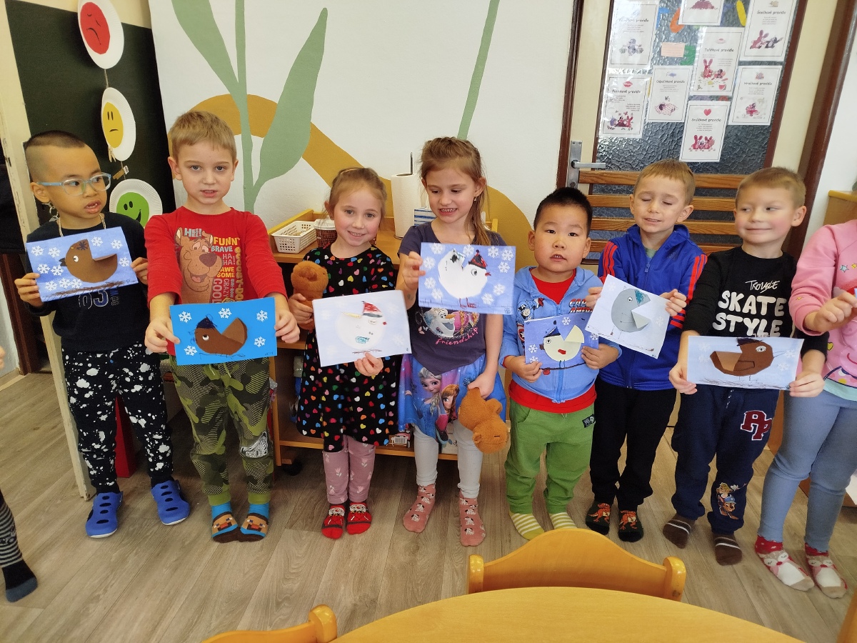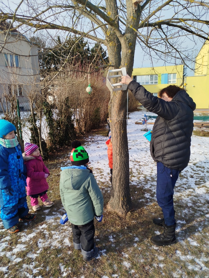 My Žluťáskové máme ve školce na zahradě svůj ptačí strom. Je na něm ptačí budka a krmítko. Teď v zimě každý den krmíme ptáčky slunečnicovými semínky. A protože máme ptáčky rádi a líbí se nám, vytvořili jsme obrázky ptáčka v zimě :))