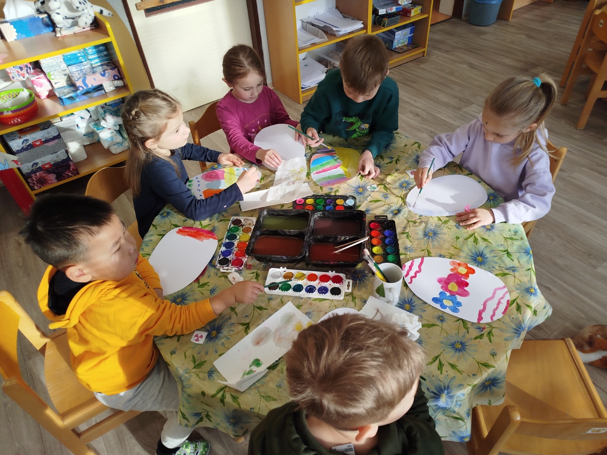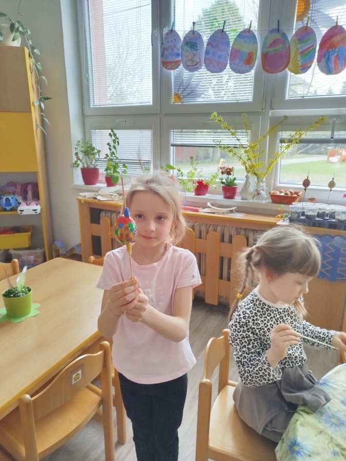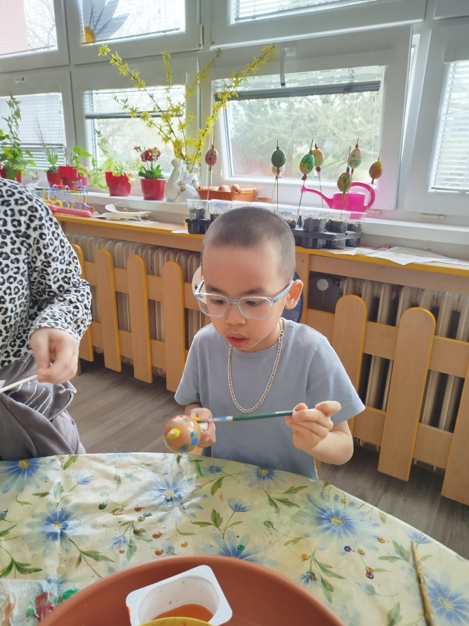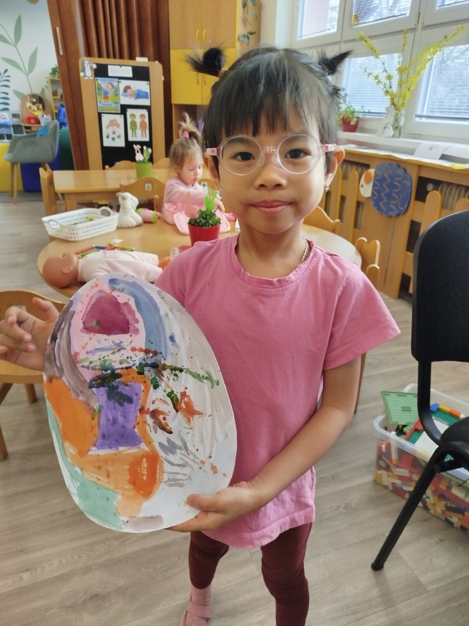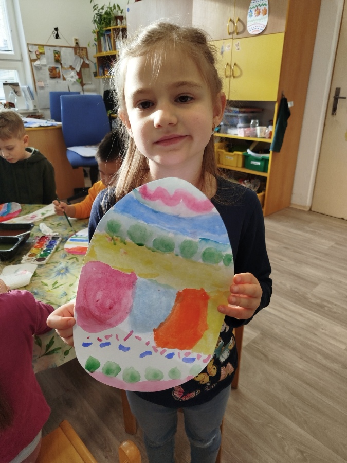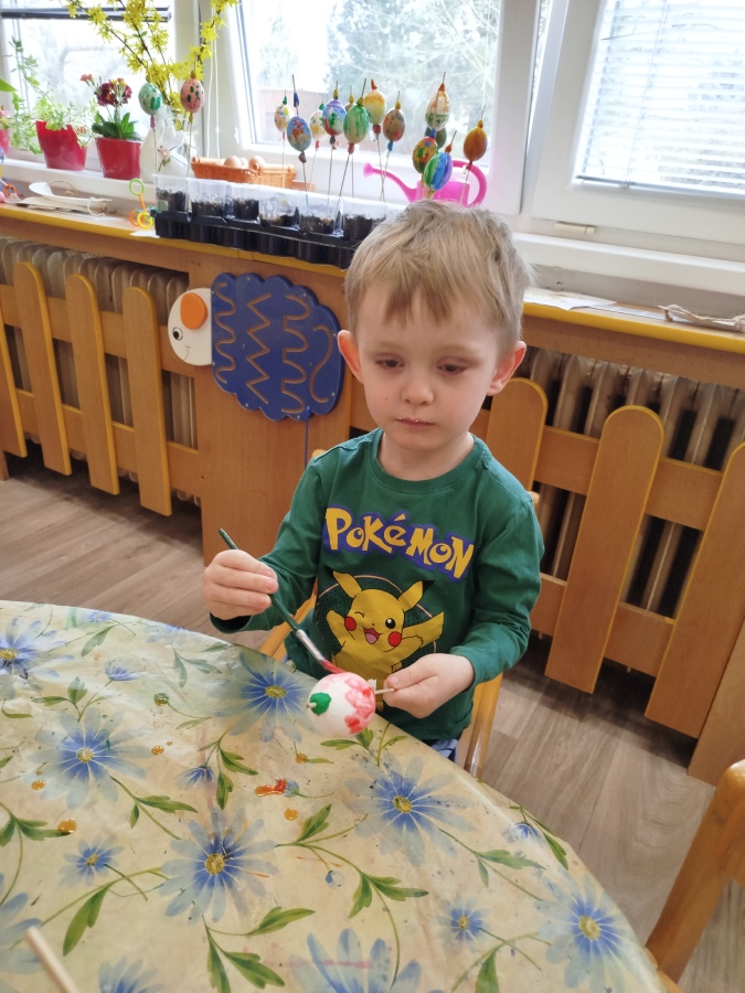 Už minulý týden jsme malovali vodovkami velikonoční vajíčka na výzdobu třídy. Také jsme si sami zaseli osení. Kraslice jsme tentokrát malovali temperovými barvami do klovatiny.