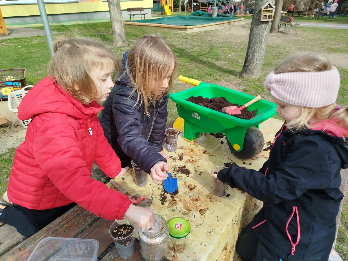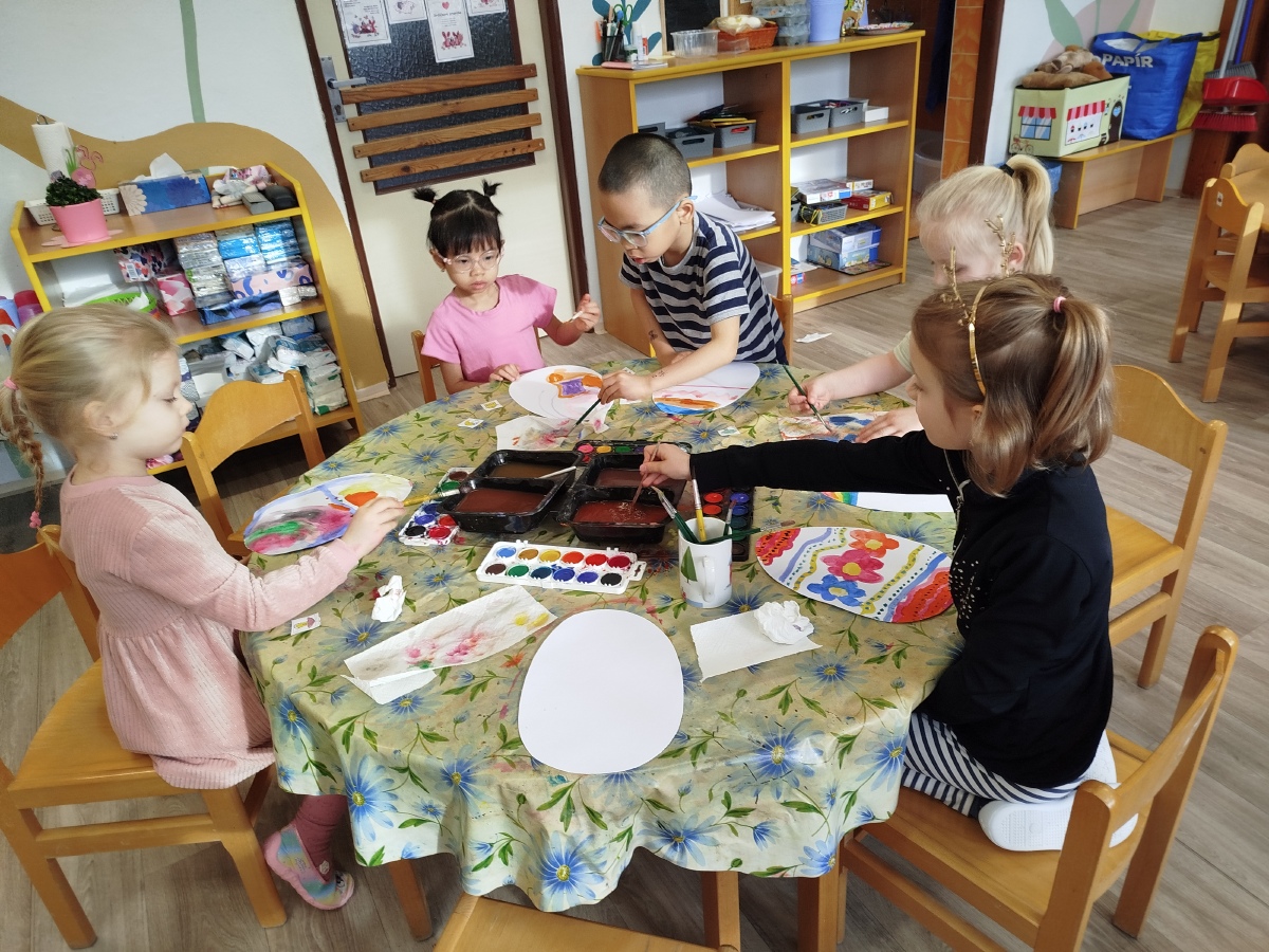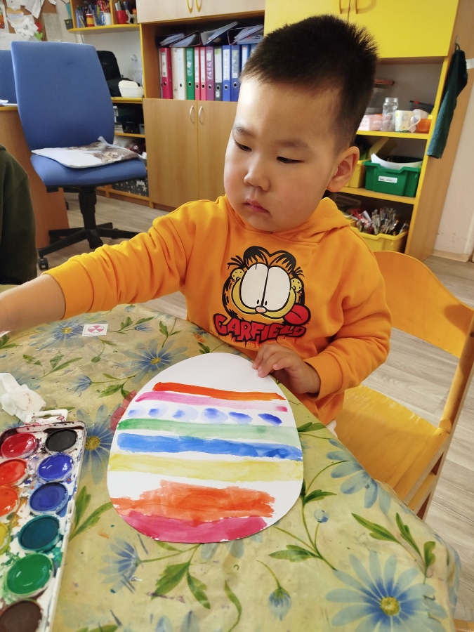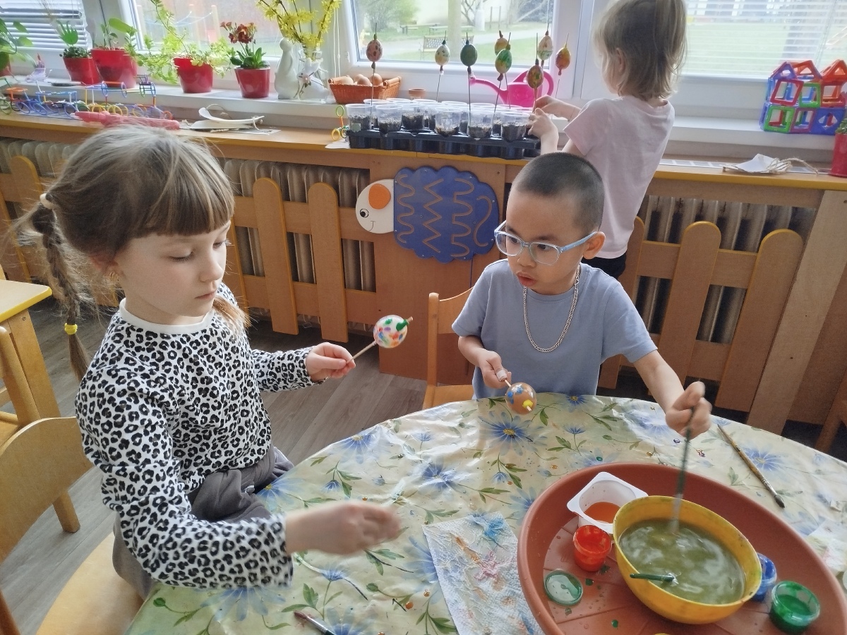 Už minulý týden jsme malovali vodovkami velikonoční vajíčka na výzdobu třídy. Také jsme si sami zaseli osení. Kraslice jsme tentokrát malovali temperovými barvami do klovatiny.