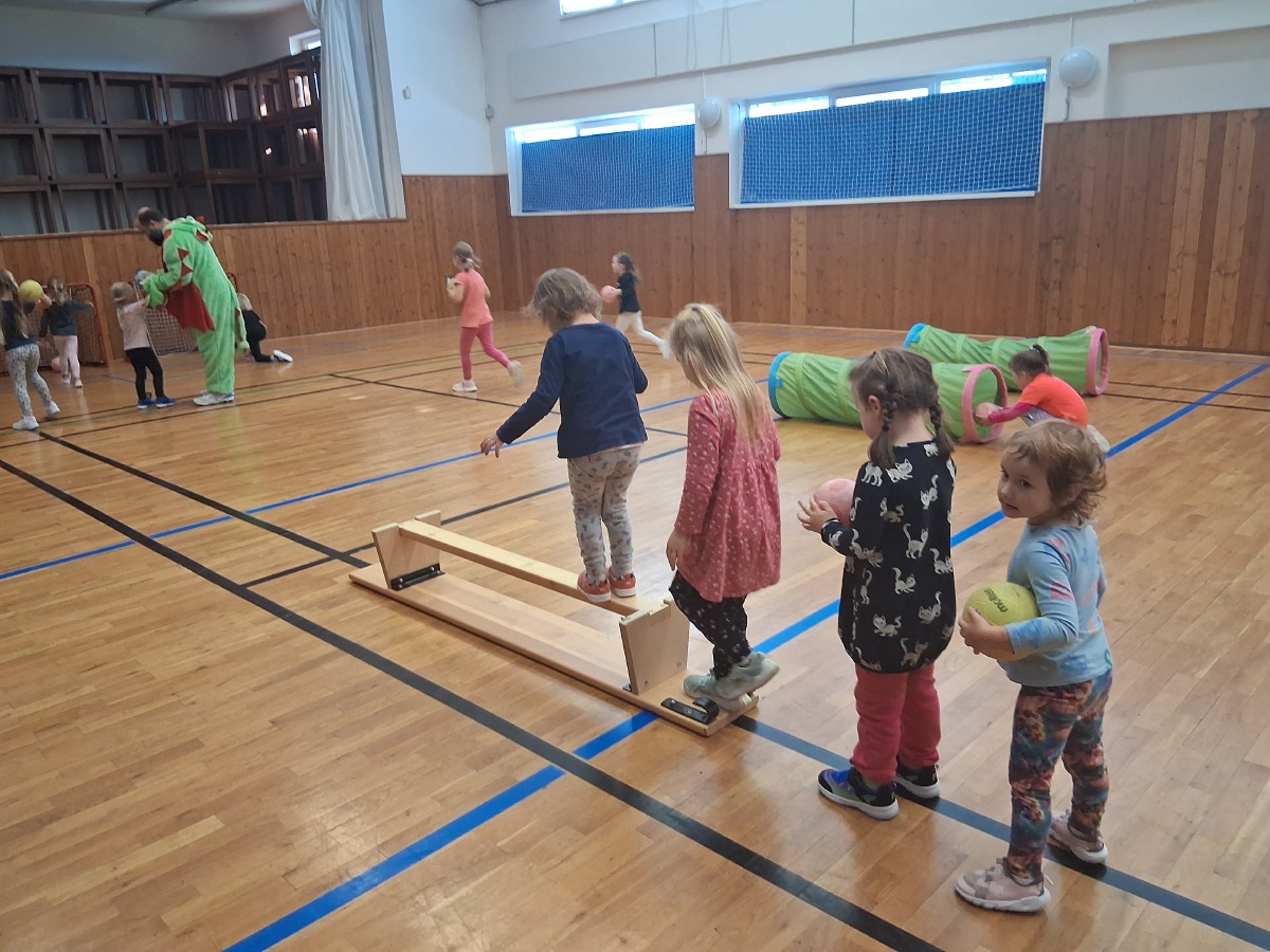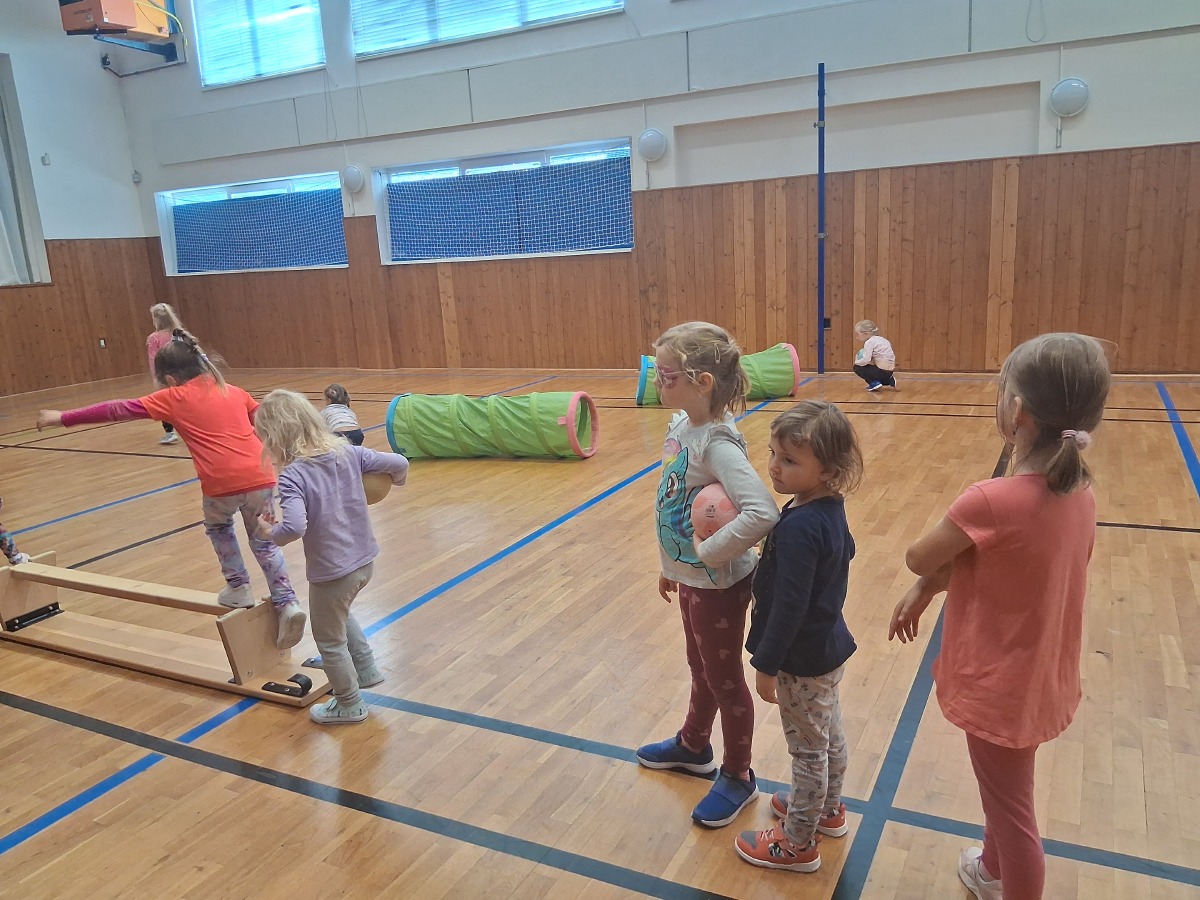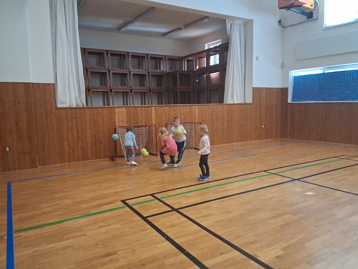 Čekaly nás pohybové a míčové hry, nácvik hodu míčem a střelba na cíl.