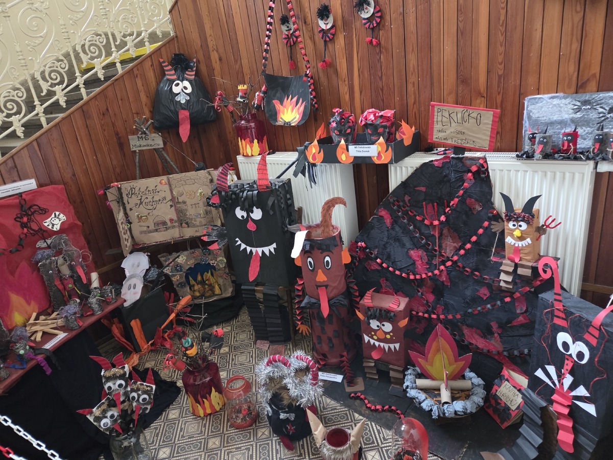 V pátek jsme se vypravili do Domova dětí a mládeže Kutná Hora, kde na nás čekaly zajímavé aktivity - viděli jsme čertí školu, pekelnou kuchyň, pracovnu pana Lucifera, vyrobili jsme si čertovskou hru a vyzkoušeli si úkoly v pekelné škole. Cestou zpět do školky jsme se zastavili na náměstí, kde jsme si prohlédli ozdobený strom.