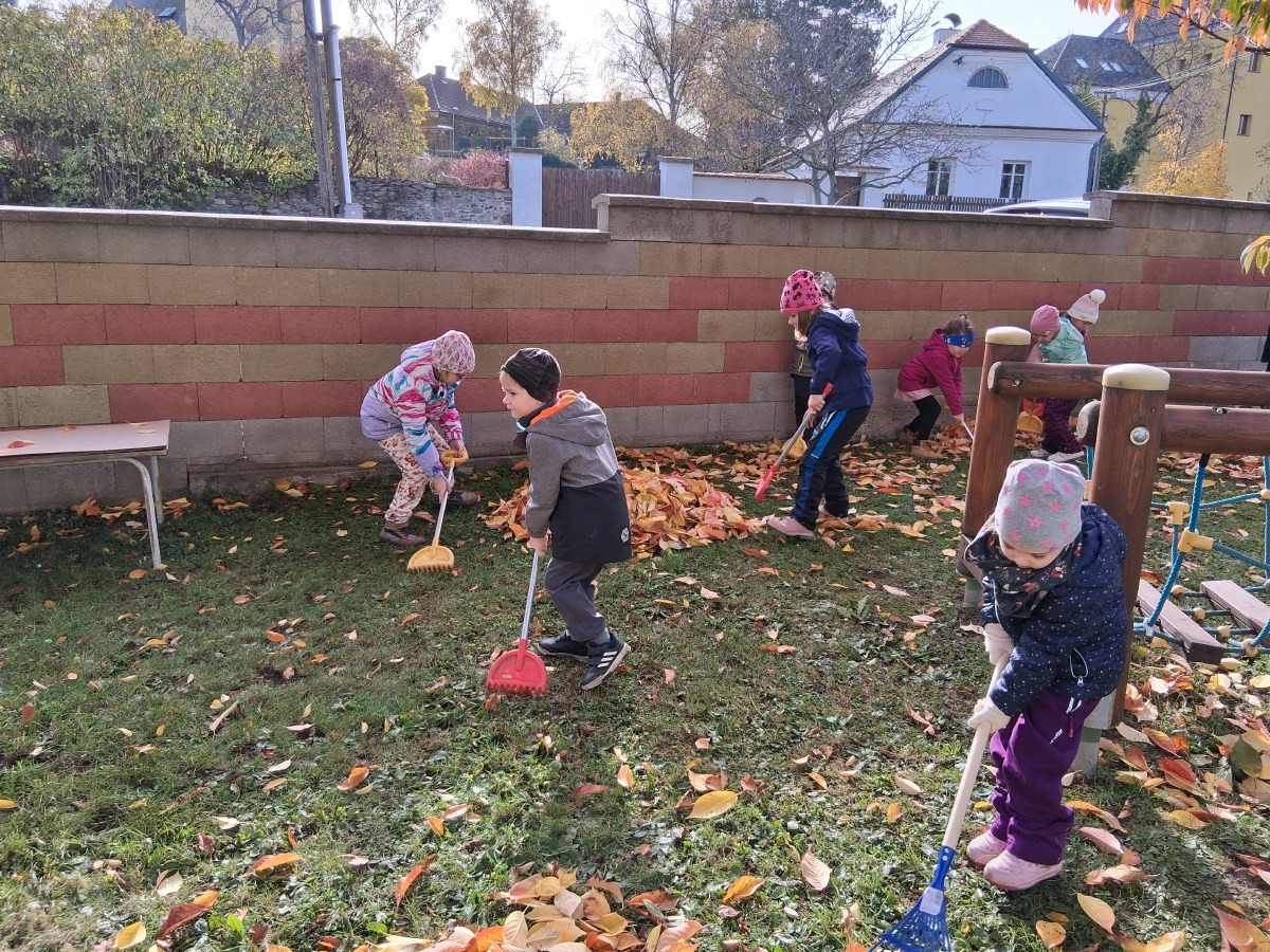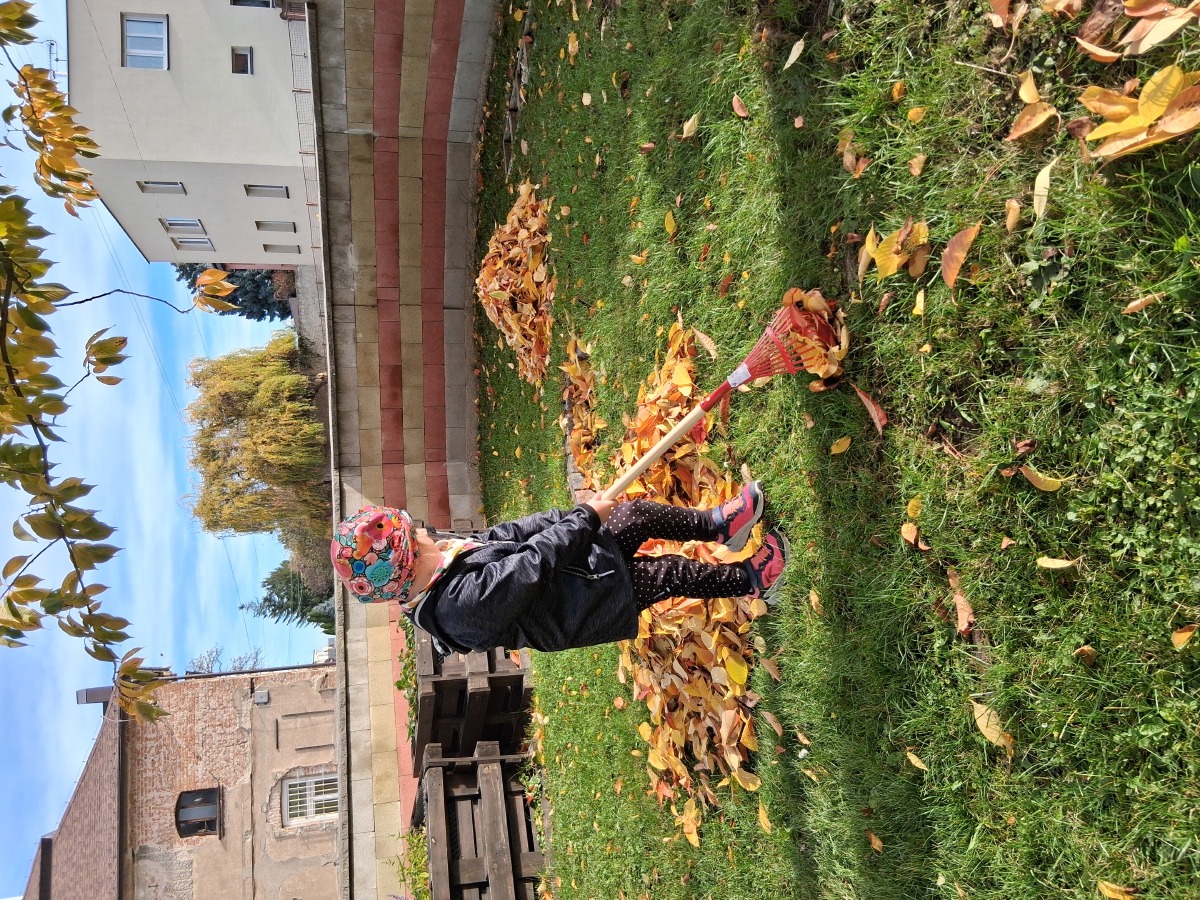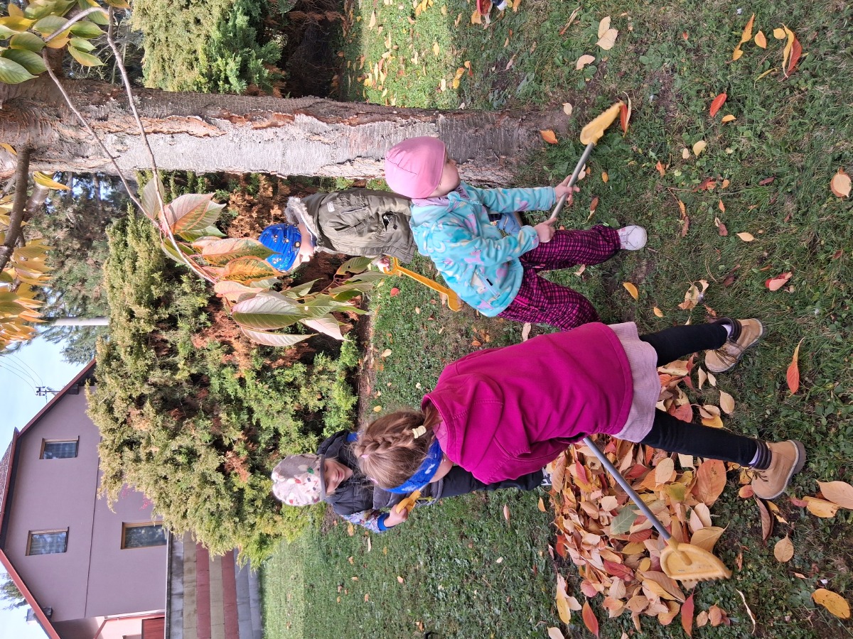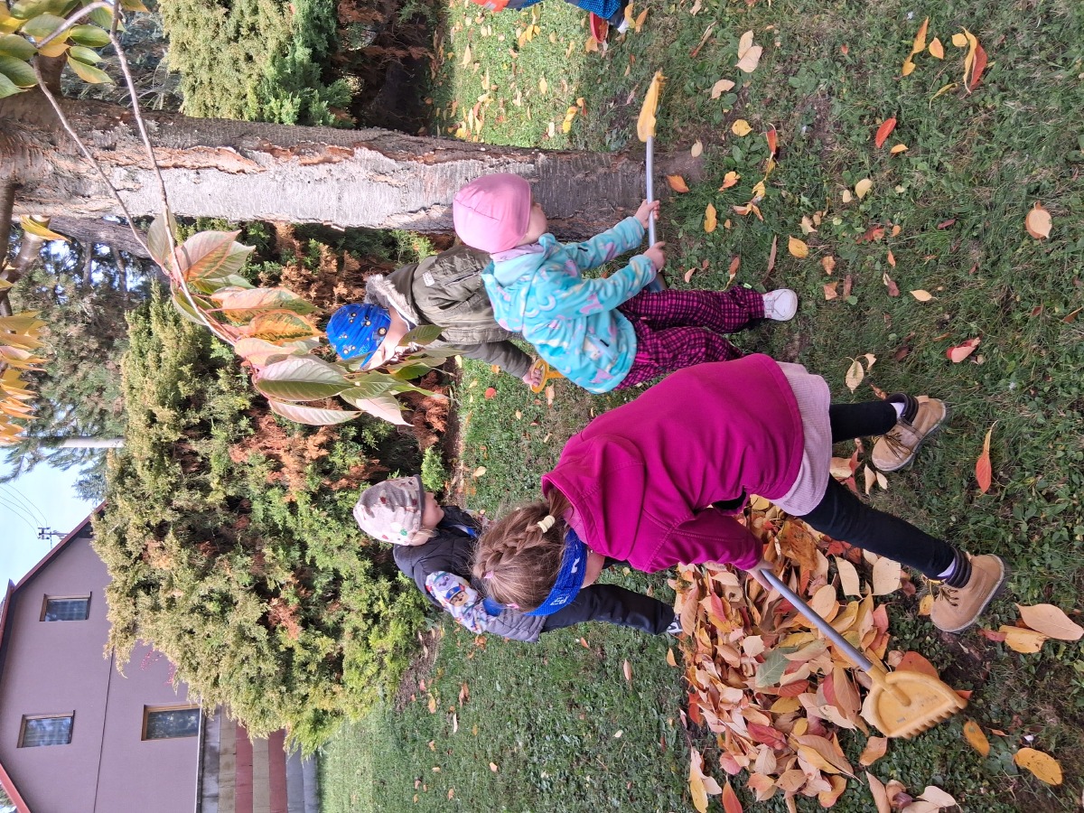 Dnes dopoledne jsme si pěkně "mákli" a nakupili všechno listí na hromádky.