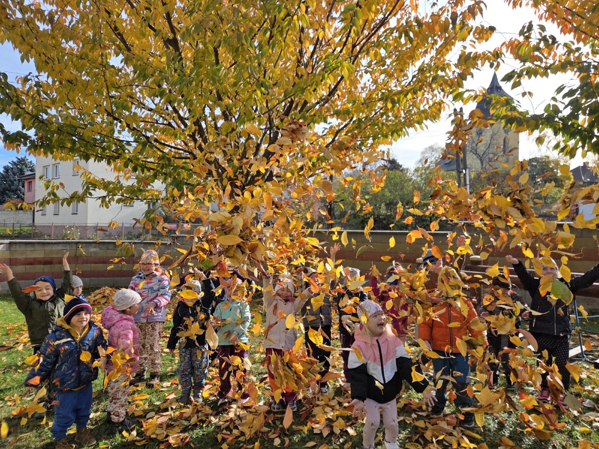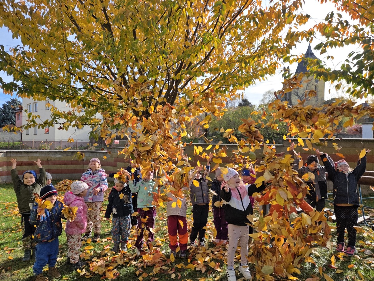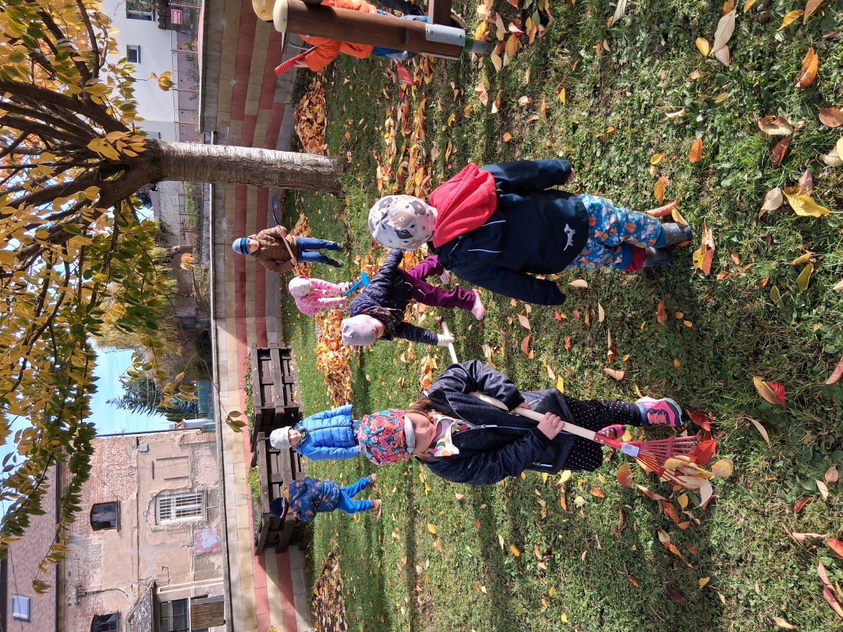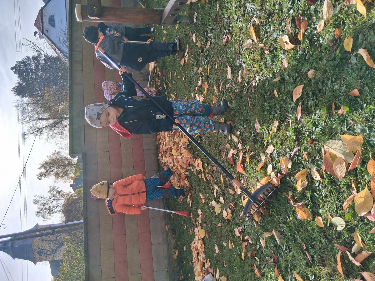 Dnes dopoledne jsme si pěkně "mákli" a nakupili všechno listí na hromádky.